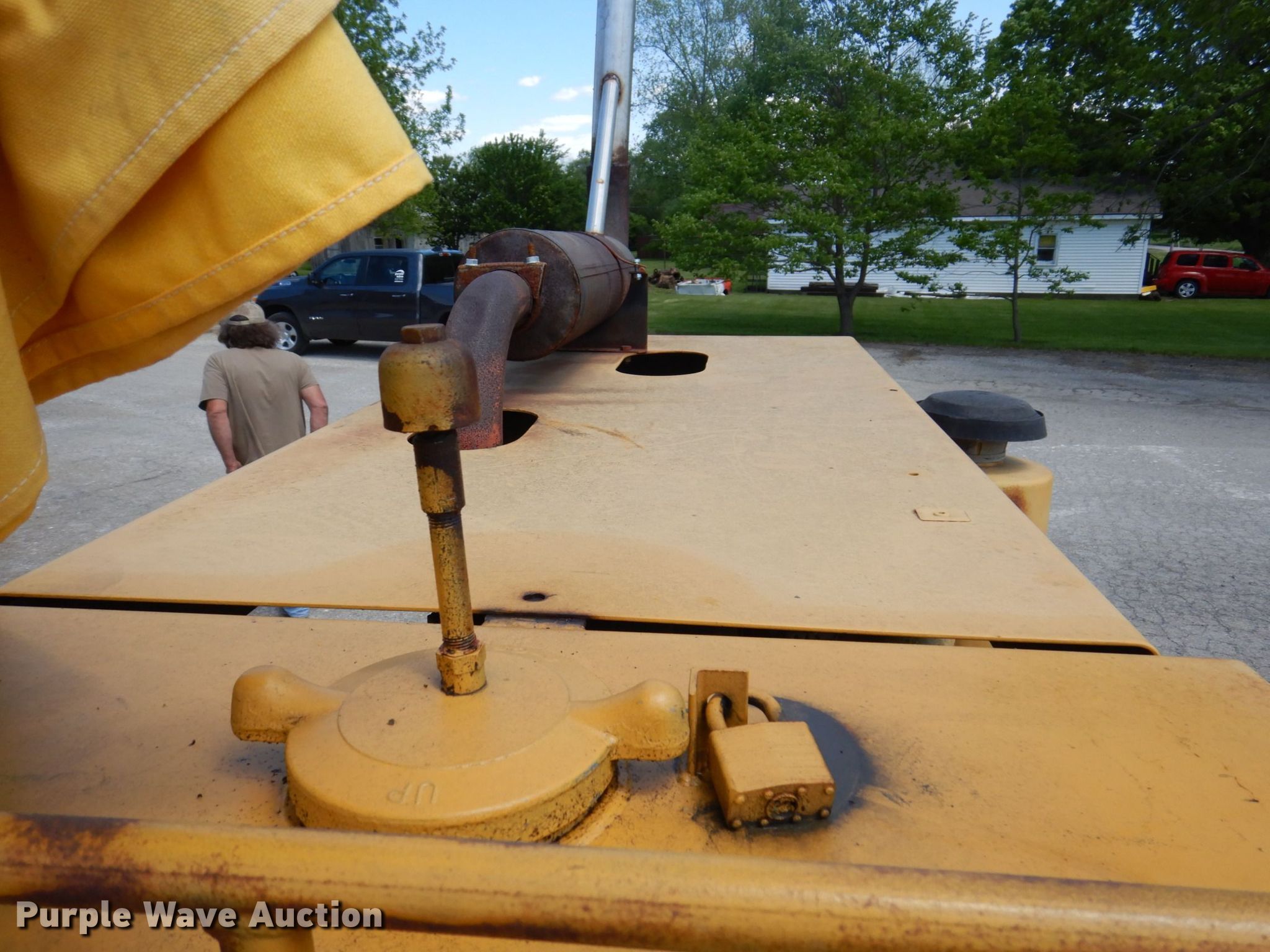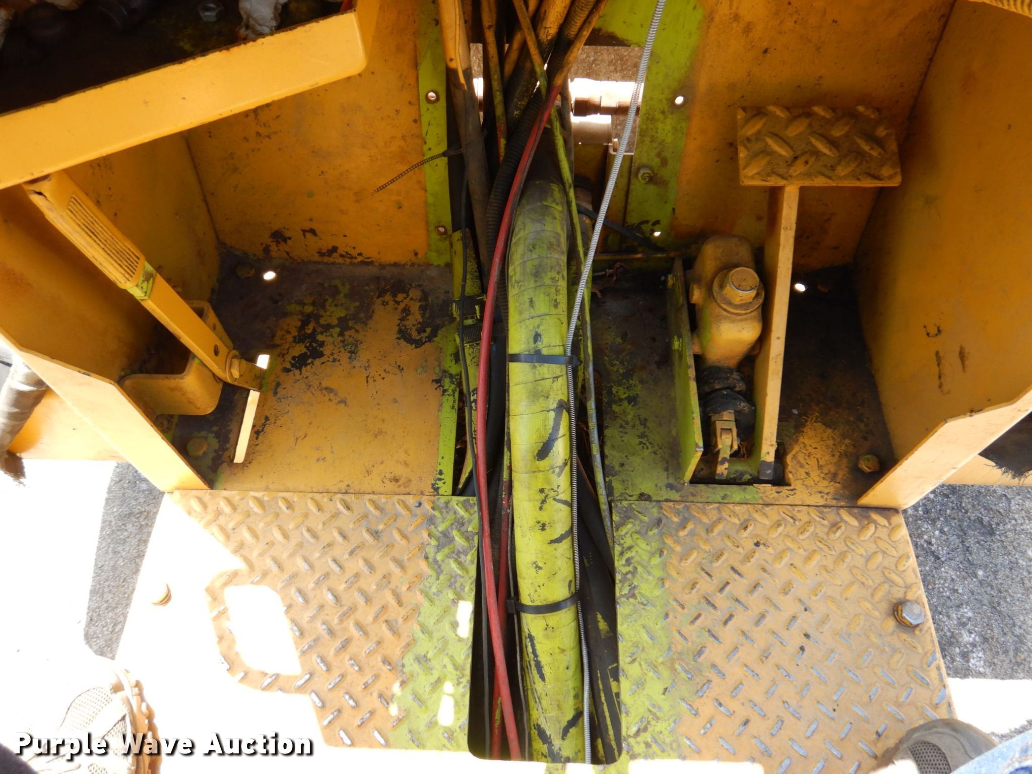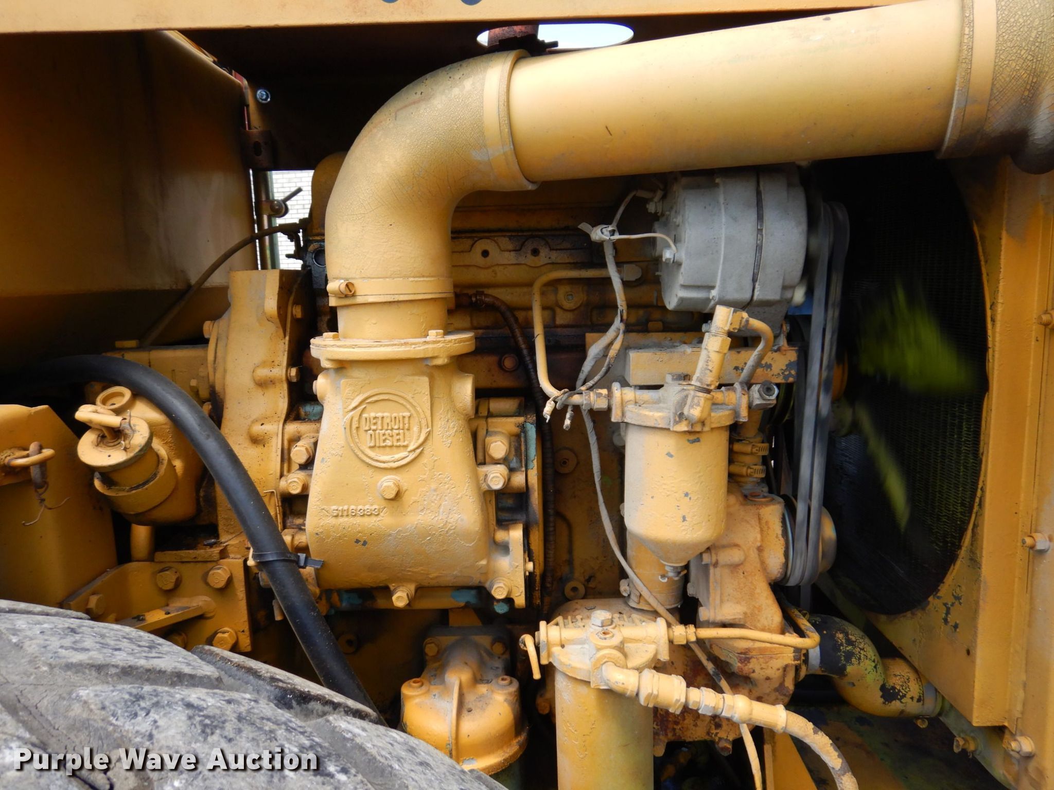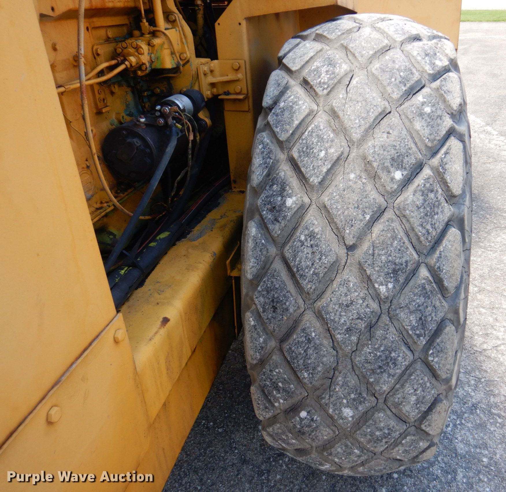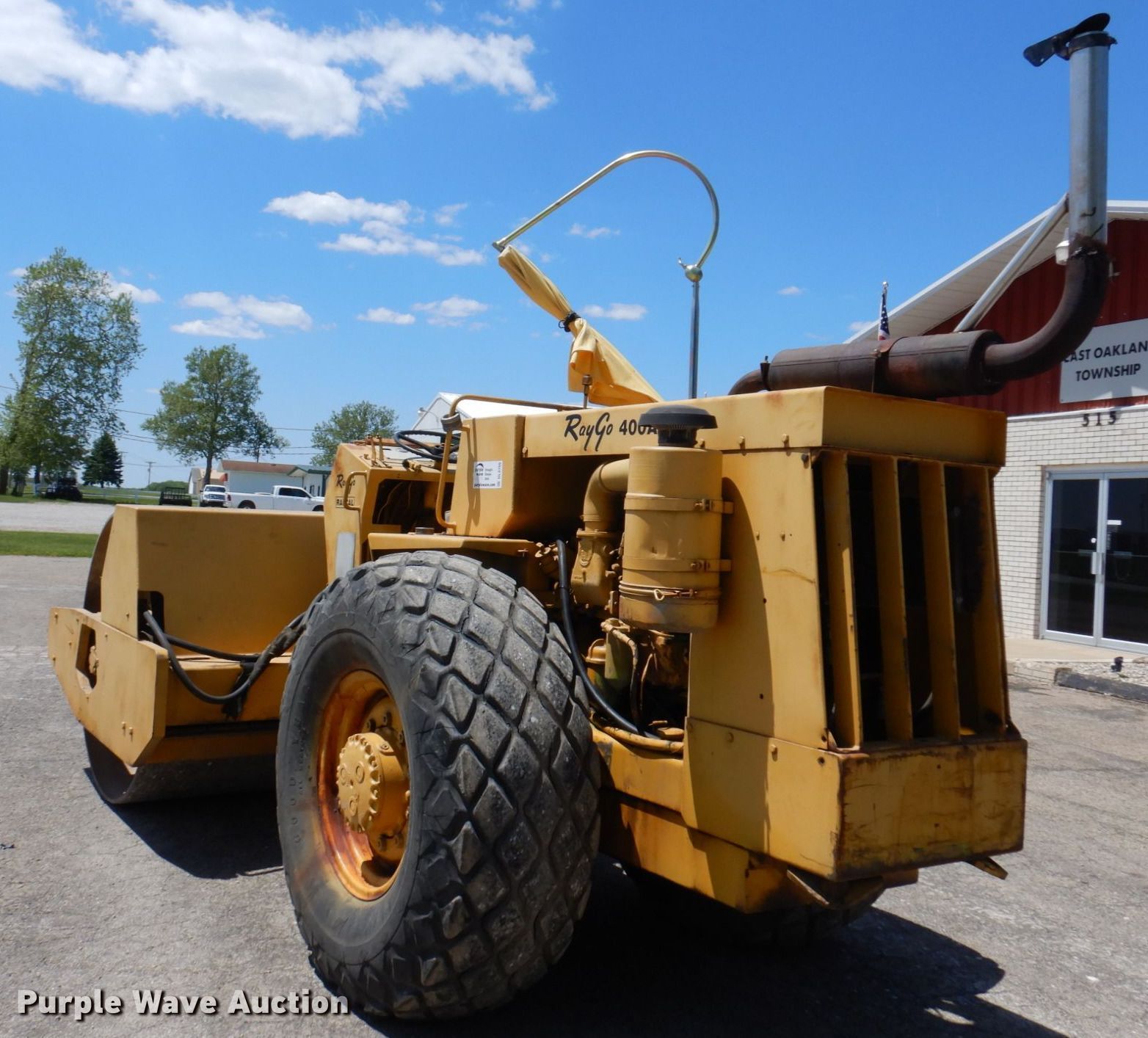 Raygo 400A single drum vibratory roller. Serial: 01J1463. Engine Detroit Diesel, Cylinders: 3, Fuel type: Diesel. Transmission Hydrostatic, Two speed travel. Operators station Vandal cover. Features Drum: Smooth, Vibratory system: Two speed, Front drum Width: 84", Diameter: 60", Drum scrapers: Front, Rear. Tires Size: 23.1-26. East Oakland Township. 515 W Main St. Oakland, IL 61943