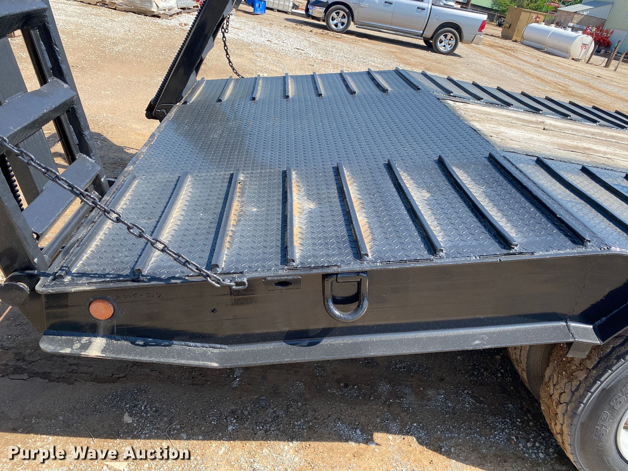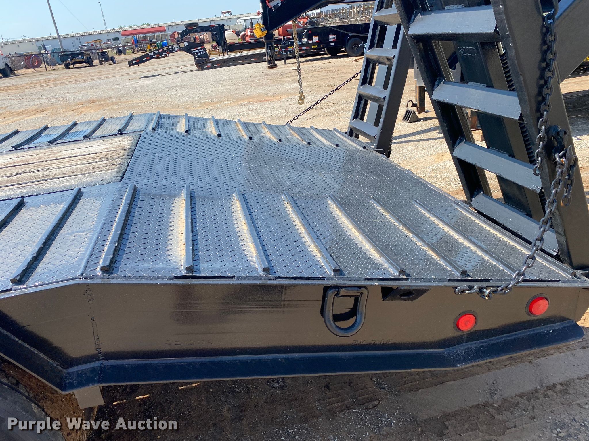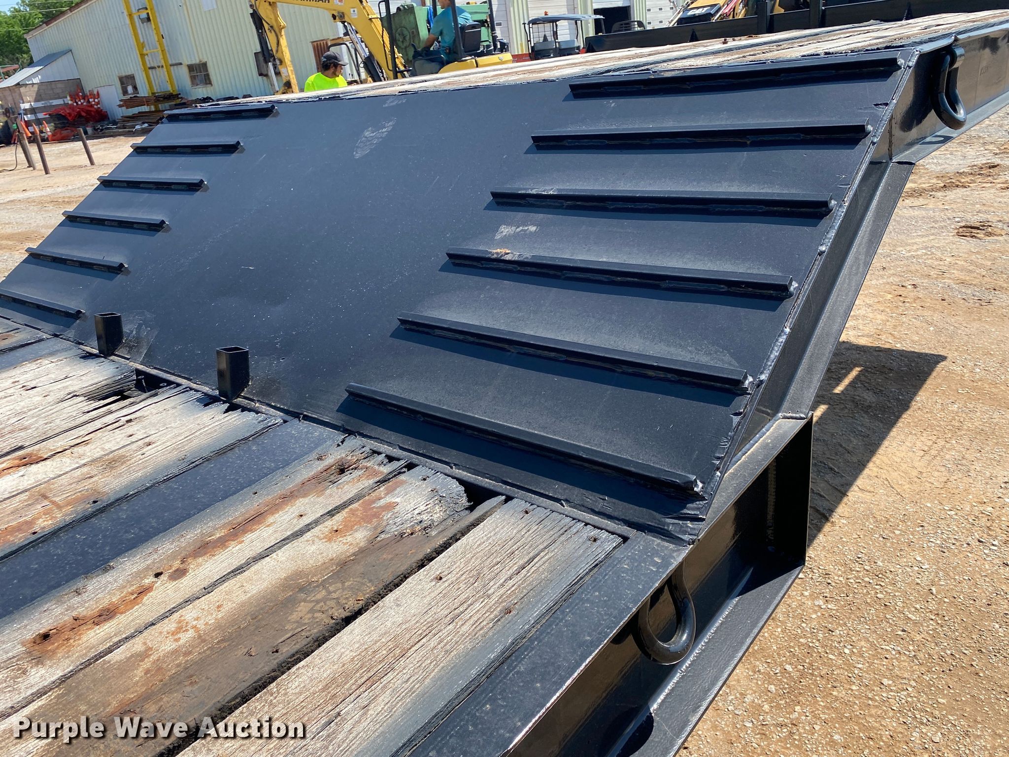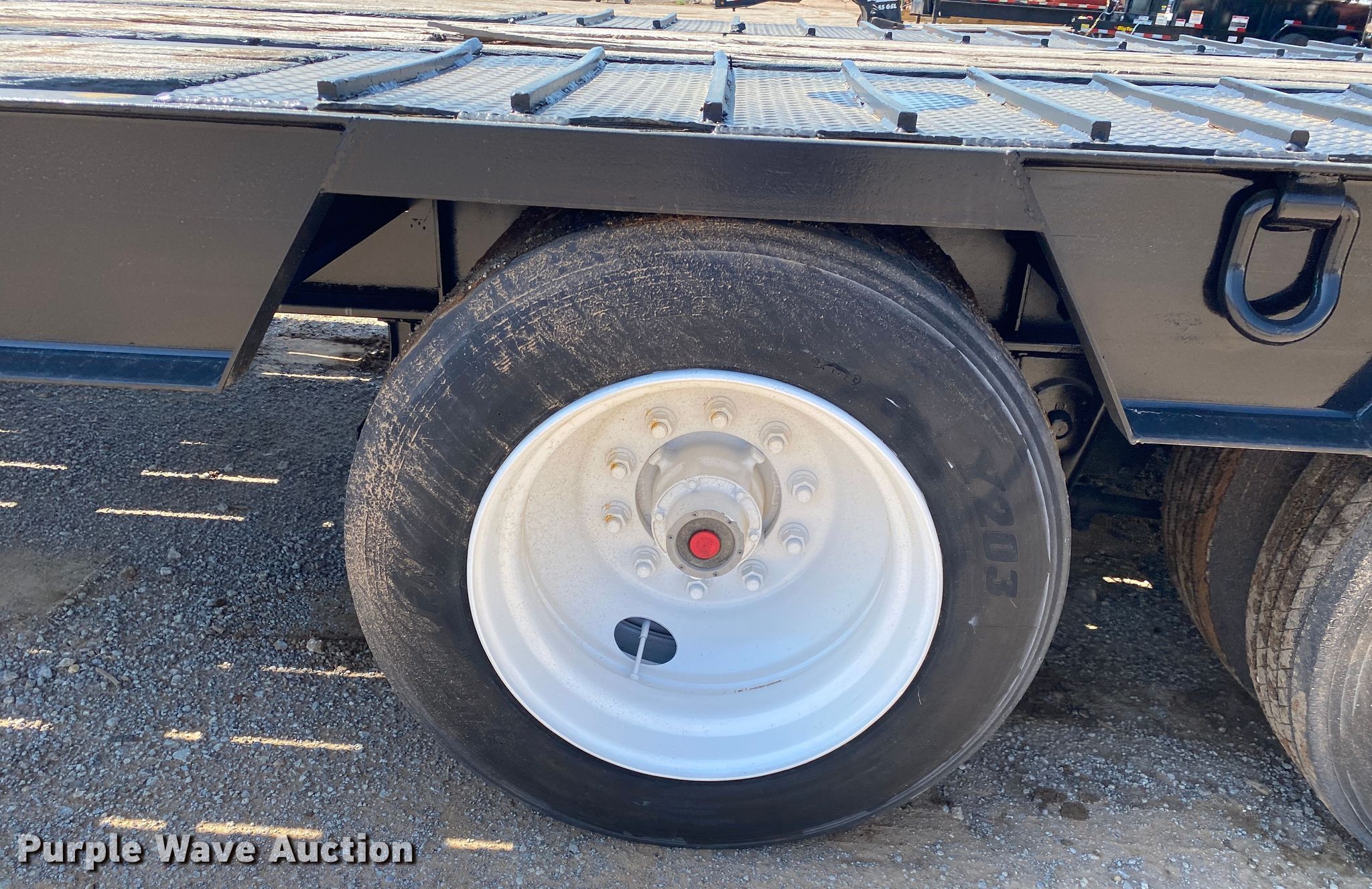 2005 Viking VFD46R16F35T drop deck equipment trailer. VIN: 1V9CR46215N062777. Dimensions Overall: 46' L x 102" W, Deck: 28' L x 96" W, Top deck length: 9', Tail length: 5', Ramps: Manual Length: 6'. Features Deck type: Wood. Chassis Landing gear: Dual, Two speed, Suspension: Spring, Brakes: Air, Axles: Tandem, GVWR: 86,000 lbs, GAWR: 20,280 lbs. Tires Size: 255/70R22.5. Oklahoma title. Gable's Excavating Inc. 3744 S Jackson Ave W. Tulsa, OK 74107