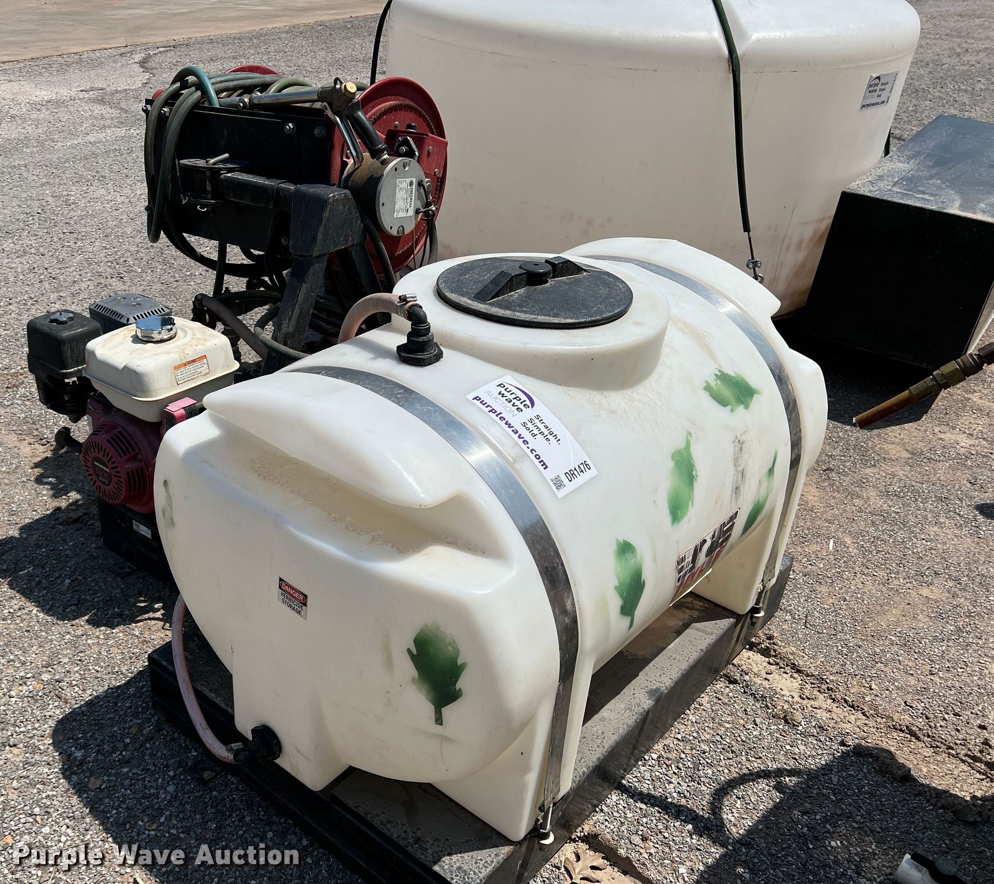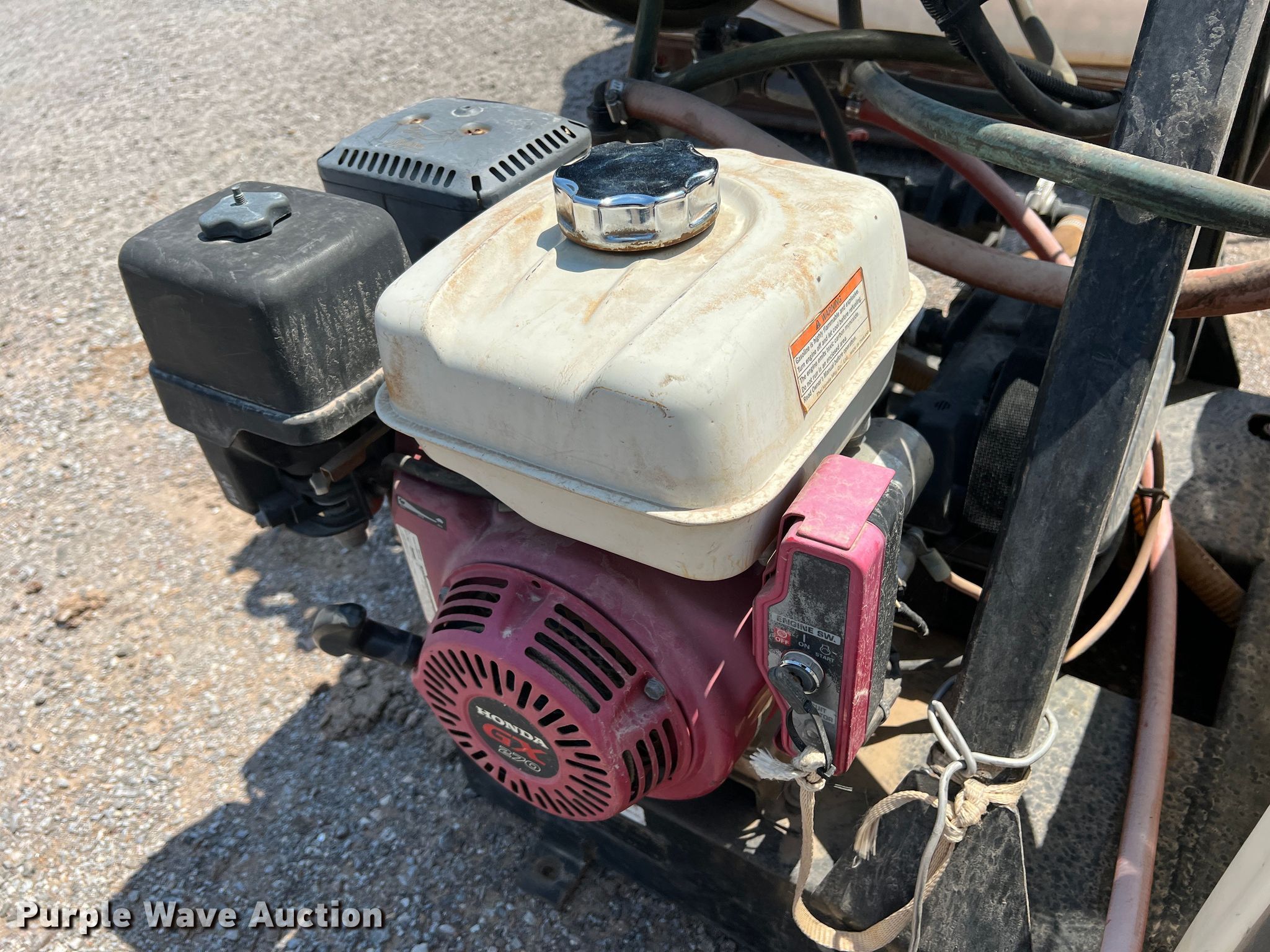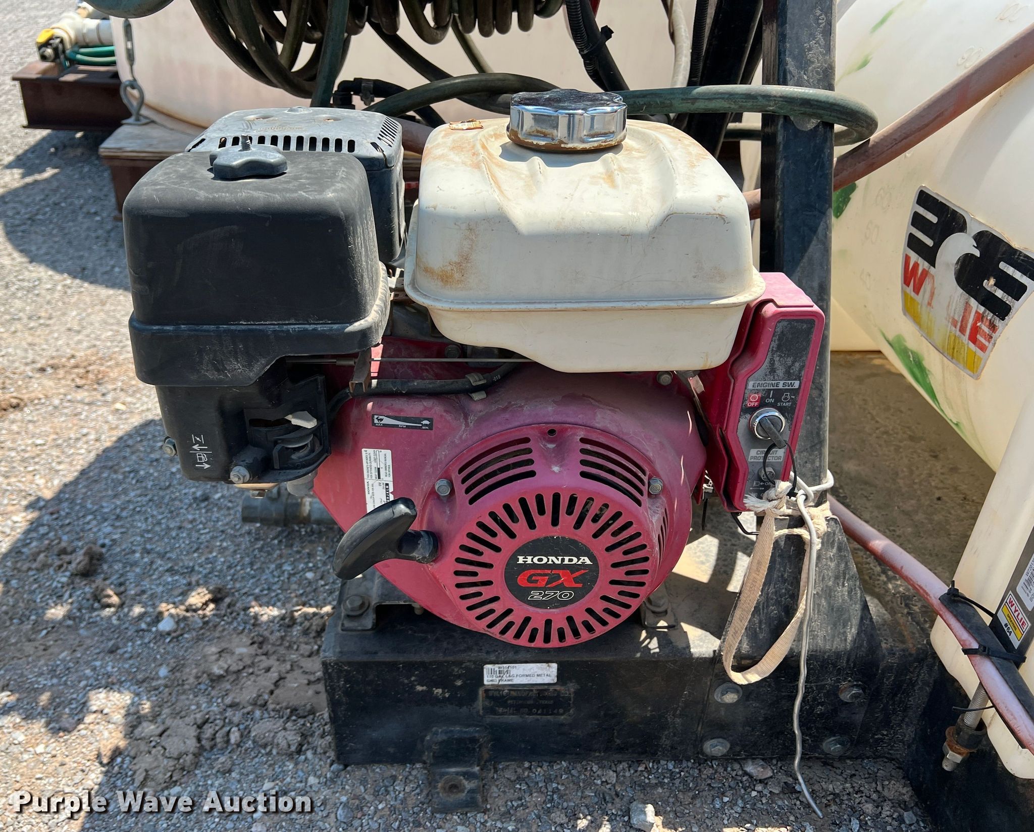 Purple Wave is selling a used Applicator Attach. in Oklahoma. This item is a Sprayer with the following: Honda GX270 single cylinder gas engine, Approx. 200'L hose, 100 gallon poly tank