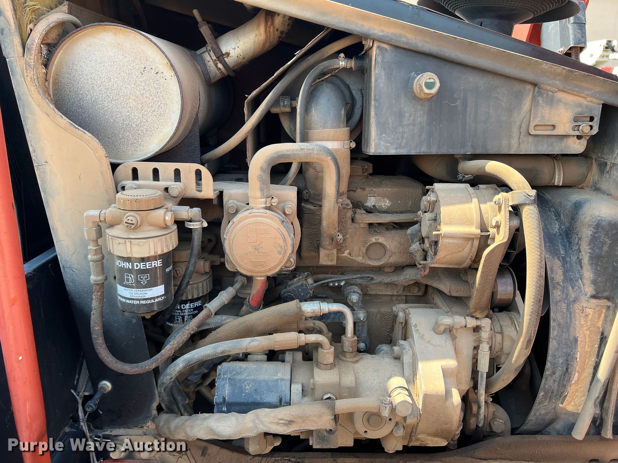 2006 Ditch Witch RT75 trencher. Hours: 682 on meter, Serial: CMWRT75MJ60000007. Engine John Deere 4045DF2700, Displacement: 4.5L, Cylinders: 4, Fuel type: Diesel. Transmission Hydrostatic, Two speed travel, Four wheel drive, Four wheel steer. Operators station Canopy. Features Model: M910, Serial: CMWM910XC60000073, Estimated dig depth: 82", Cutting width: 4", Teeth: Dirt, Backhoe Model: A720, Serial: CMWA720XH60000019, Bucket width: 18", Backfill blade Width: 72". Tires Size: 35X19.00-16. Cotton Electric COOP. 226 S Broadway St. Walters, OK 73572
