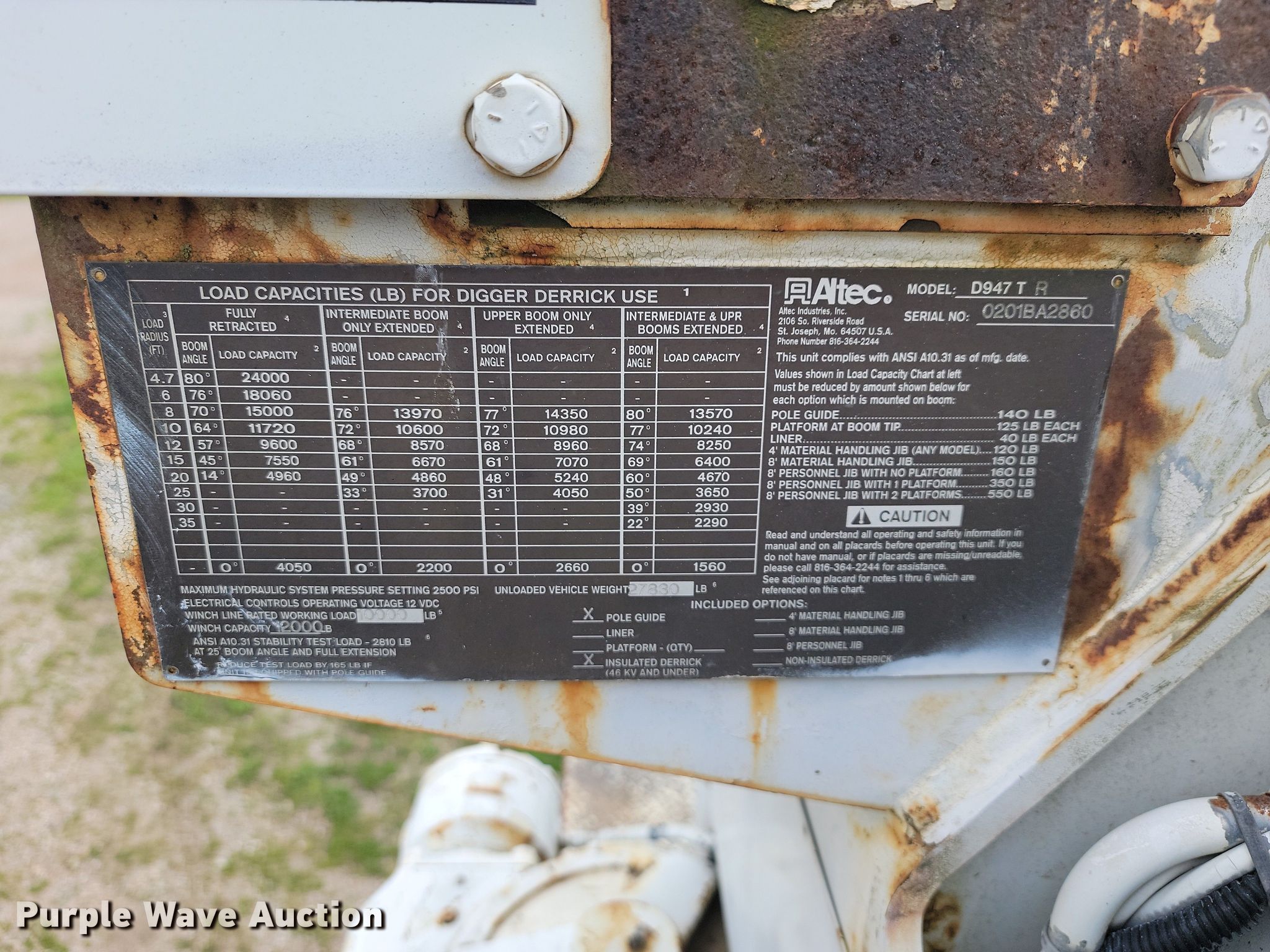 2001 International 4800 digger derrick truck. Miles: 10,597 on odometer, VIN: 1HTSEAAR71H374513. Engine International, Displacement: 7.6L, Cylinders: 6, Fuel type: Diesel. Transmission Automatic. Chassis Four wheel drive, Axles: Single, Suspension: Spring, Brakes: Air. Interior AC, Heat. Features Bed Altec, 14' 6" L x 93" W, Boom Altec D947, Boom length: 17', Mast height: 47', Maximum lift capacity: 13,570 lbs, Boom controls Platform/ basket, Pole guide, Auger. Tires Size: 11R22.5. Missouri title. Title distribution may be delayed up to 14 days from verification of funds. Advanced Highway Sign & Supply. 6251 Hwy O. Ash Grove, MO 65604