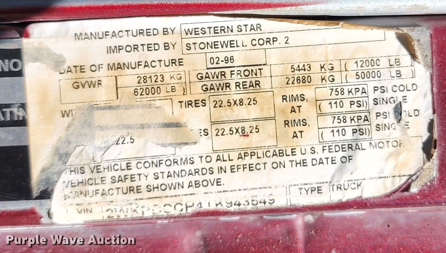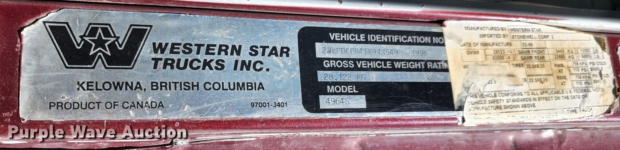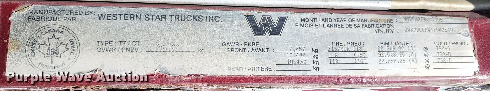 Purple Wave is selling a used Vacuum Truck in Colorado. This item is a 1996 Western Star 4964S vacuum truck with the following: Kilometers: 653,485 on odometer, VIN: 2WKPDCCH4TK943549