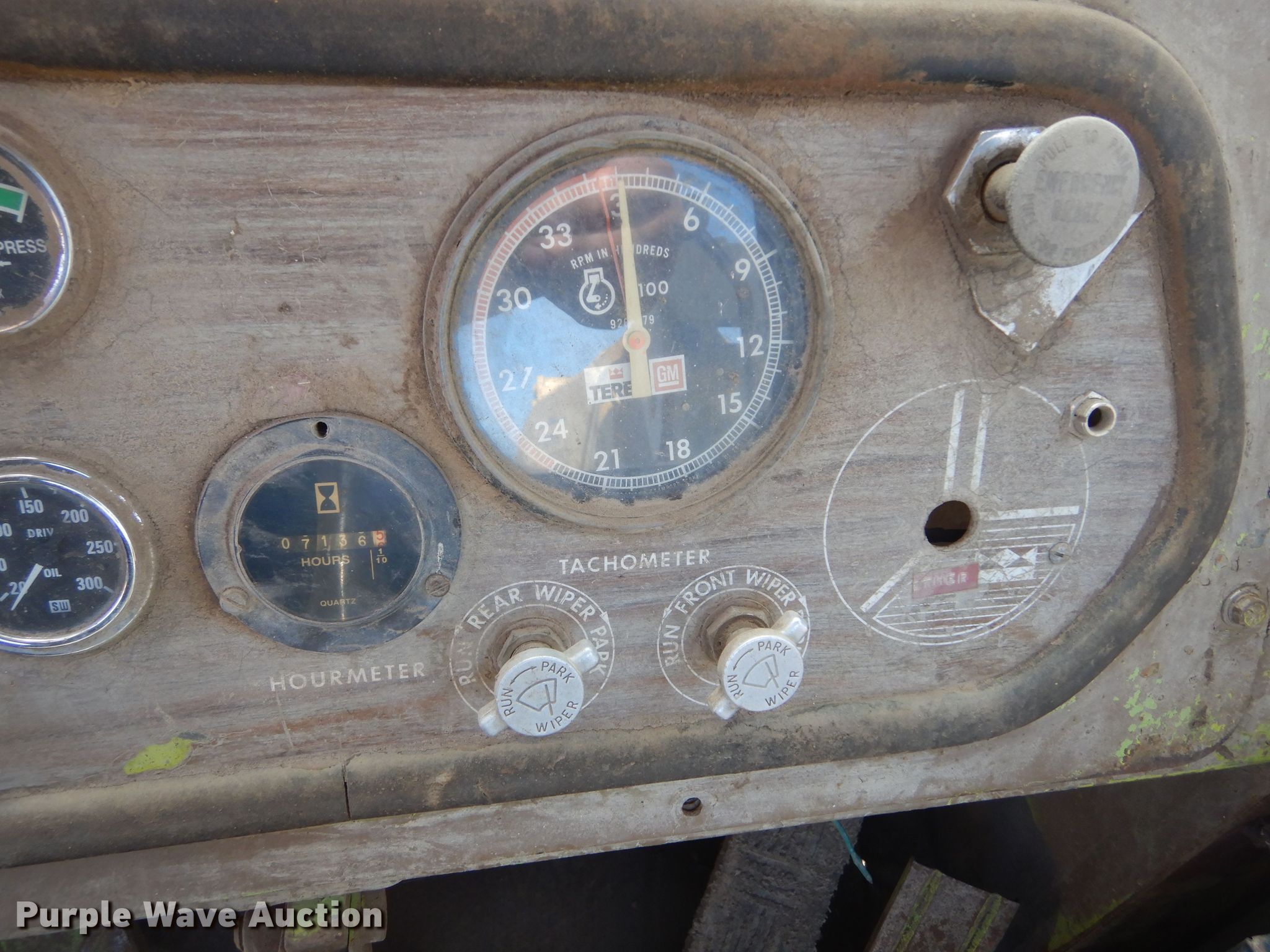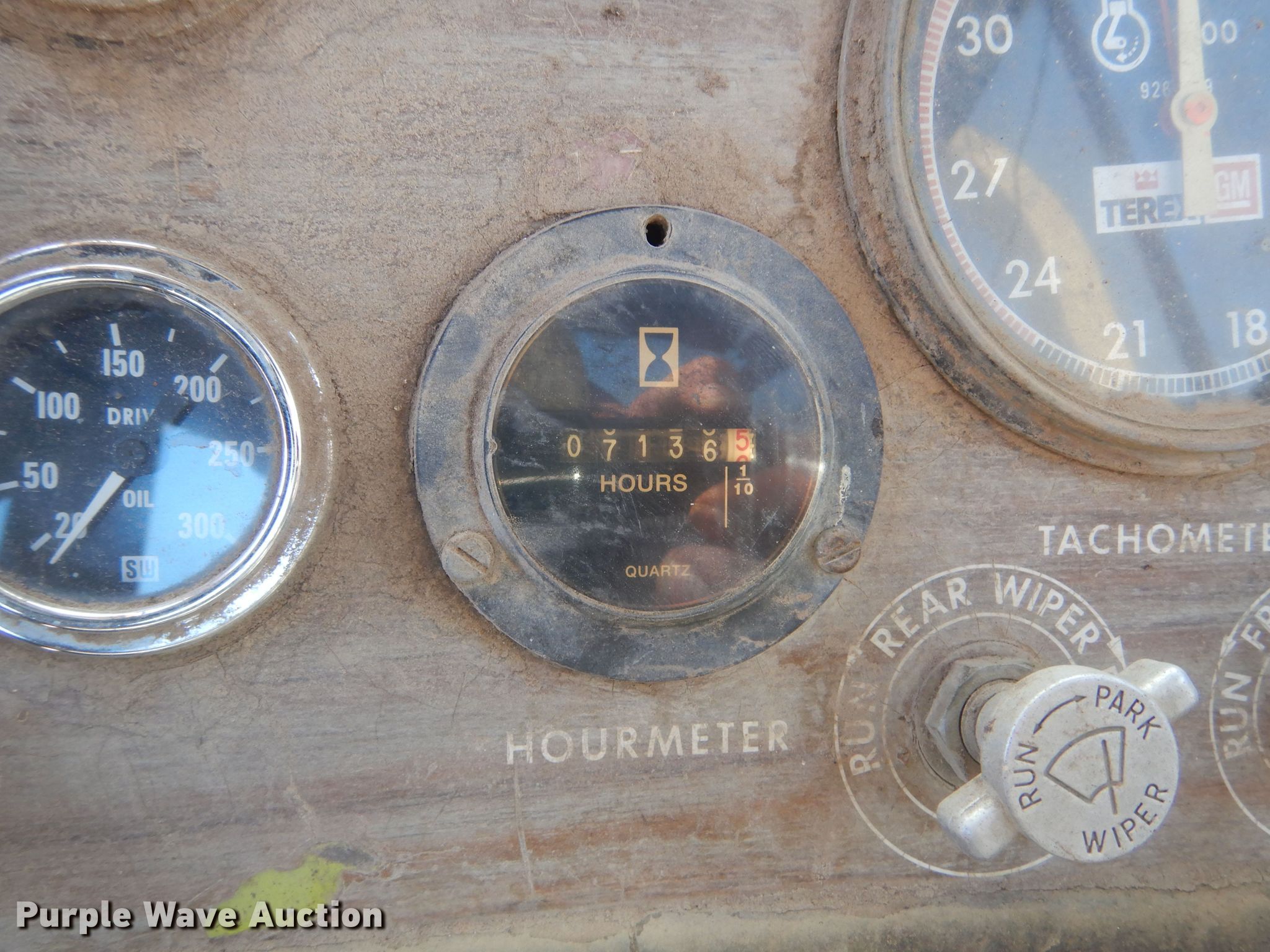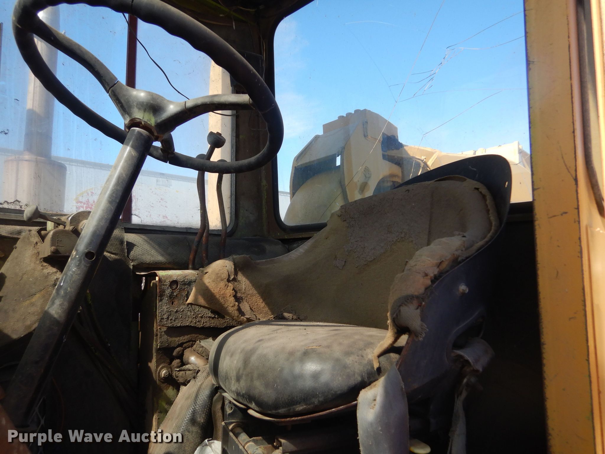 Terex 97 SH conventional scraper. Hours: 7,137 on meter, Serial: 24446, Unit #: S-11. Engine Detroit Diesel, Cylinders: 6, Fuel type: Diesel. Second engine Detroit Diesel, Cylinders: 4, Fuel type: Diesel. Transmission No transmission. Chassis Brakes: Air. Operators station Enclosed cab, Heat. Features Bowl capacity: 14 cu.yd., Reversible cutting edge, Hydraulic lift, Scraper controls: Lever controls No. of controls: 3. Tires Size: 29.5-25. Notes Glass cracked, Parts only, Parts missing, Non-operational unit. Loiseau Construction. 1002 W Elm Ave. Flandreau, SD 57028