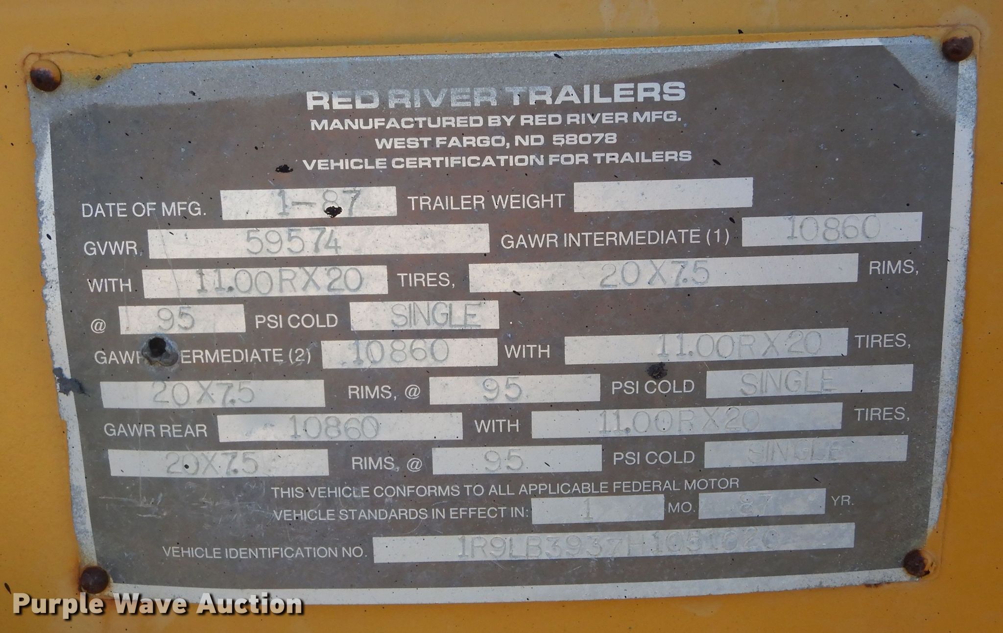 Purple Wave is selling a used Asphalt Trailer in South Dakota. This item is a 1987 Red River live bottom trailer with the following: VIN: 1R9LB3937H1051020, Unit #: LB-4