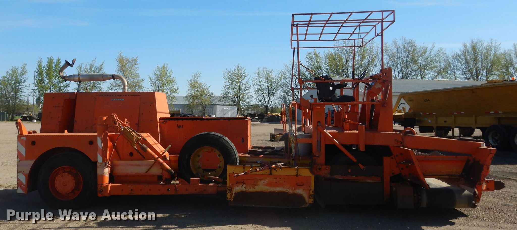 Blaw-Knox RW 195 C road widener. Hours: 6,998 on meter, Serial: 19511-12. Engine John Deere, Cylinders: 6, Fuel type: Diesel. Transmission Hydrostatic. Features Paving width: 13', Extensions Quantity: 4, Front spread hopper width: 12', Width: 30". Tires Size: 385/65R22.5. Loiseau Construction. 1002 W Elm Ave. Flandreau, SD 57028