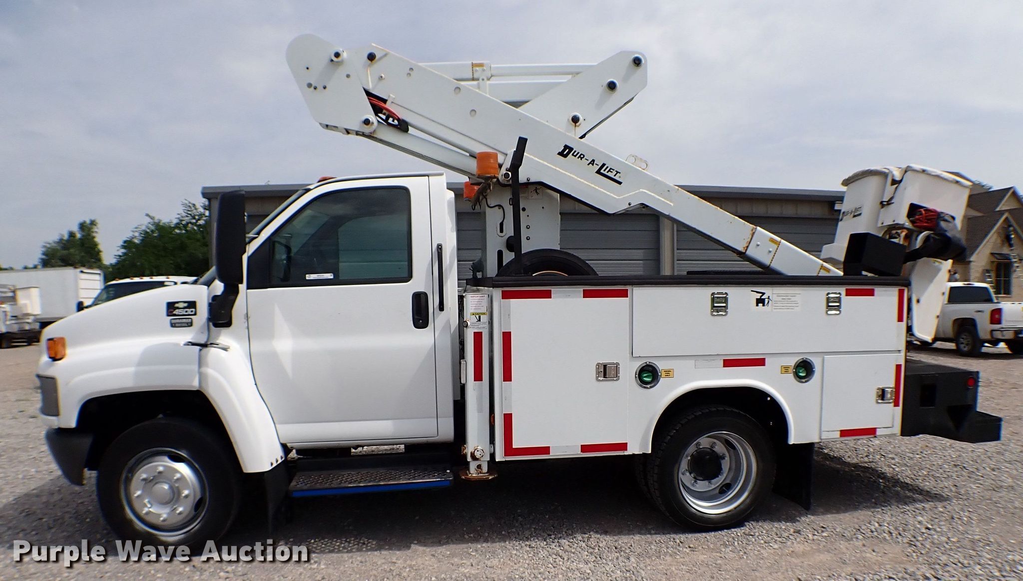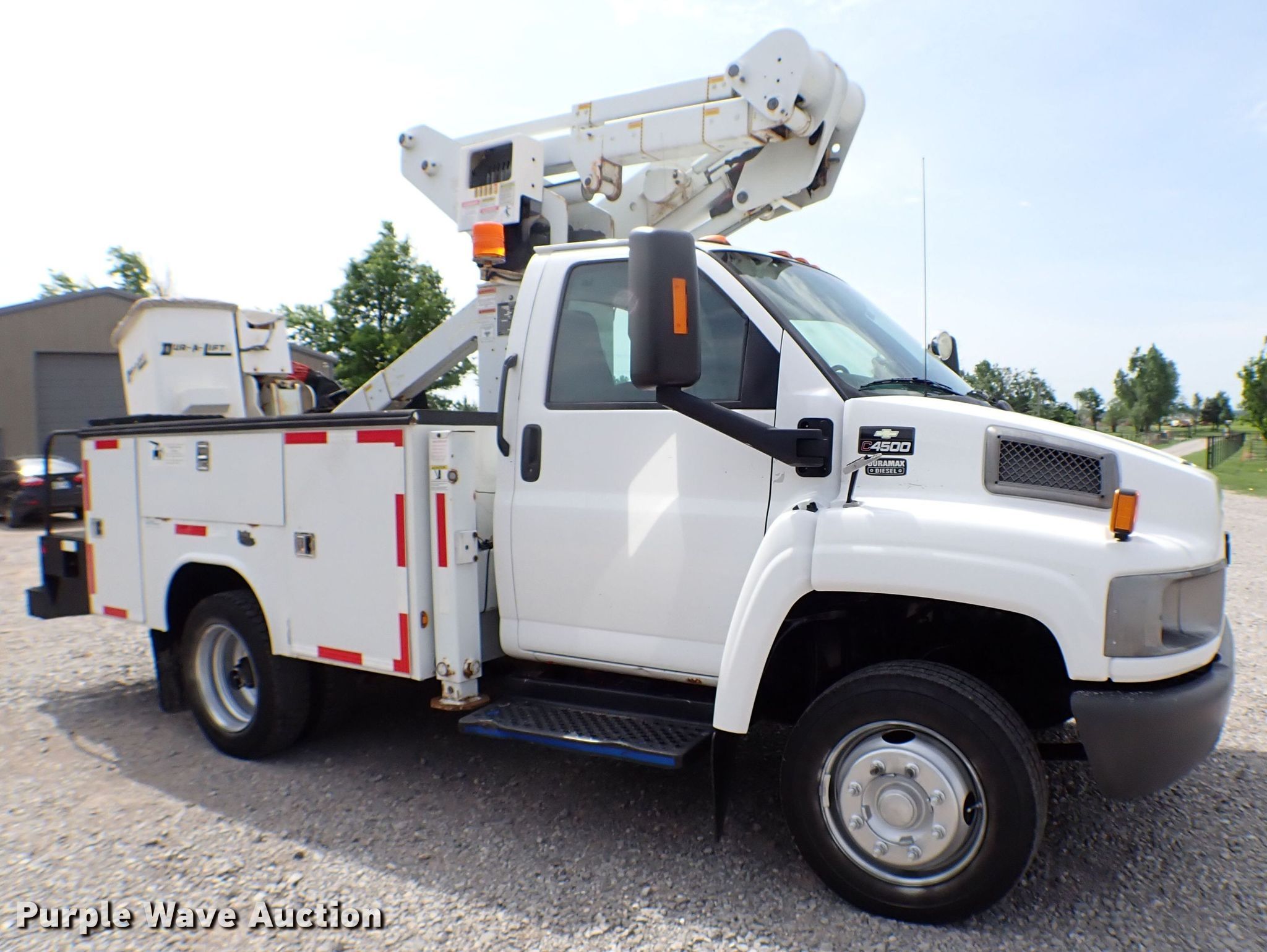 Purple Wave is selling a used Bucket Truck in Oklahoma. This item is a 2008 Chevrolet C4500 bucket truck with the following: Miles: 72,057 on odometer, VIN: 1GBE4C19X8F415087