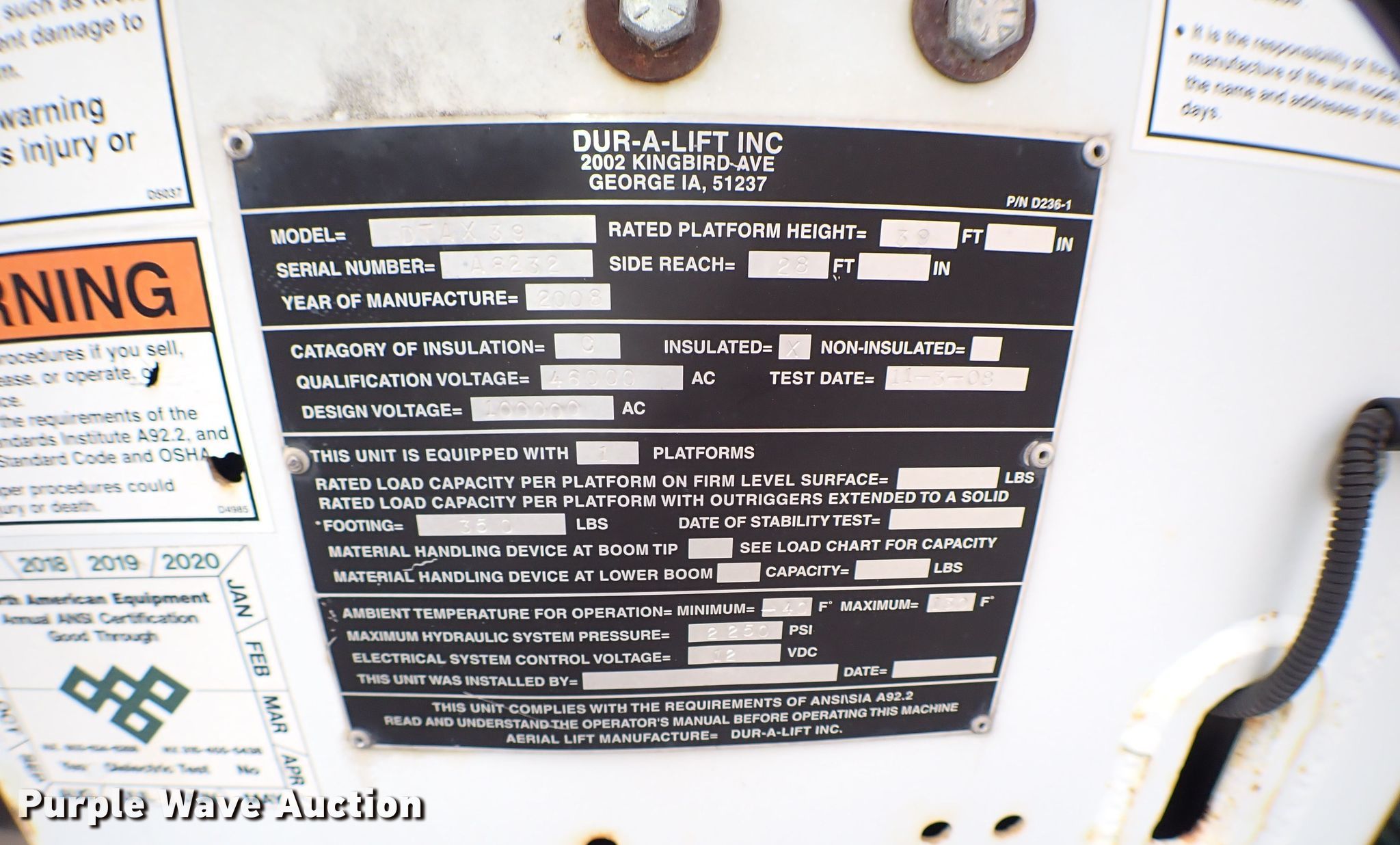 • 2008 Dur-a-lift DTAX39