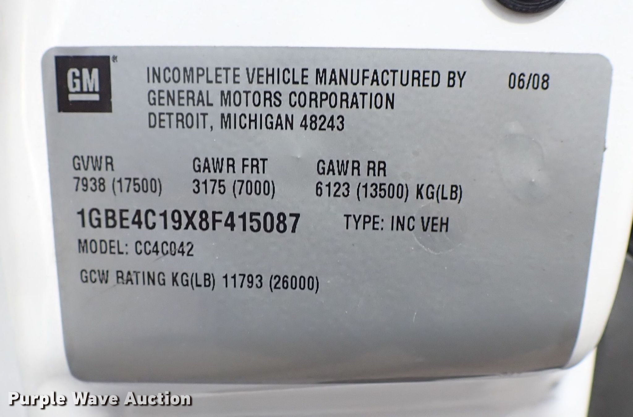 • VIN: 1GBE4C19X8F415087