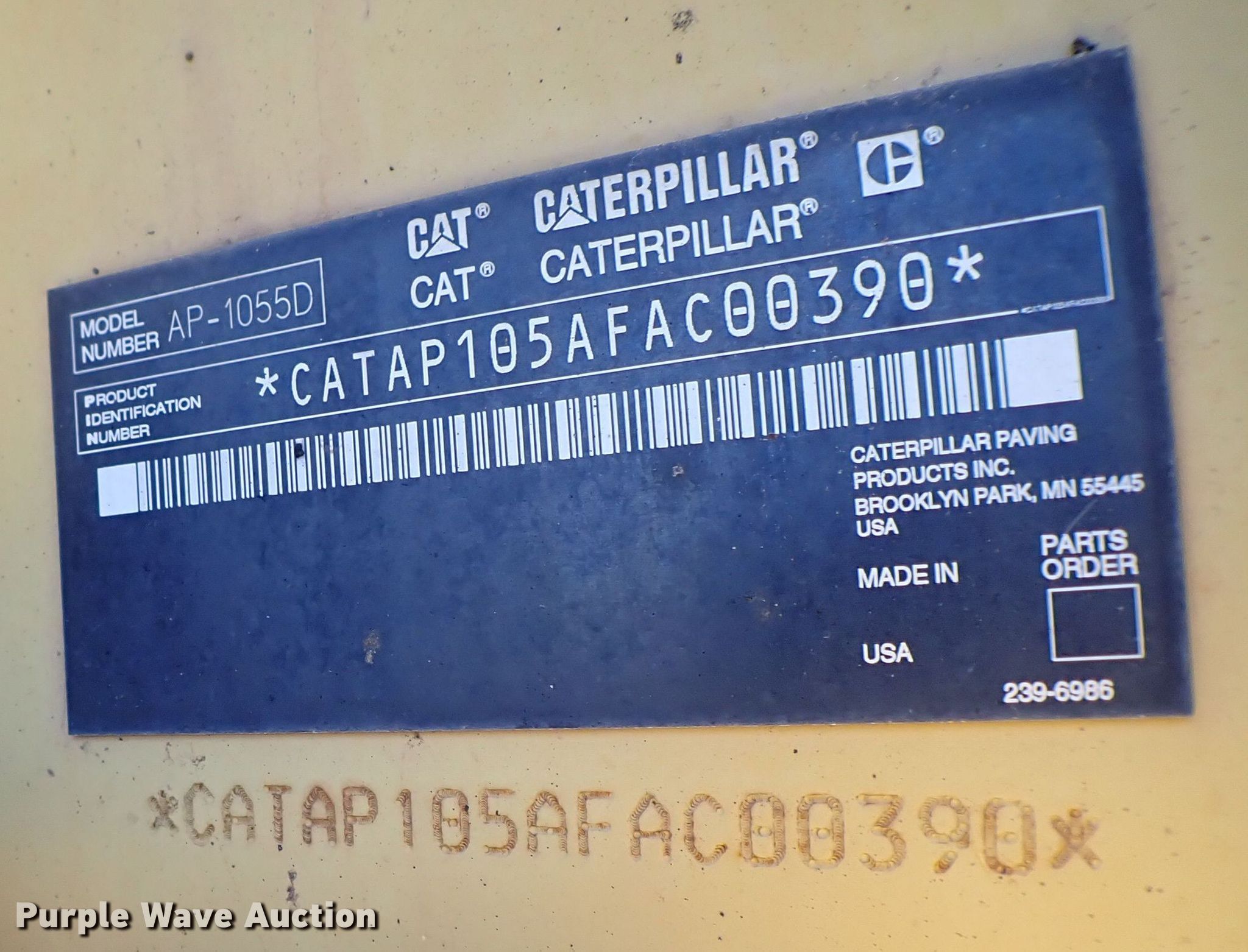 Purple Wave is selling a used Paver or Screed in Oklahoma. This item is a 2007 Caterpillar AP1055D paver with the following: Hours: 15,549 on meter, Serial: CATAP105AFAC00390, Unit #: 14-105