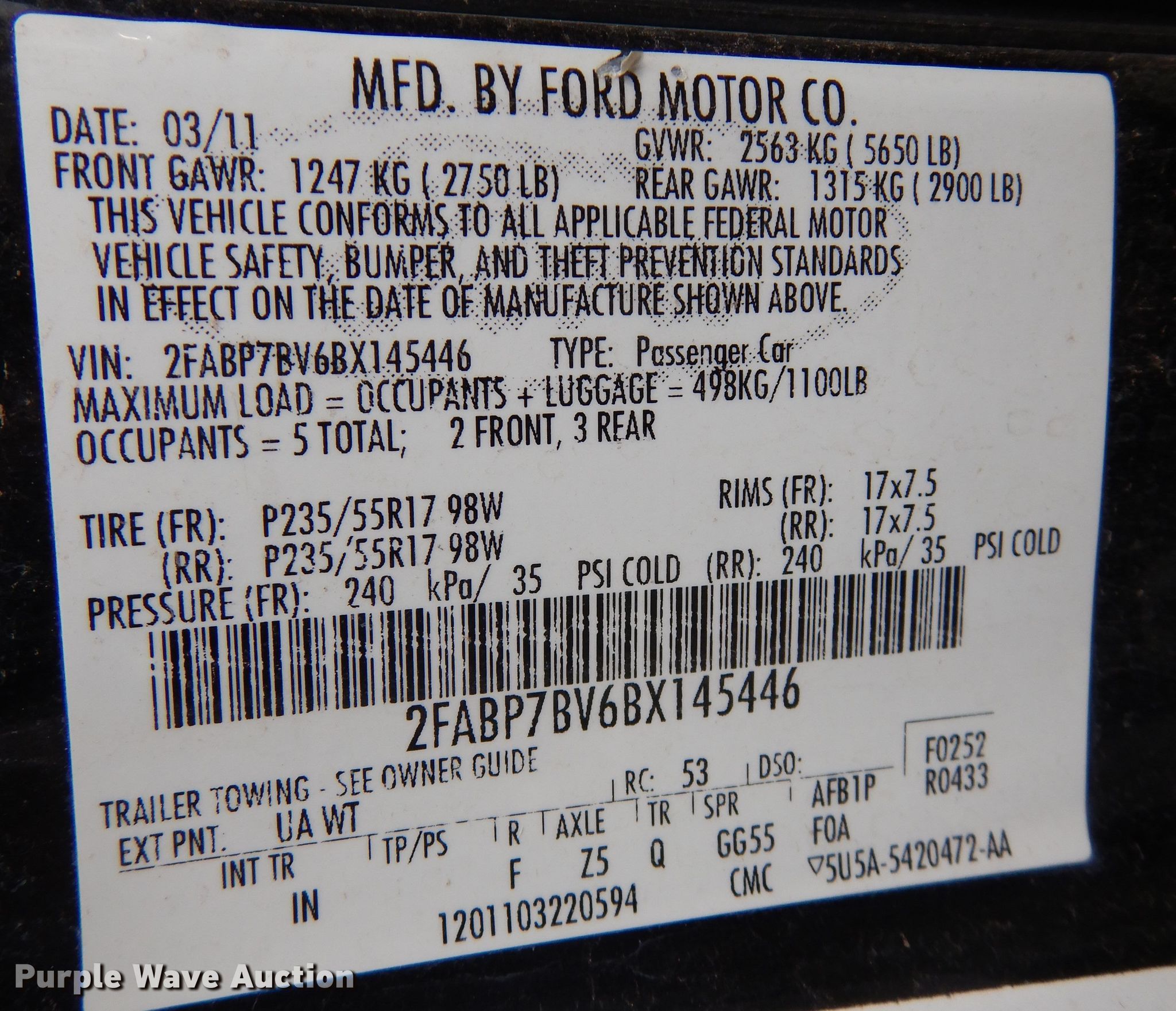 - VIN: 2FABP7BV6BX145446