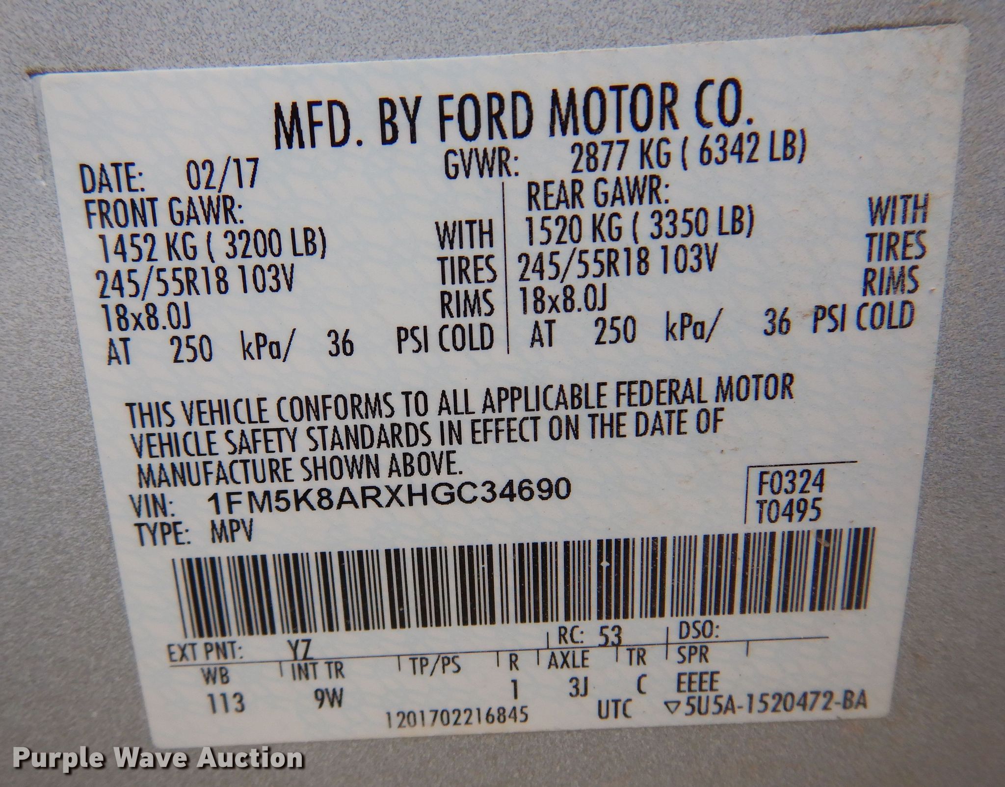 - VIN: 1FM5K8ARXHGC34690
