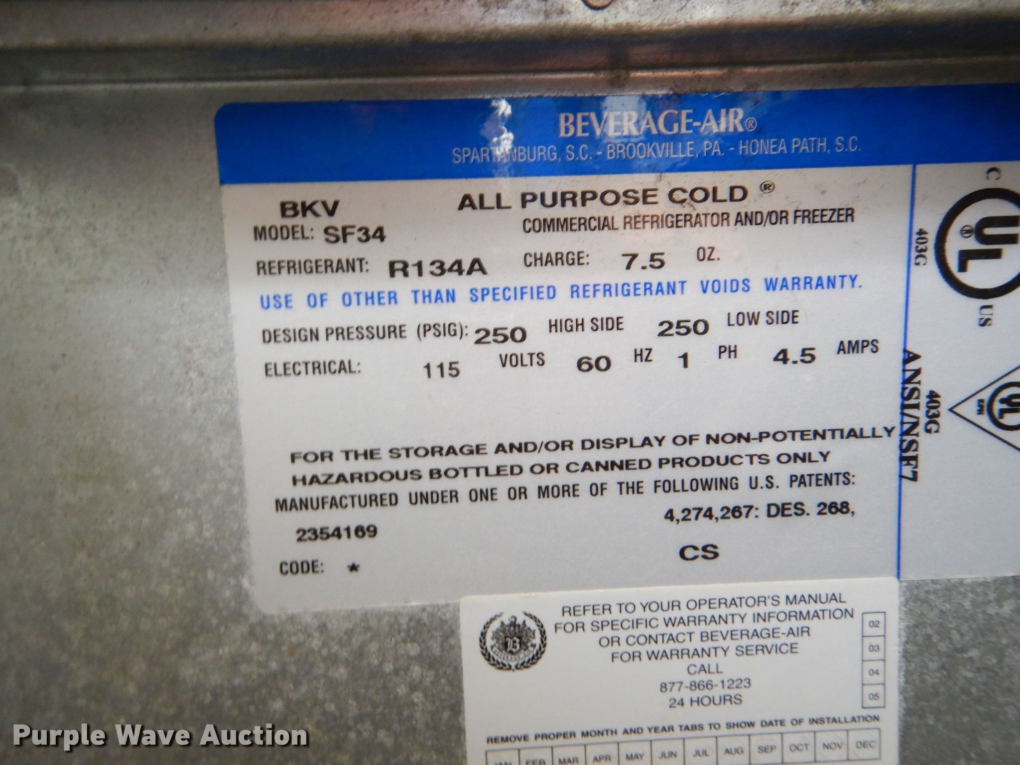 Purple Wave is selling a used Restaurant Equip. in Kansas. This item is a Beverage-Air SF34 cooler with the following: 26.5" x 34.875" x 33.5", Single phase, 115 Volts