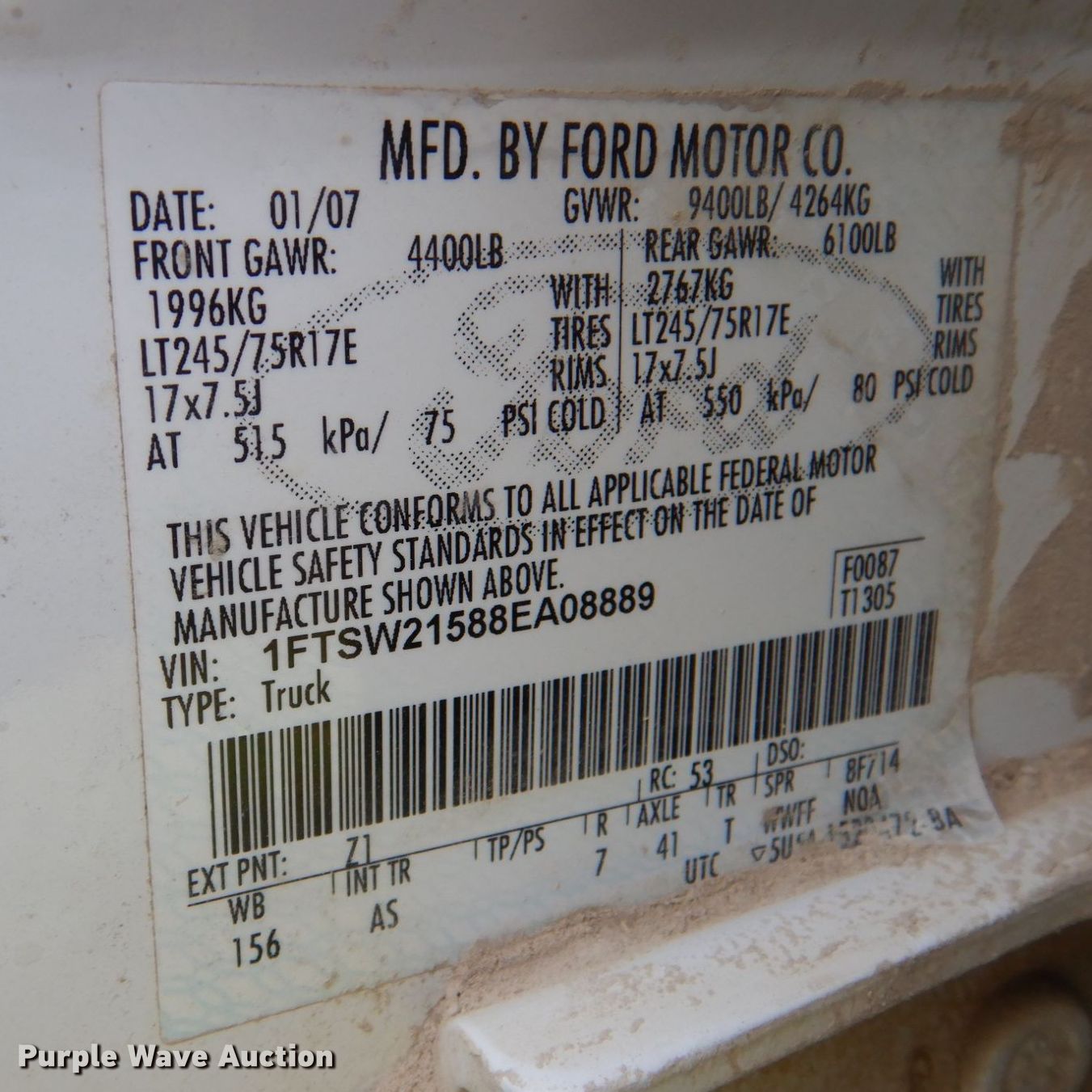 - VIN: 1FTSW21588EA08889