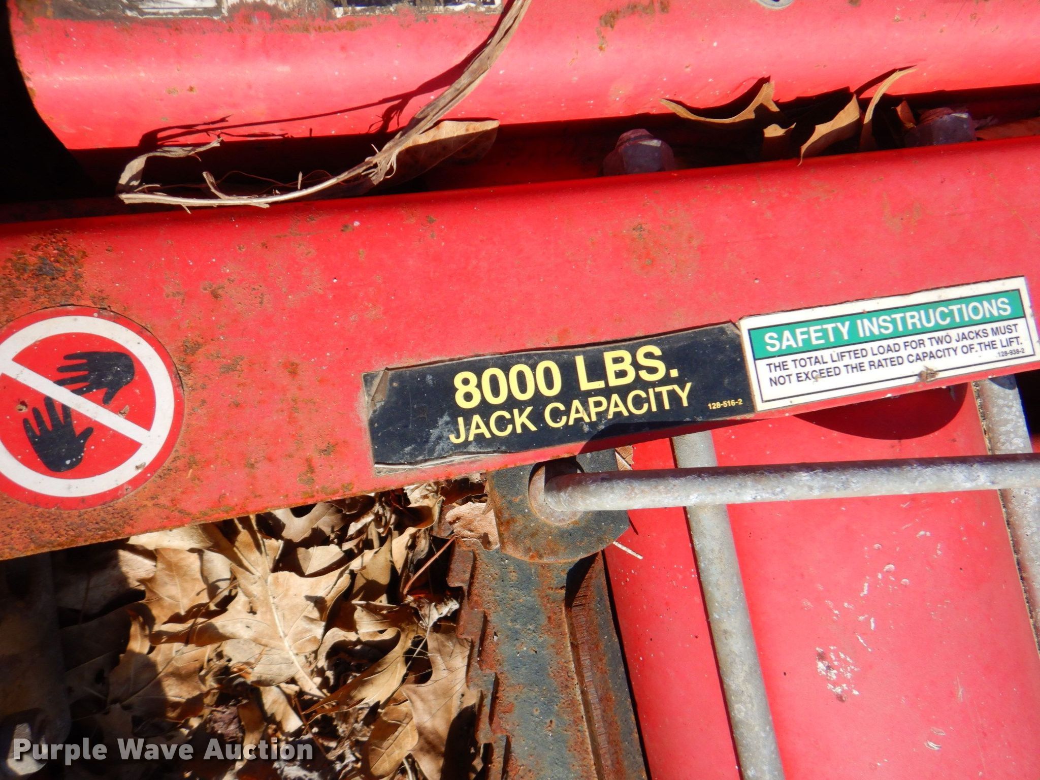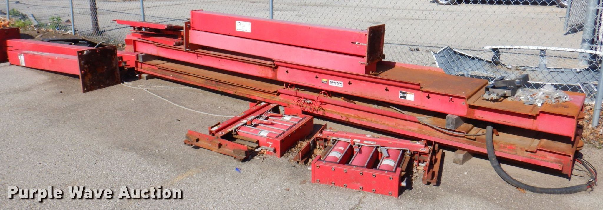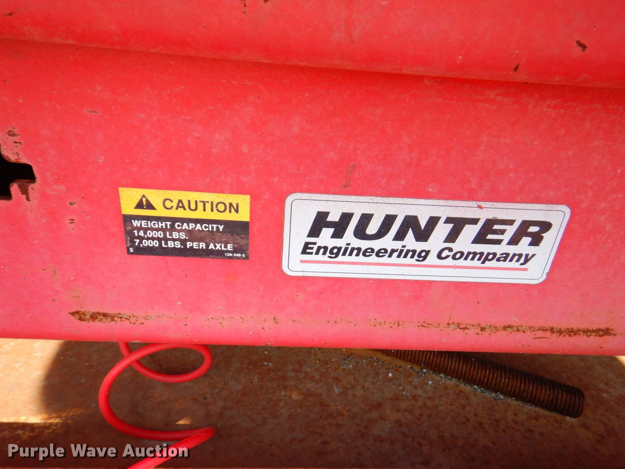 Purple Wave is selling a used Tools in Kansas. This item is a Hunter four post alignment lift with the following: 240V, 14,000 lbs. capacity, Dual rolling bridge jacks, 8,000 lbs. capacity, 16' platform
