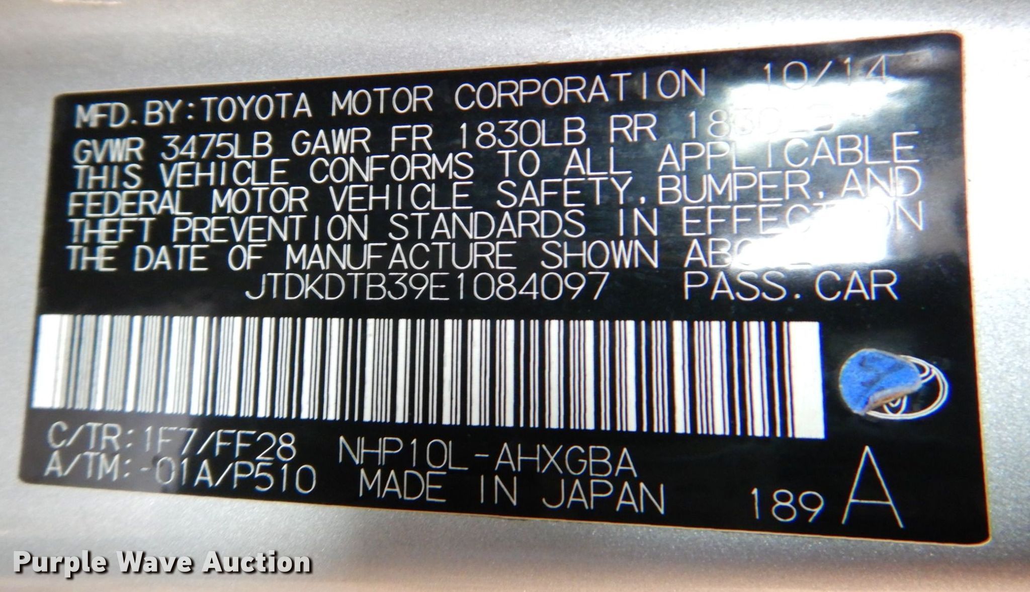 - VIN: JTDKDTB39E1084097