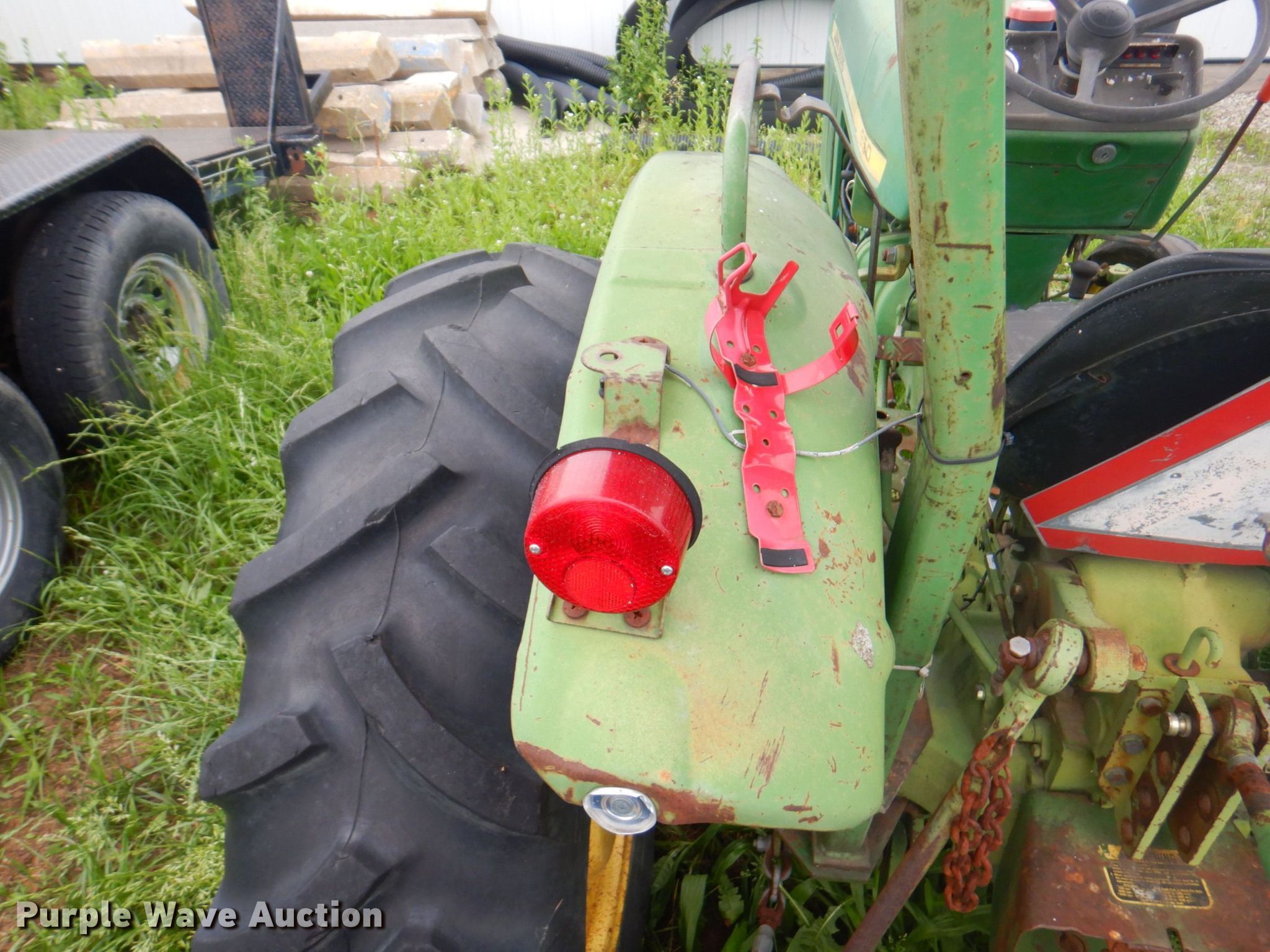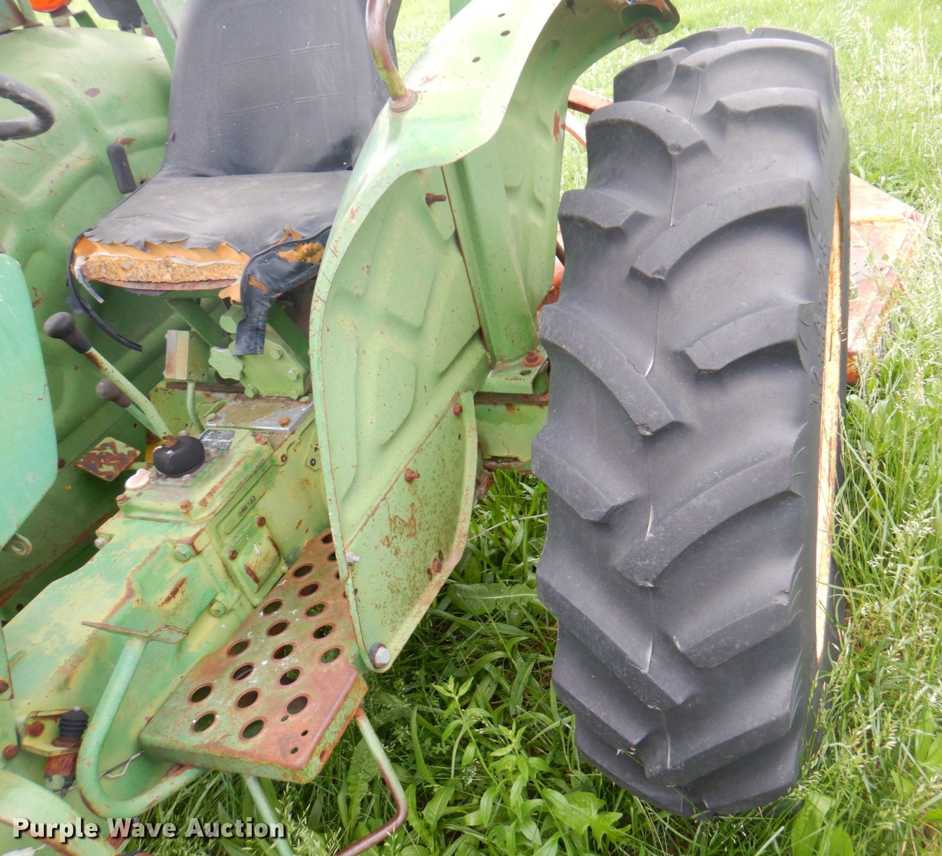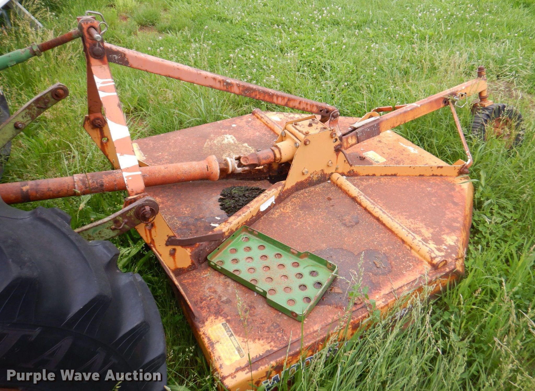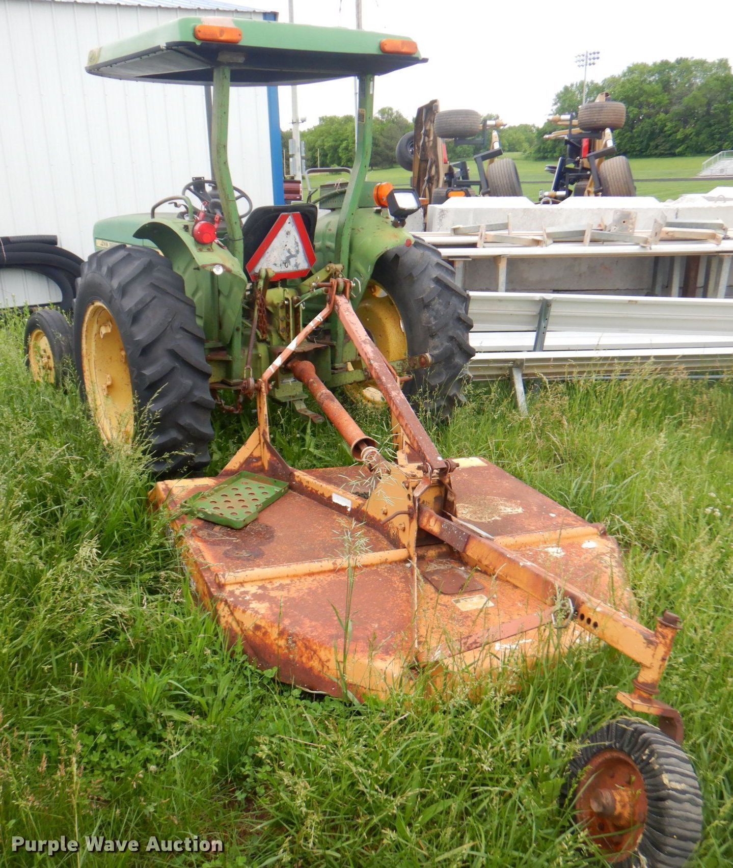 John Deere 950 tractor. Hours: 5,118 on meter, Serial: 008732. Engine Yanmar 3T90J, Cylinders: 3, Fuel type: Diesel. Transmission Manual, 8F - 2R, Differential lock. Features PTO: 540, Three point Top link. Tires Front: 5.00-16, Rear: 12.4-28. Notes Unknown operating condition. Woods rotary mower. Features Width: 5', PTO: 540. Tires Solid. Notes Unknown operating condition. Easton USD 449. 32502 Easton Rd. Easton, KS 66020