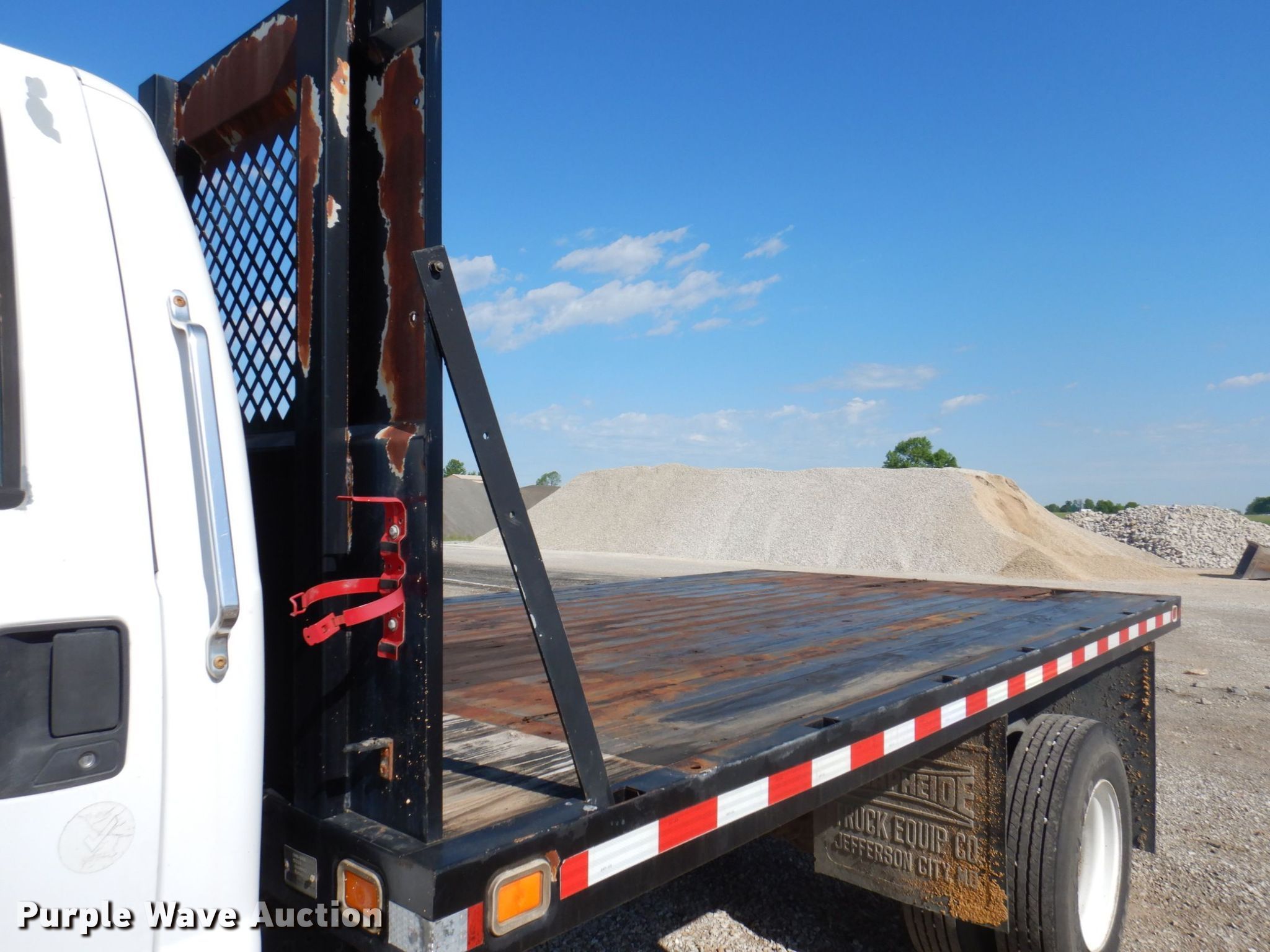 Purple Wave is selling a used Flat Bed Truck in Missouri. This item is a 2003 Ford F650 Super Duty XL flatbed truck with the following: Miles: 144,658 on odometer, Hours: 5,546 on meter, VIN: 3FDNF65893MB01542, Unit #: 7063