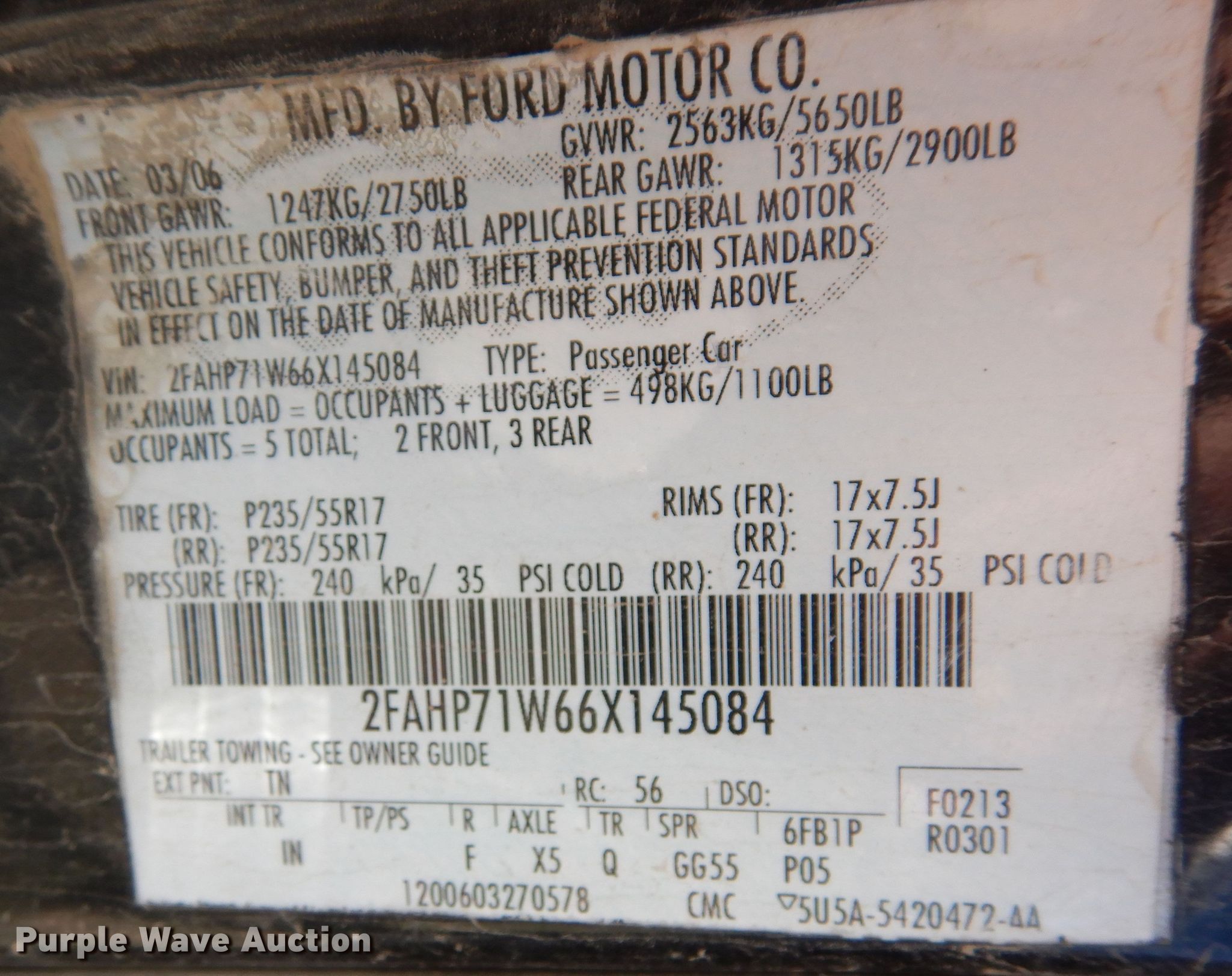 - VIN: 2FAHP71W66X145084