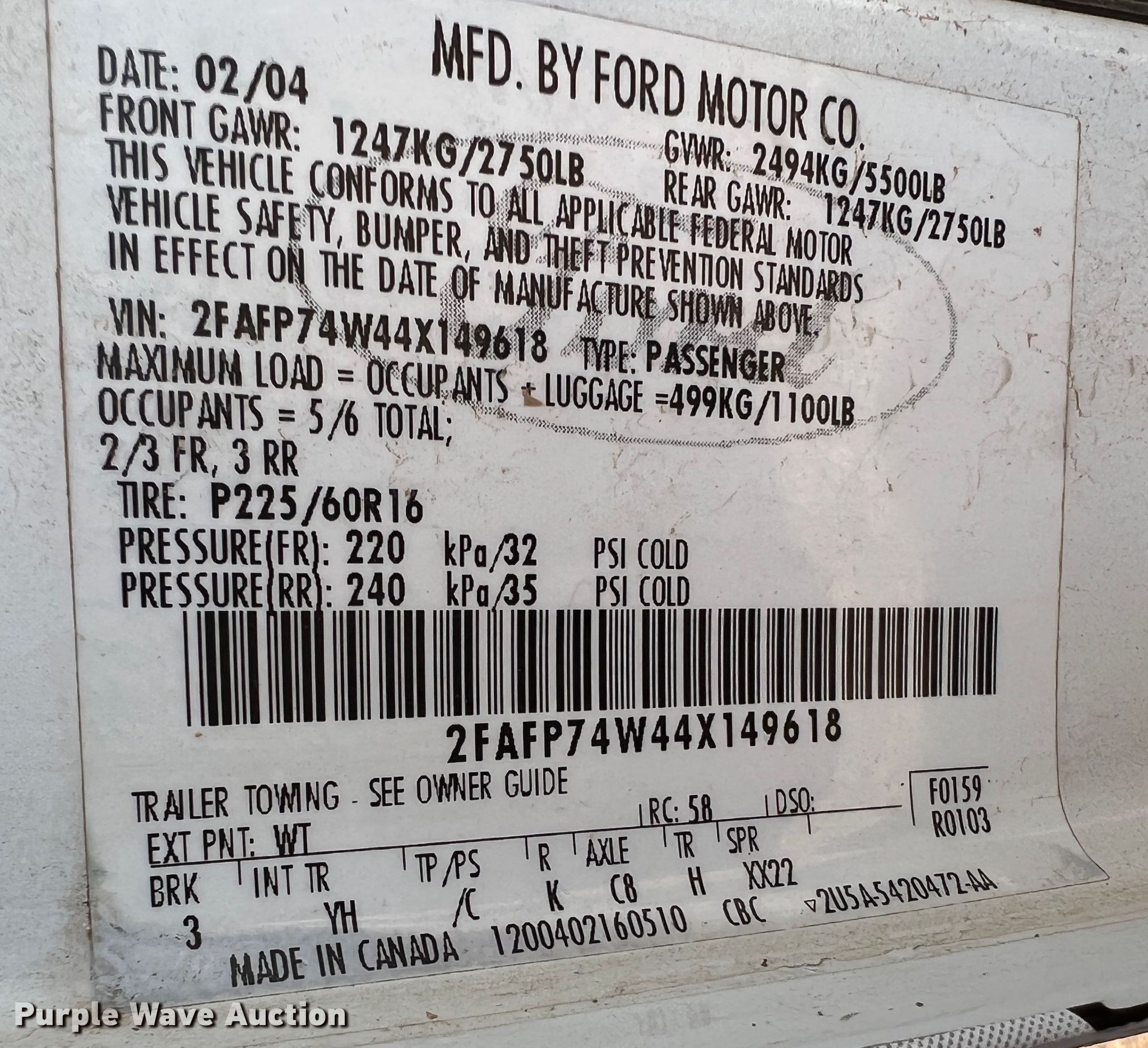 - VIN: 2FAFP74W44X149618