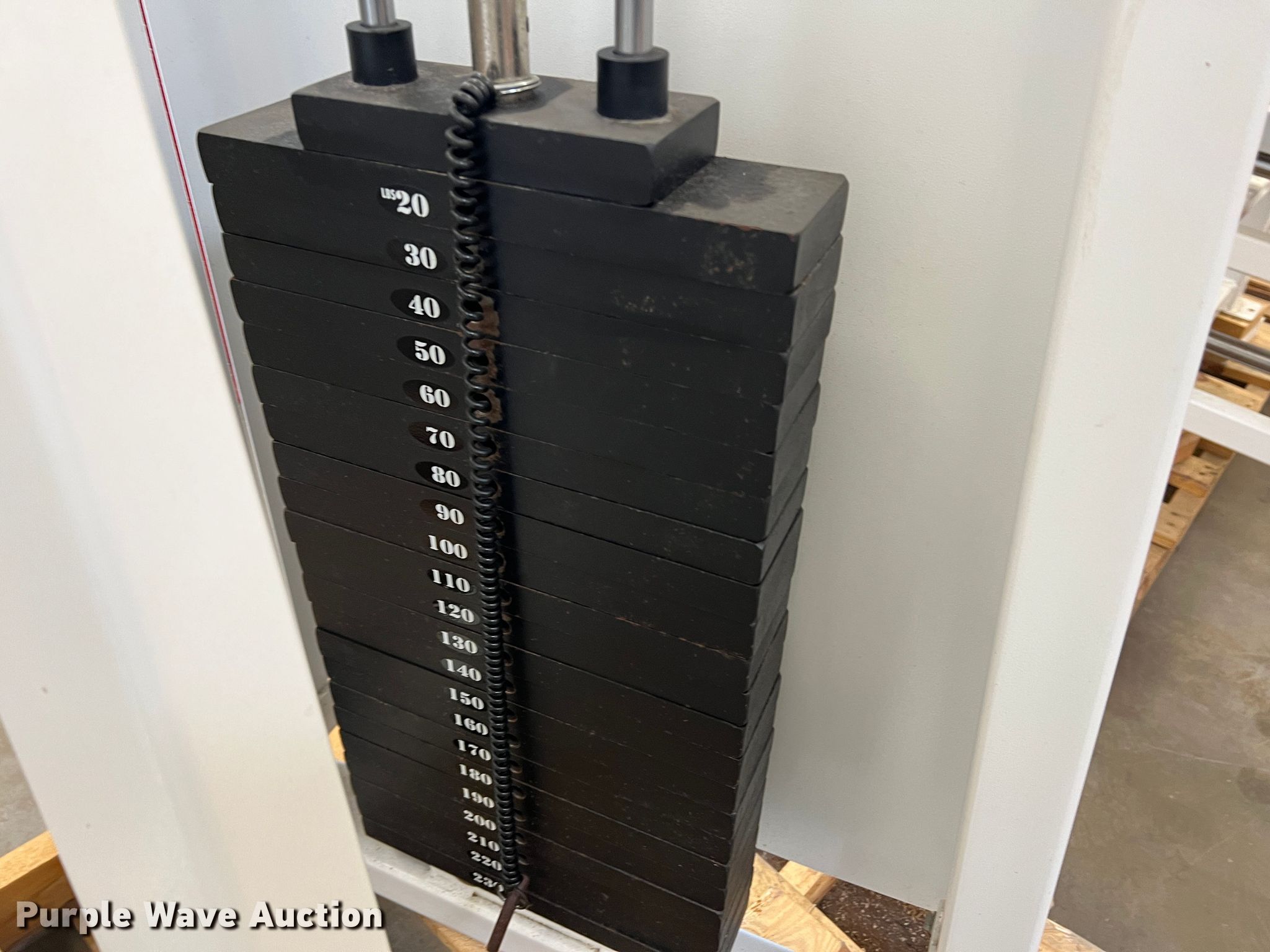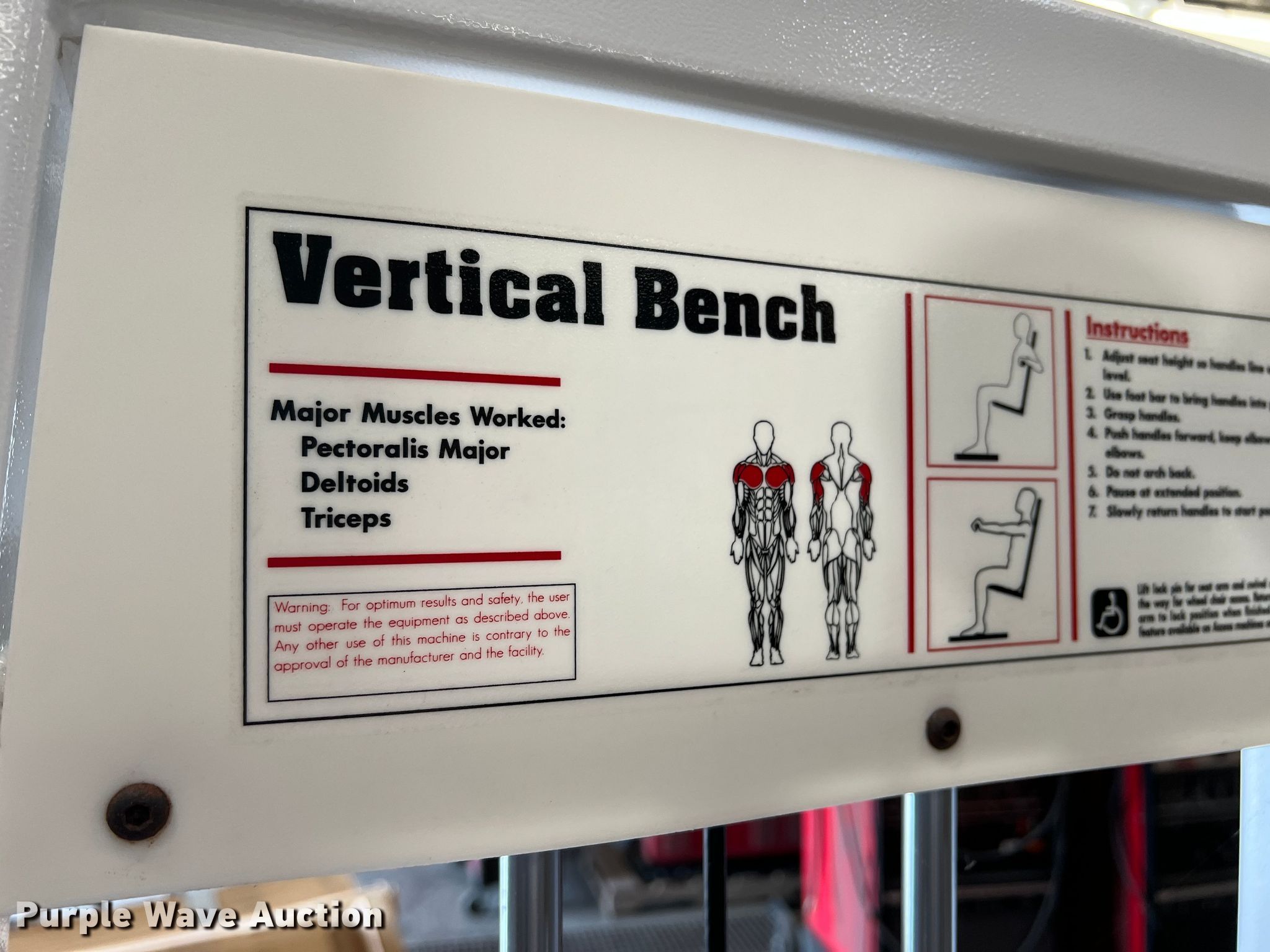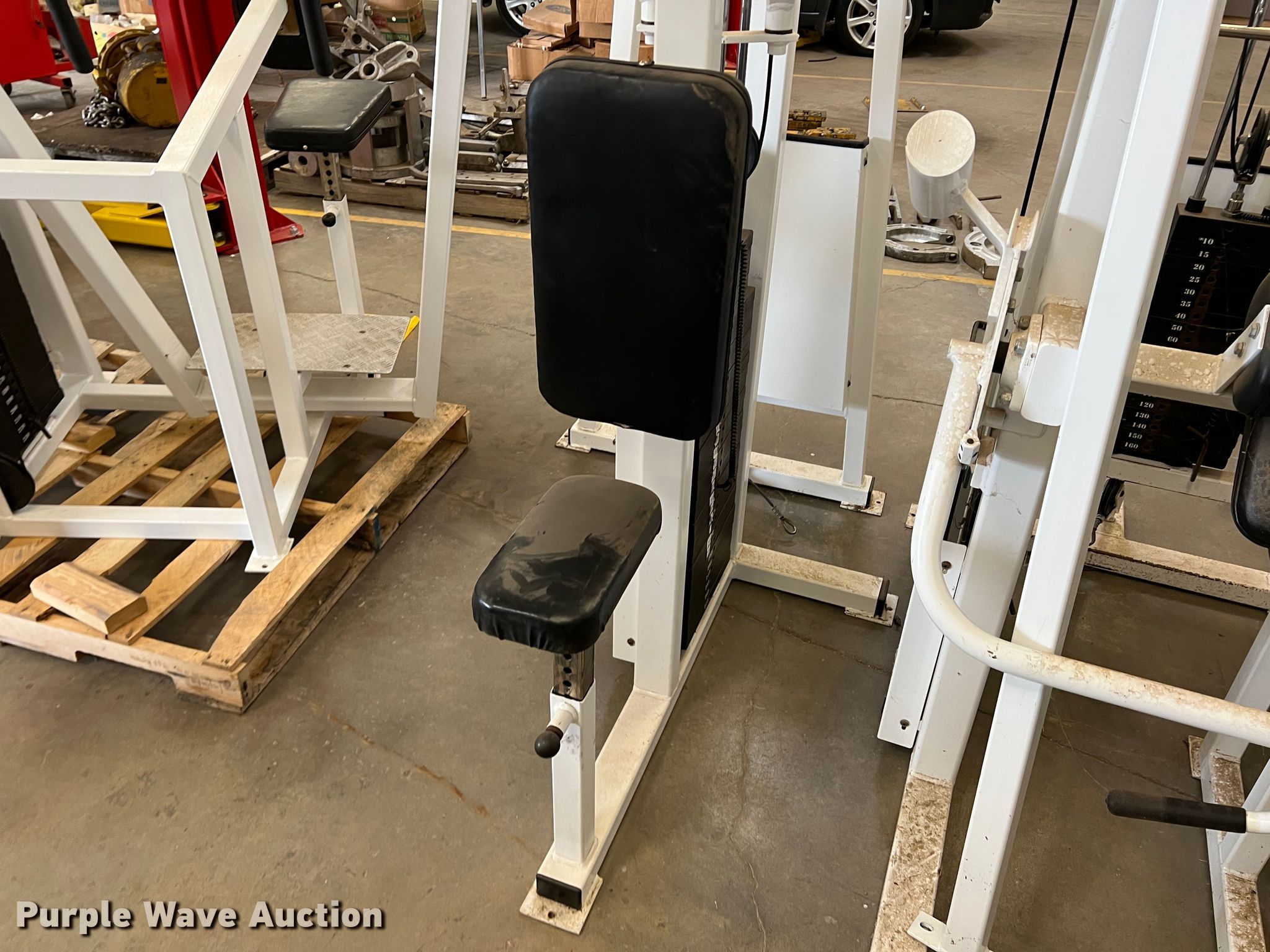 Purple Wave is selling a used Sporting Goods in Kansas. This item is a Weight lifting machines with the following: Bicep, Rear delt/pec fly, Vertical row, Leg press, Torso twist, Vertical bench