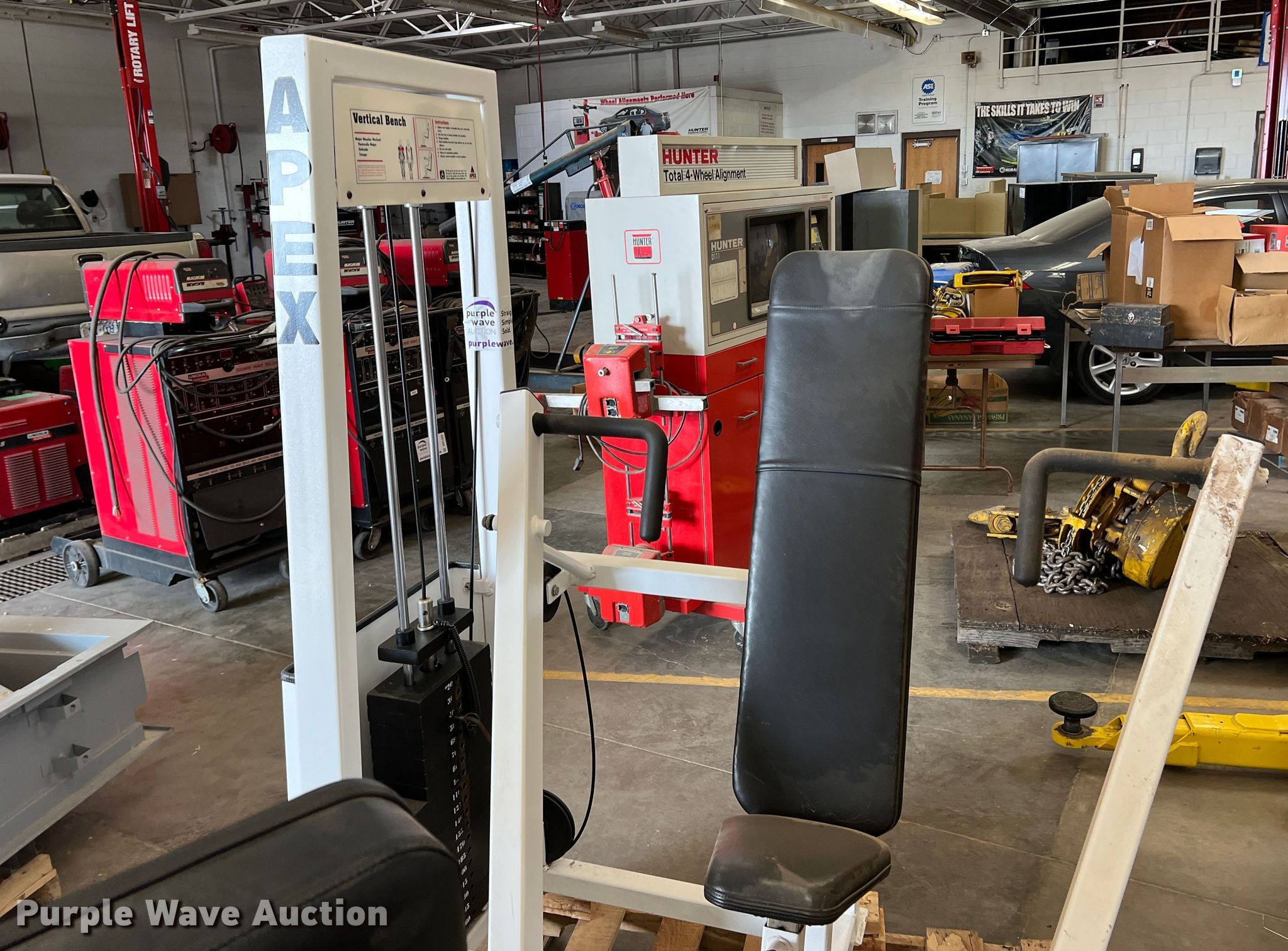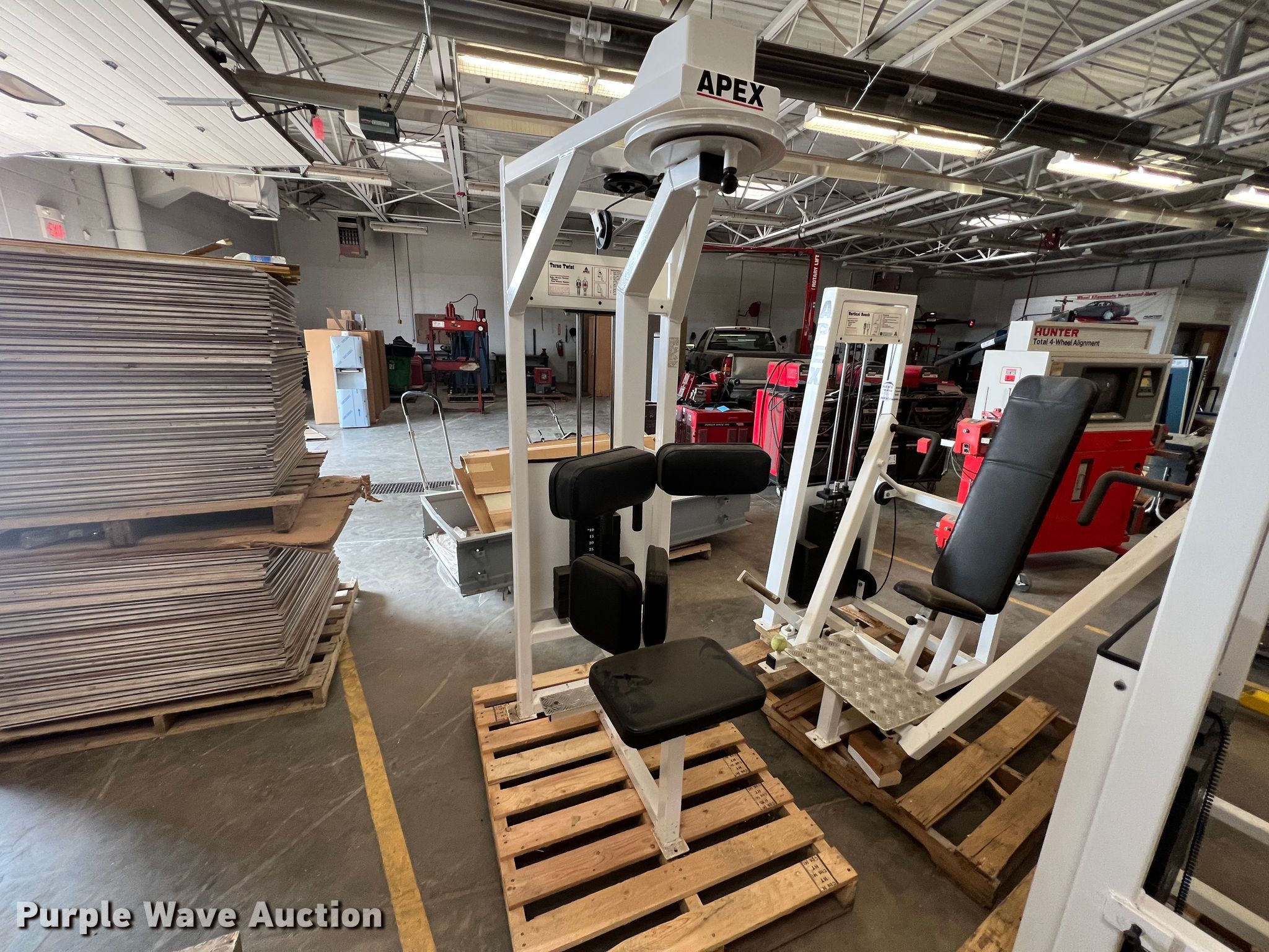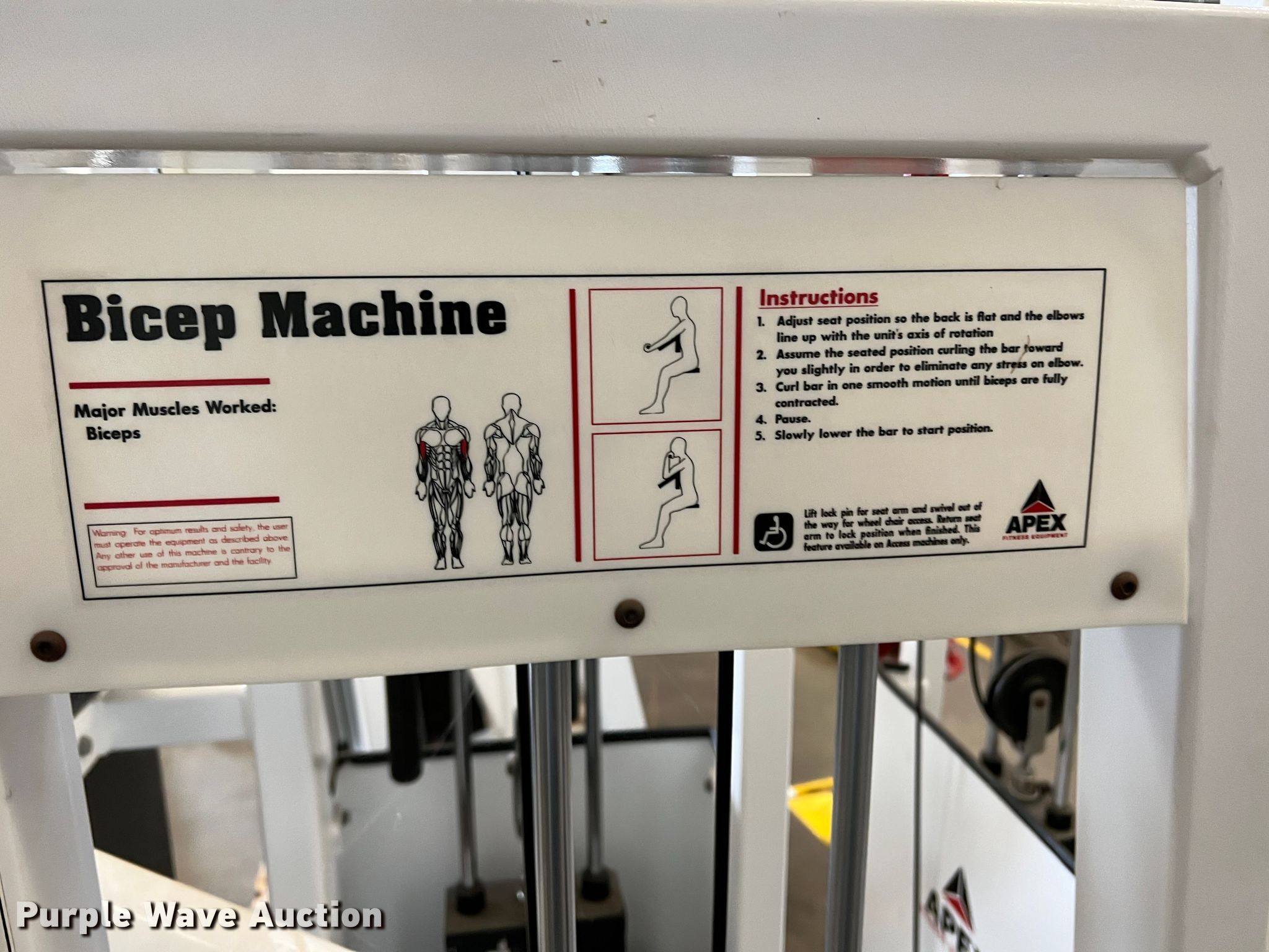Purple Wave is selling a used Sporting Goods in Kansas. This item is a Weight lifting machines with the following: Bicep, Rear delt/pec fly, Vertical row, Leg press, Torso twist, Vertical bench