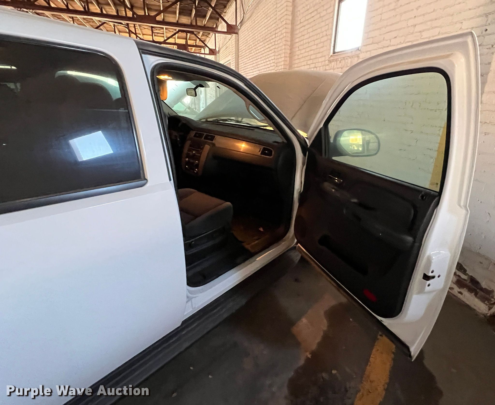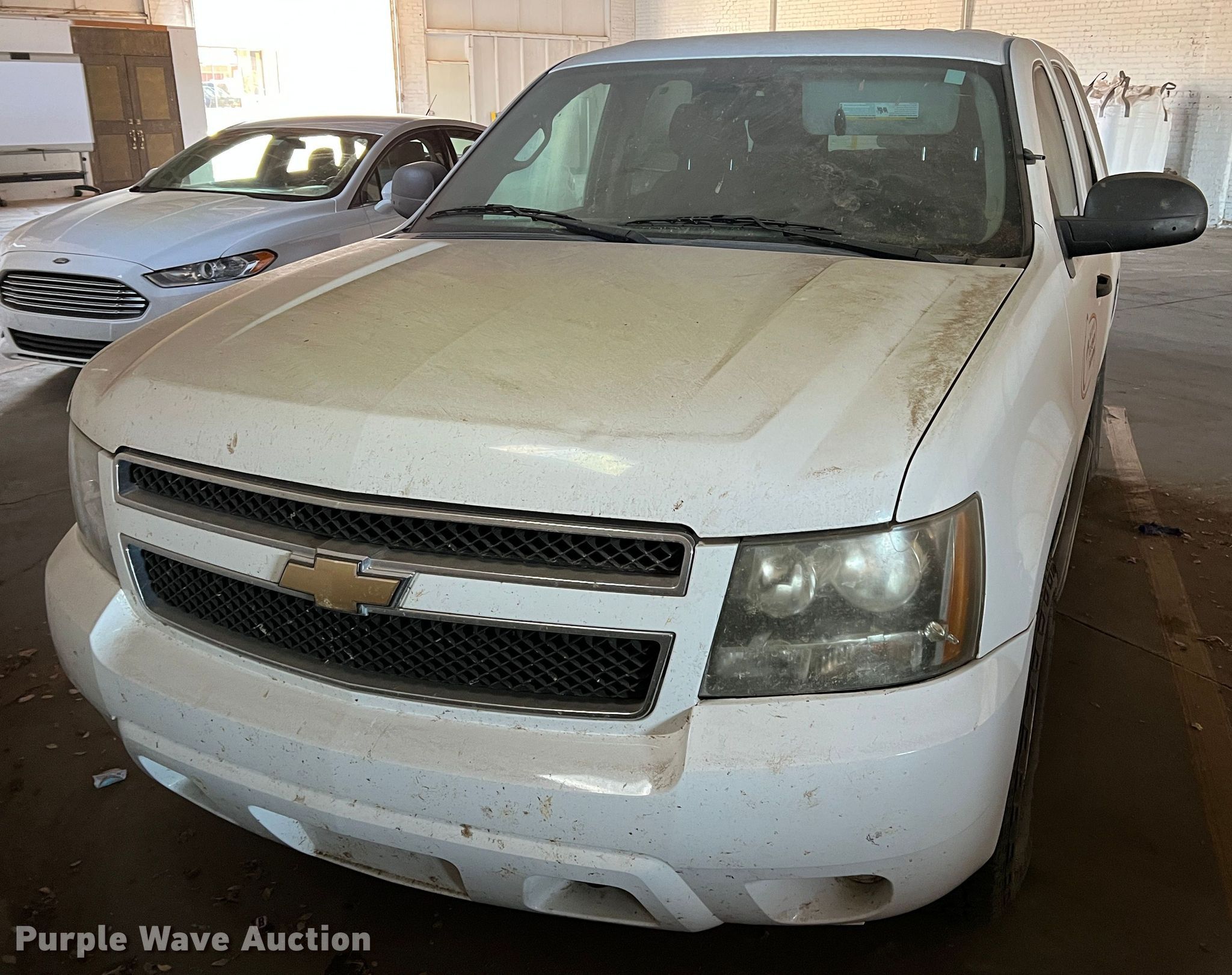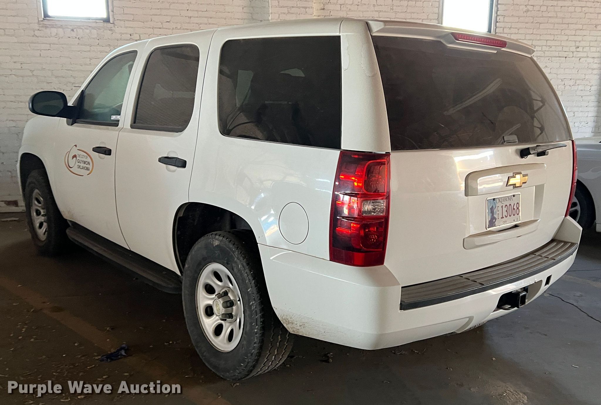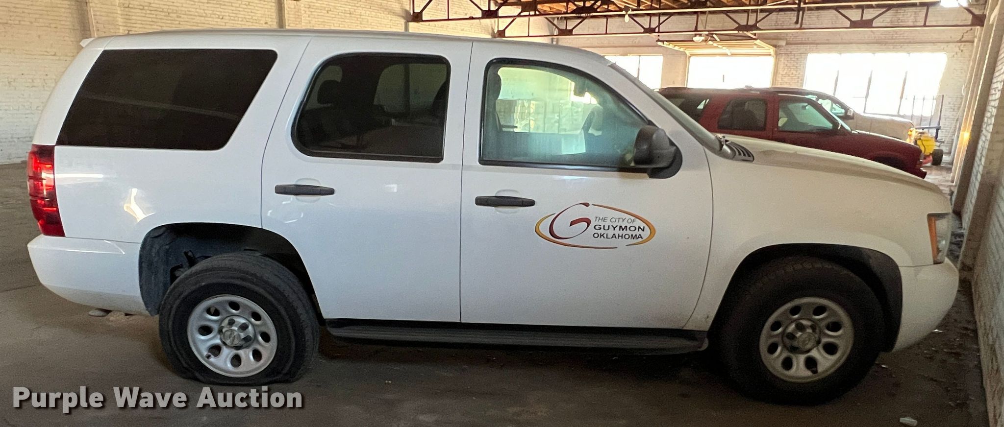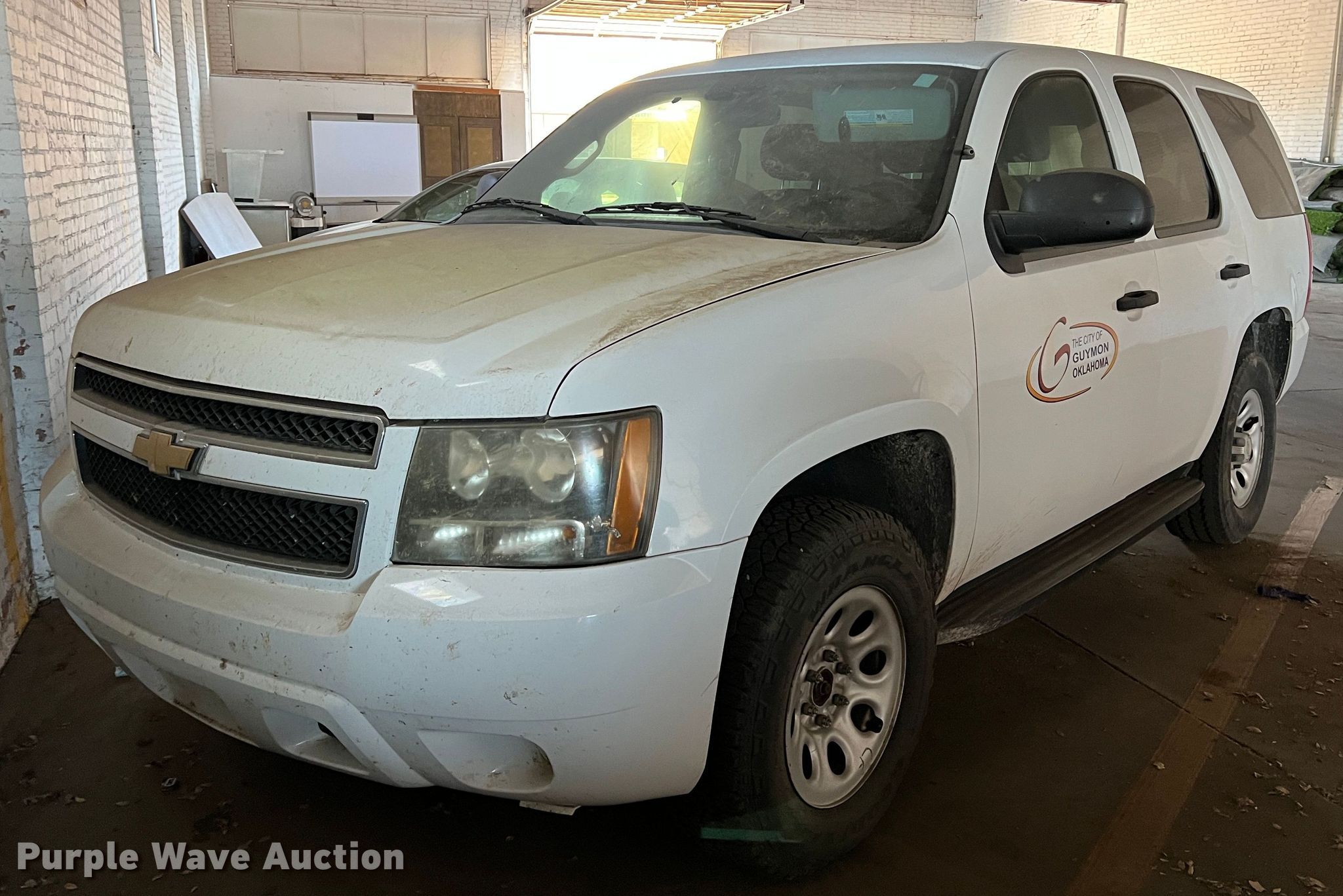 2009 Chevrolet Tahoe Police SUV. Miles: 98,592 on odometer, VIN: 1GNFK03059R259759. Engine Displacement: 5.3L V8 OHV, Cylinders: 8, Fuel type: Gas. Transmission Automatic. Interior AC, Heat, Seat: Power driver, Power passenger, Power windows, Power locks, Cruise control. Tires Size: 265/70R17. Notes Dash warning indicator: Check engine, TPMS, Air bag, Unknown operating condition. Oklahoma title. 424 North Main Street. Guymon, OK 73942