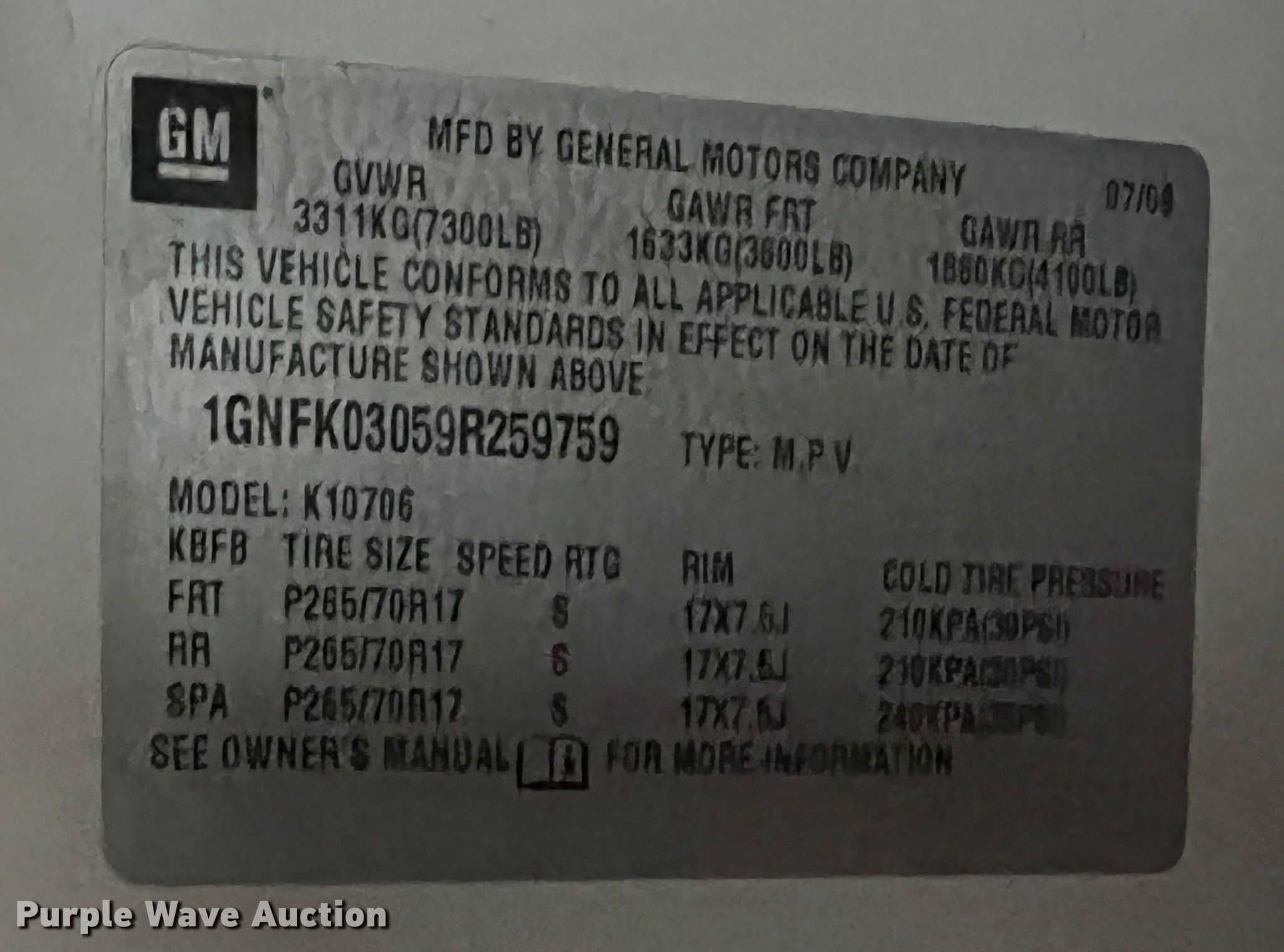 Purple Wave is selling a used Passenger Vehicle in Oklahoma. This item is a 2009 Chevrolet Tahoe Police SUV with the following: Miles: 98,592 on odometer, VIN: 1GNFK03059R259759