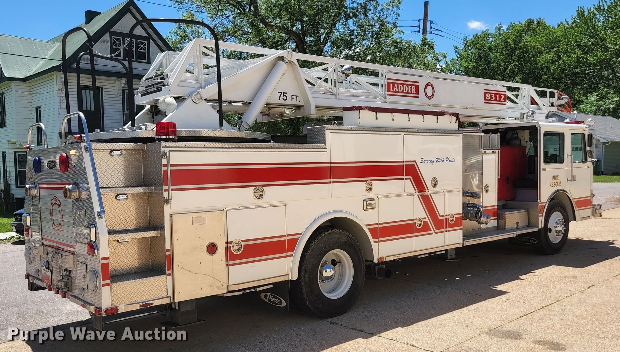 This 1985 Pierce Arrow aerial platform fire truck will sell to the highest bidder regardless of price.