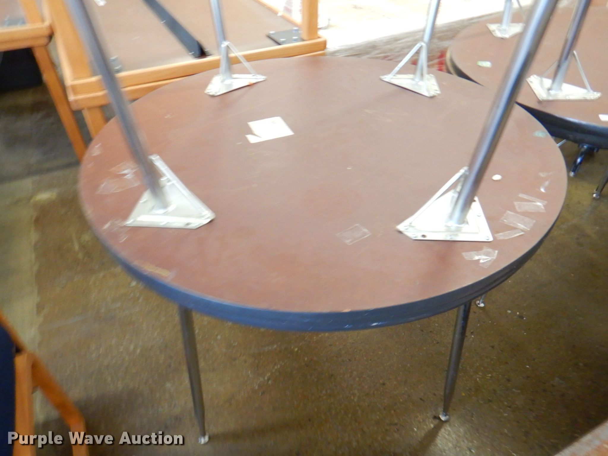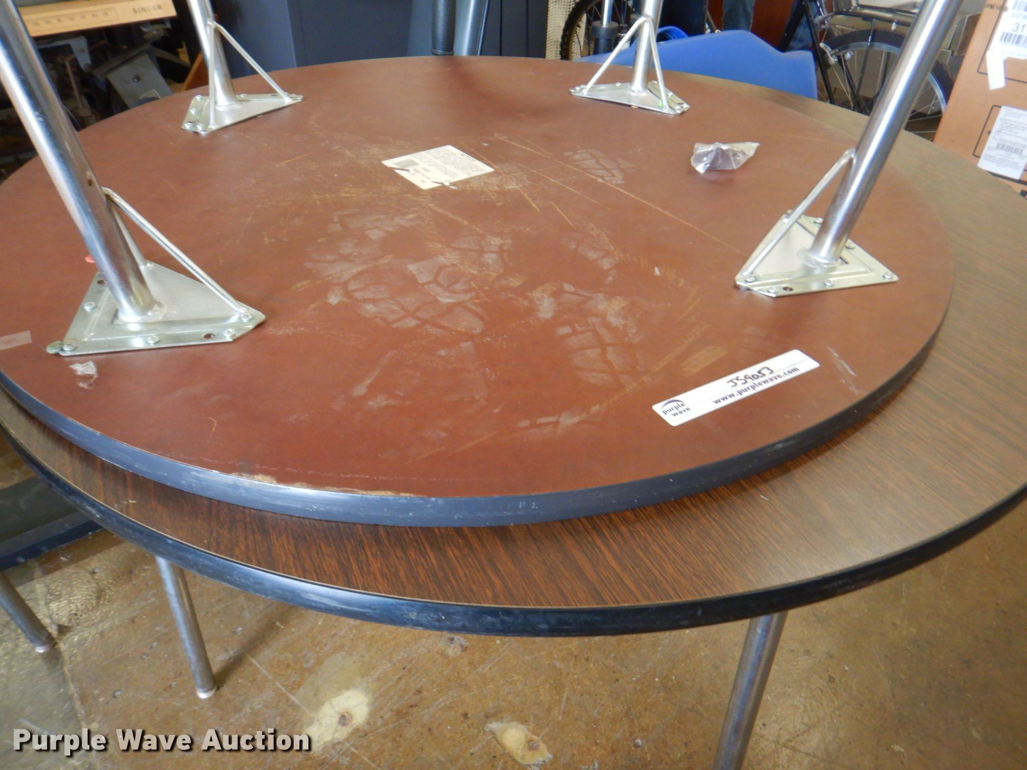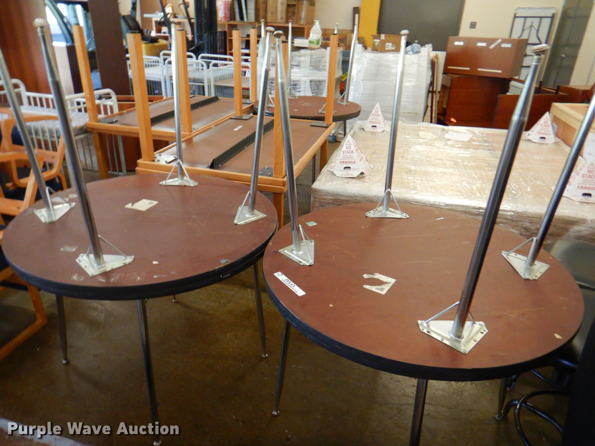 Purple Wave is selling a used Furniture in Kansas. This item is a Tables with the following: (13) 42" round tables, (4) square tables