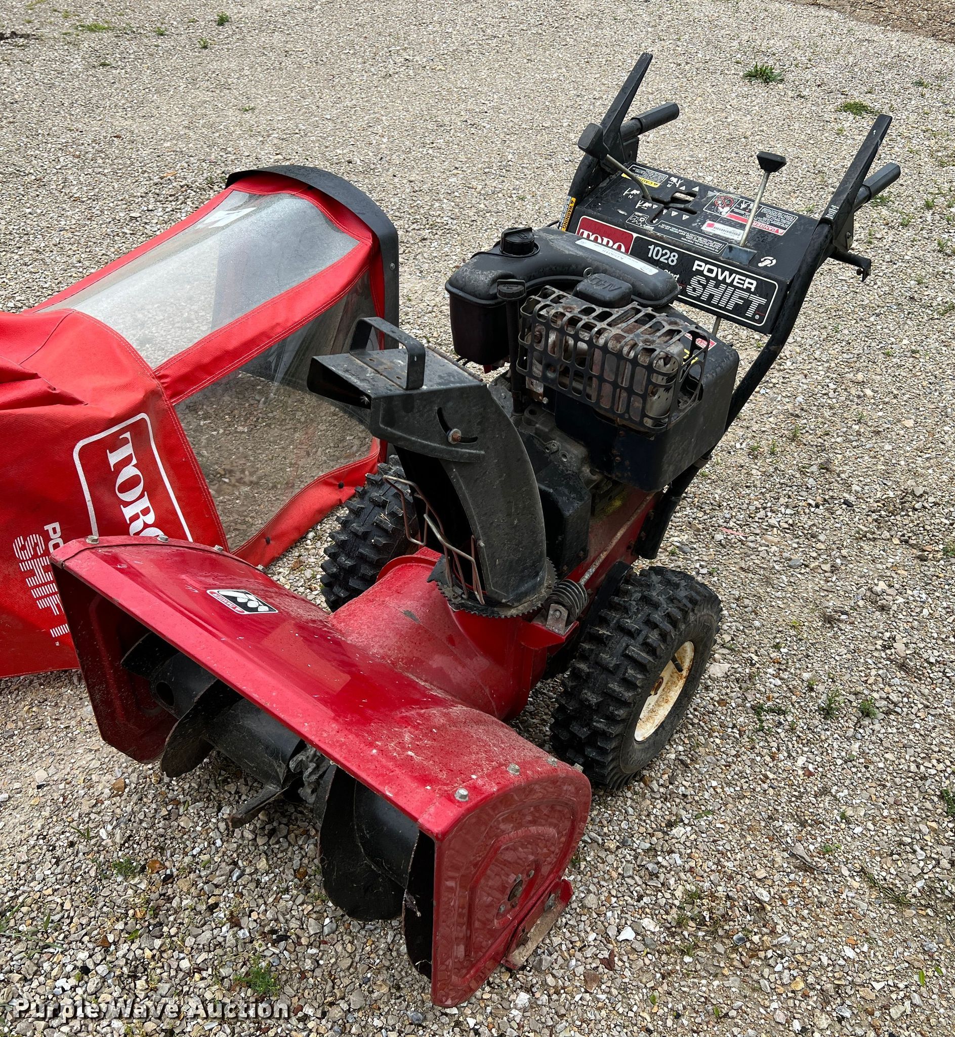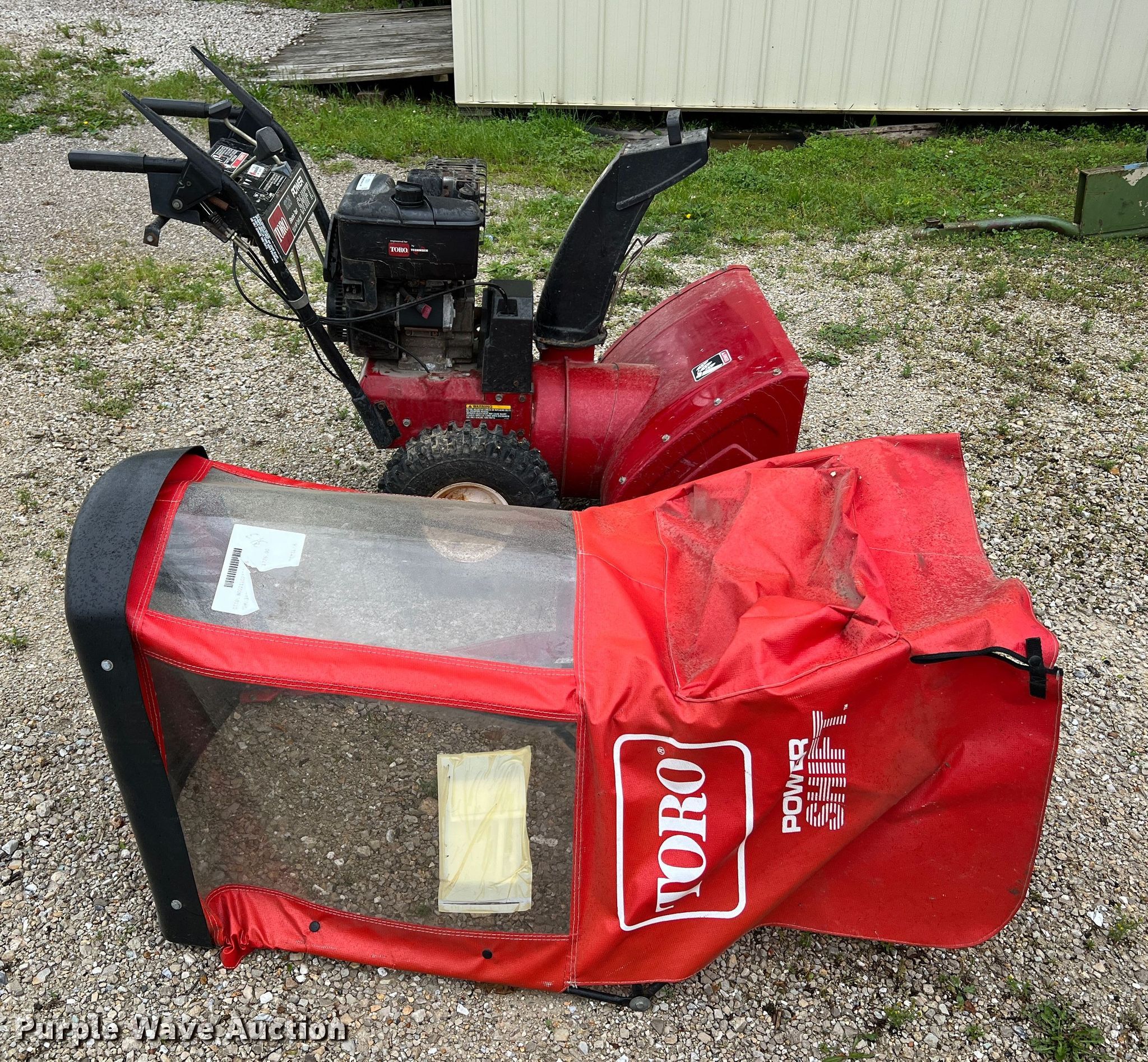 Purple Wave is selling a used Lawn and Garden in Missouri. This item is a Toro 38560 snow blower with the following: Tecumseh OHV gas engine, 10 HP, Electric start, 28"W, Weather enclosure, Serial: 200000691