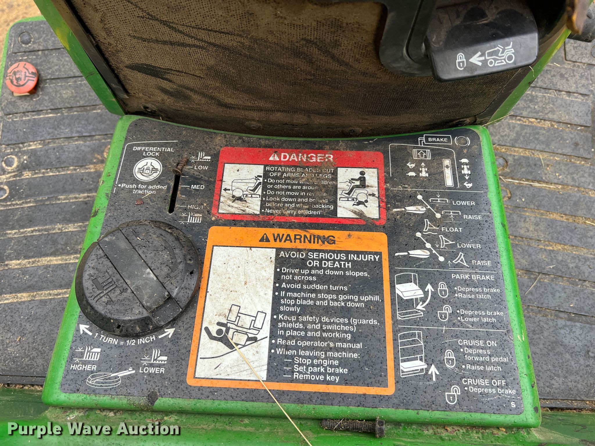 Purple Wave is selling a used Lawn Mower in Missouri. This item is a John Deere 445 lawn mower with the following: Hours: 1,952 on meter, Cutting width: 60"