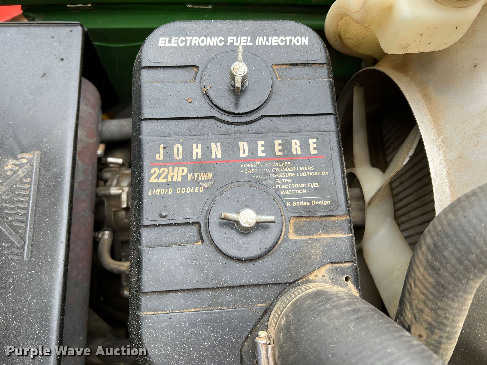 John Deere 445 lawn mower. Hours: 1,952 on meter, Cutting width: 60". Engine Kawasaki, Displacement: 617 cc, Cylinders: 2, Fuel type: Gas, HP: 22. Transmission Hydrostatic. Chassis PTO. Features Hydraulic remote sets Front: 2. Tires Front: 18x8.50-8, Rear: 26x12.00-12. Notes Possible engine issues. Crocker School District. 104 School St. Crocker, MO 65452