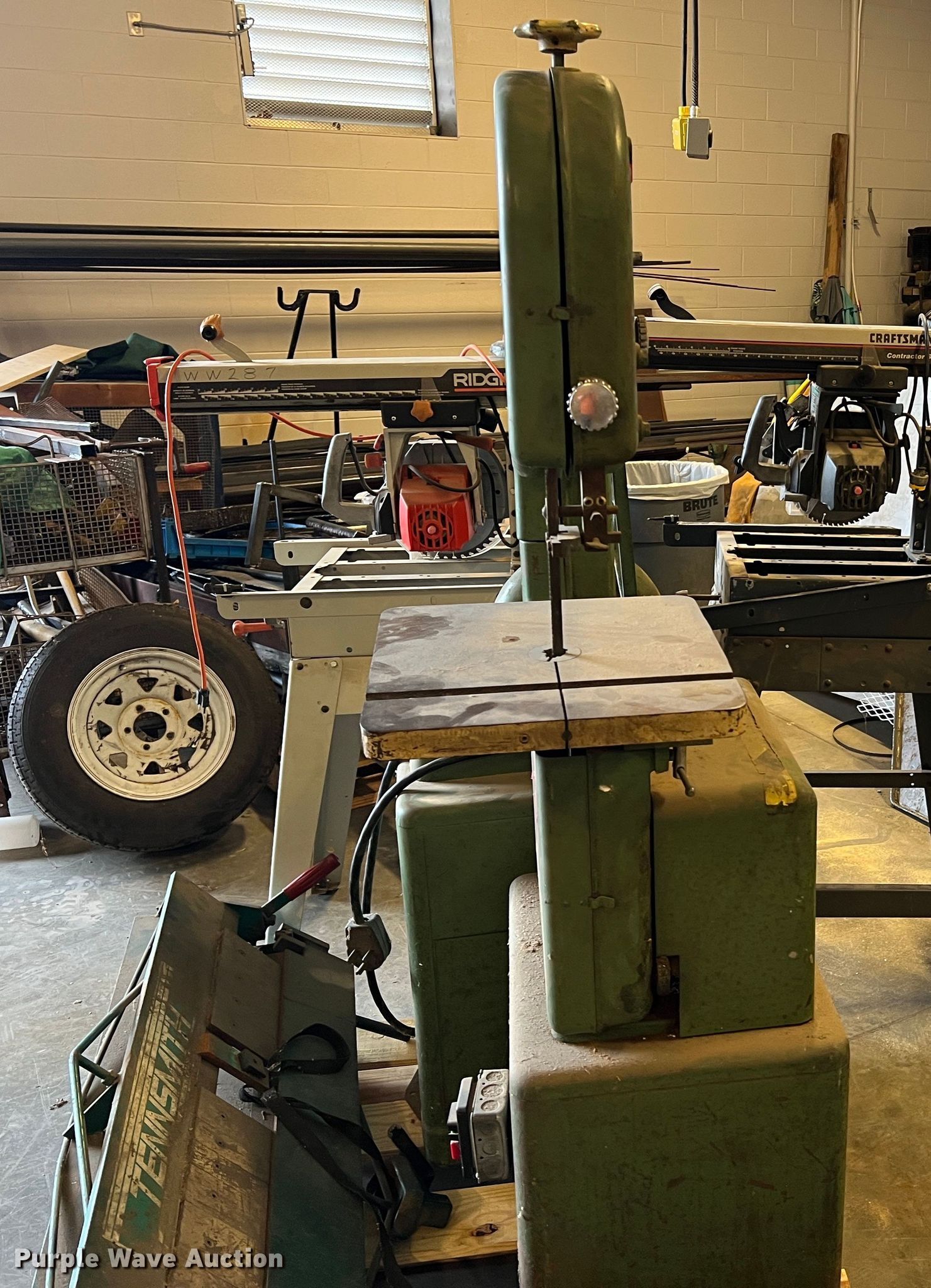 Purple Wave is selling a used Tools in Missouri. This item is a Tools with the following: Tennsmith sheet metal brake, Sheet metal roller, Powermatic 143 bandsaw, Volts: 220, Phase: Single, Serial: 66-2995, Powermatic sander, Volts: 220, Phase: Single, 6" belt sander, 12" disc sander, Ridgid RS10000 radial arm saw, Volts: 110, Serial: 00117P0266, Craftsman 113196410 radial arm saw, Volts: 110, 10", Serial: 93027P0599