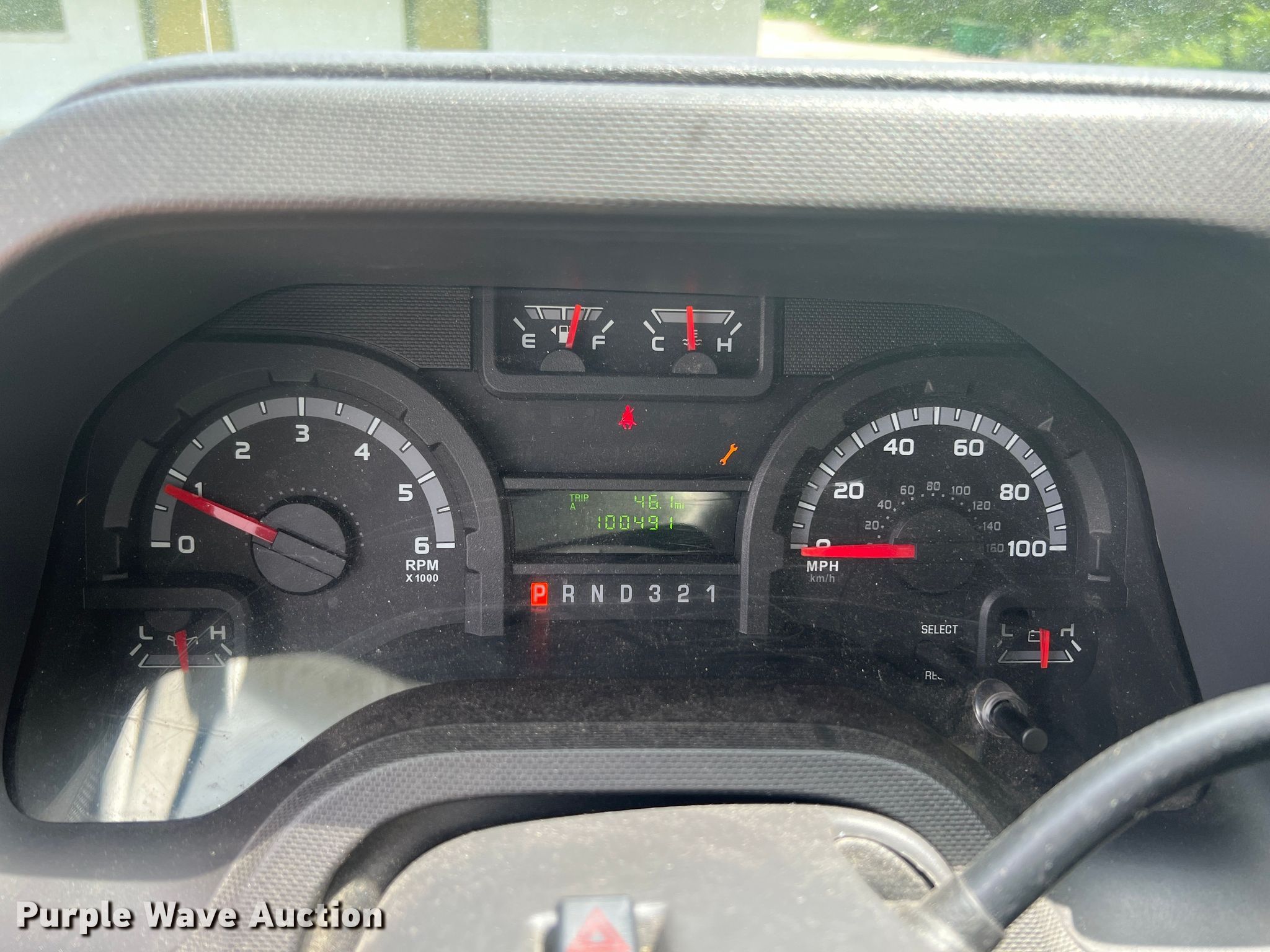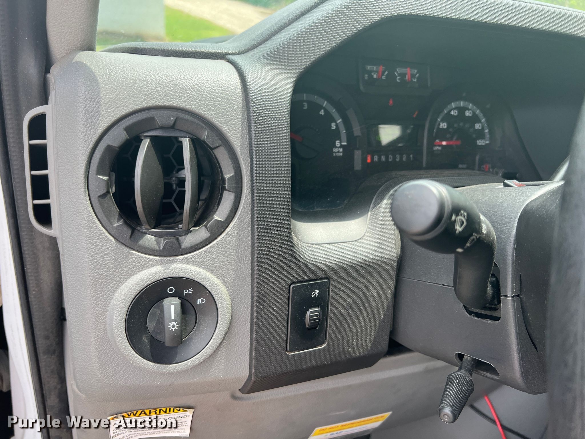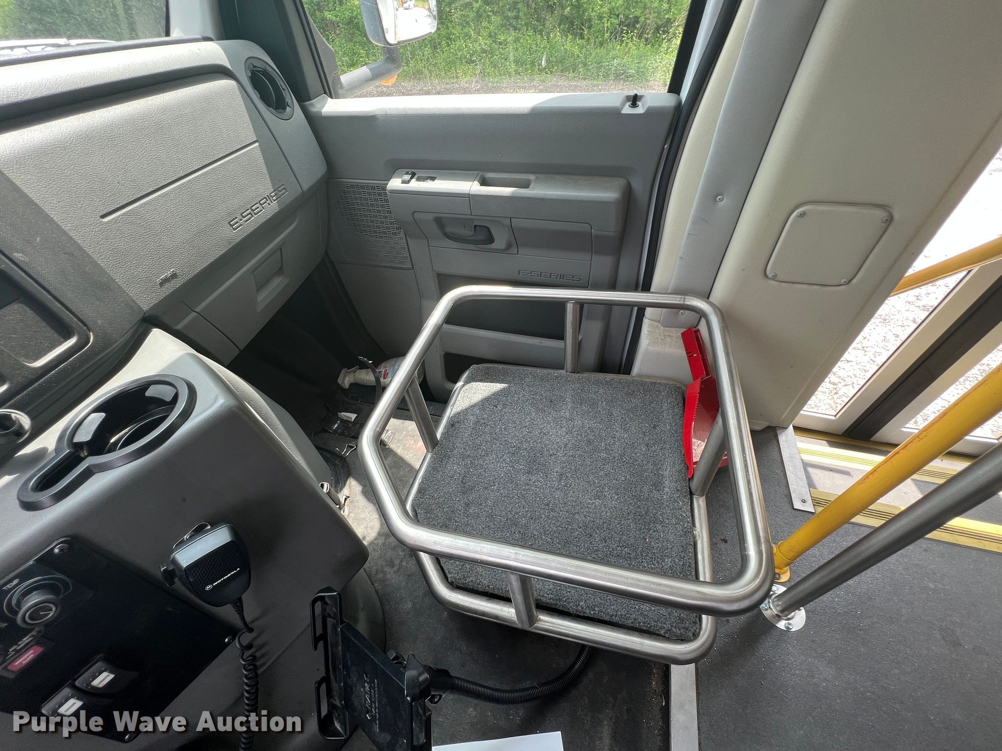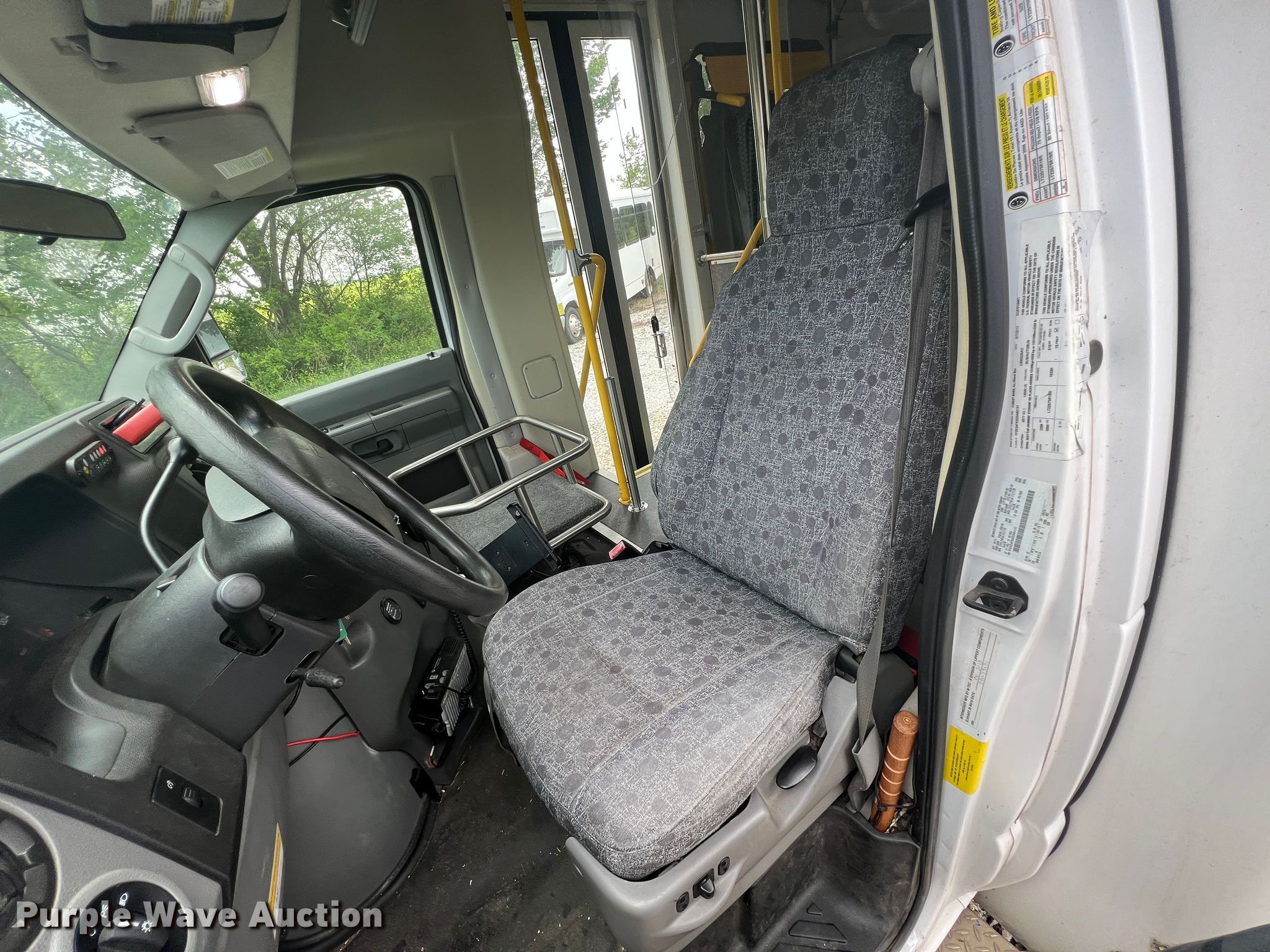 2013 Ford E450 shuttle bus. Miles: 100,491 on odometer, Hours: 4,888 on meter, VIN: 1FDXE4FS2DDA93131. Engine Displacement: 6.8L, Cylinders: 10, Fuel type: CNG. Transmission Automatic. Chassis Axles: Single, Suspension: Spring, Brakes: Hydraulic, GVWR: 14,500 lbs, Wheelbase: 158". Interior AC, Heat, Cruise control, Auxiliary controls, Electric passenger sliding door, Passengers: 14, Wheelchair lift. Tires Size: LT225/75R16. Notes Dash warning indicator: Powertrain malfunction, Dead battery, Catalytic converter missing. Oklahoma title. Grand Gateway Economic Dev. Assc. DBA Pelivan Transit. Big Cabin, OK 74332
