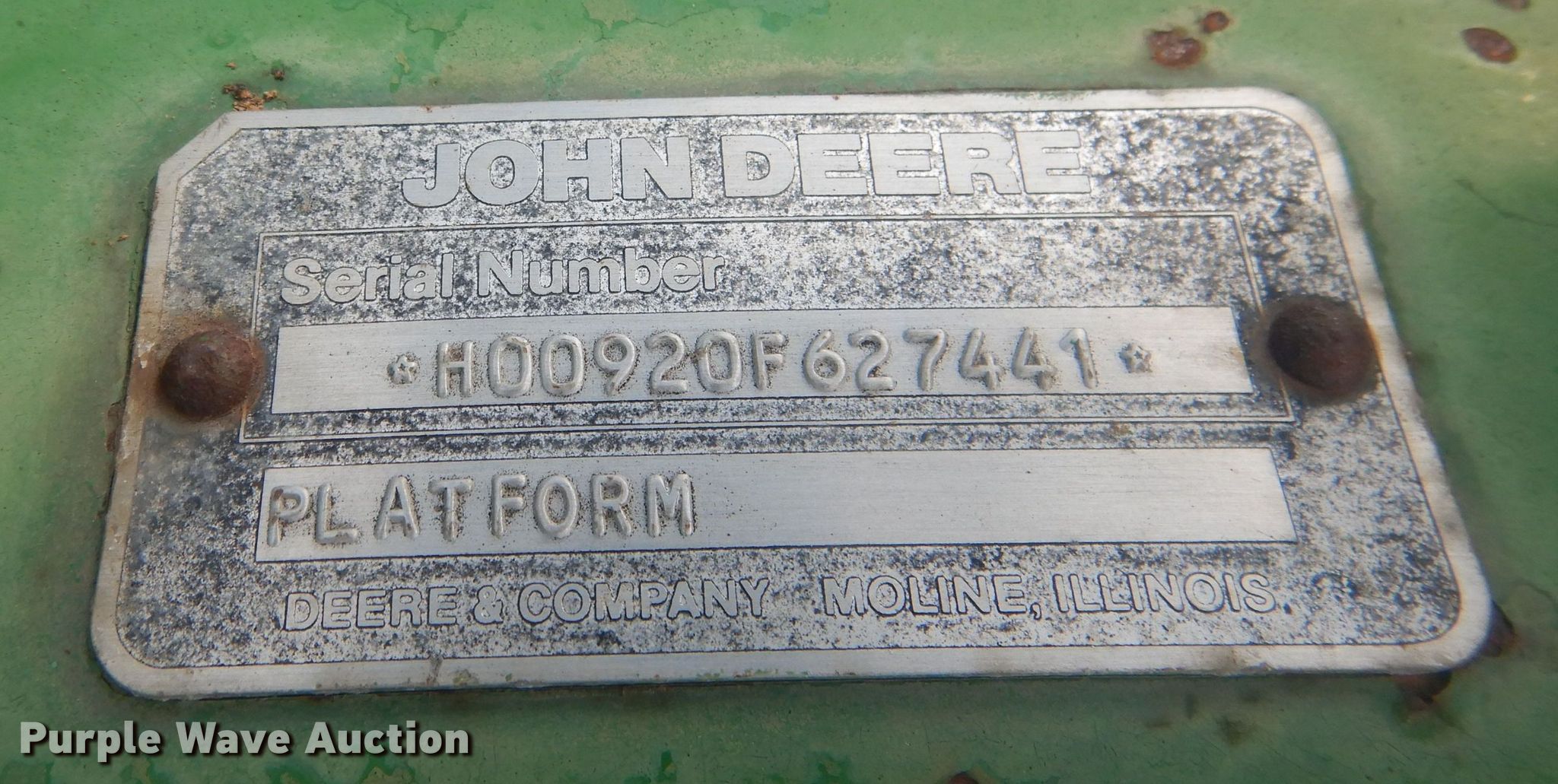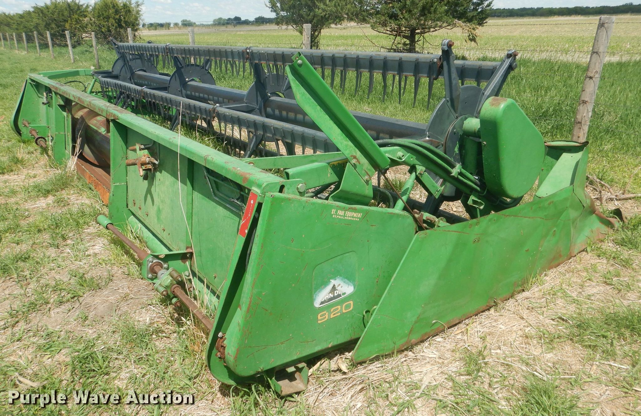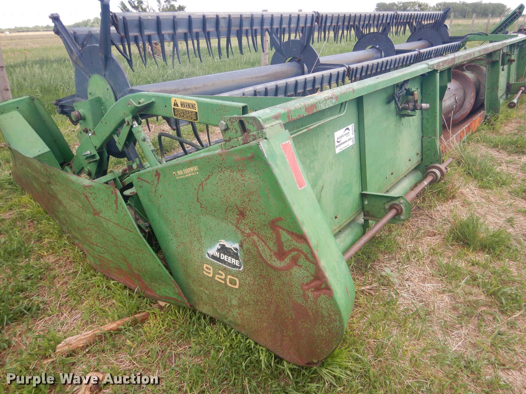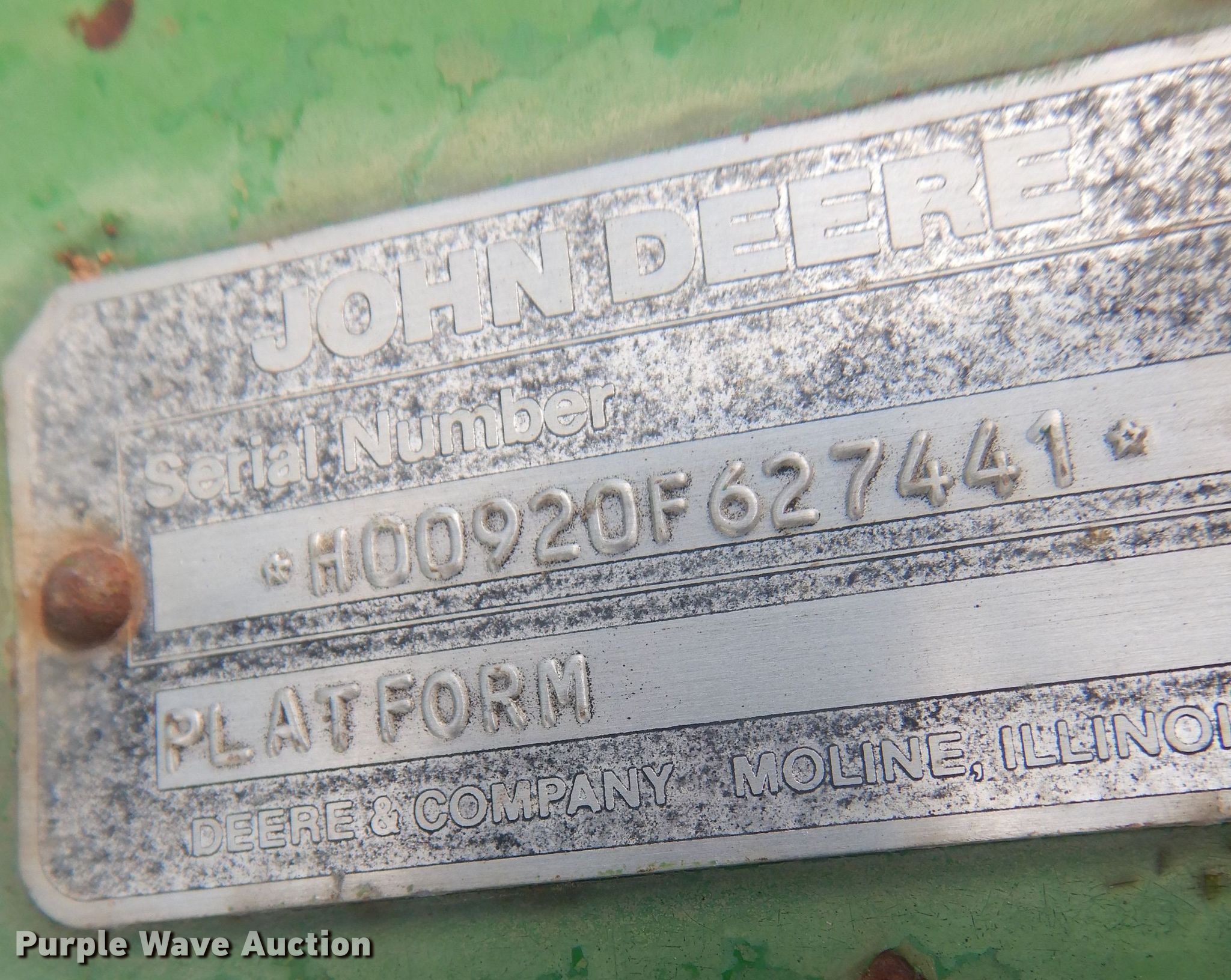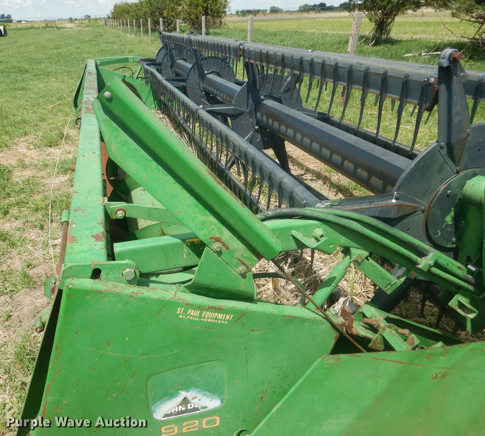 Purple Wave is selling a used Platform or Stripper Head in Nebraska. This item is a 1988 John Deere 920 flex head with the following: Serial: H00920F627441