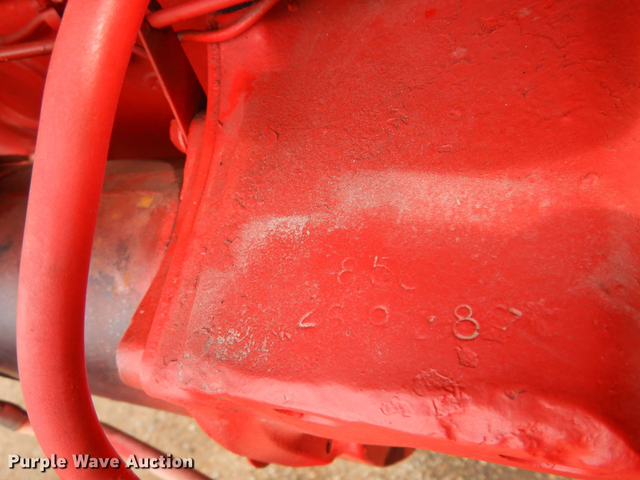 Ford 850 tractor. Hours: 3,626 on meter, Serial: 26928. Engine Cylinders: 4, Fuel type: Gas. Transmission Manual, 5F - 1R. Features PTO: 540, Three point, Hydraulic remote sets Rear: 1. Tires Front: 5.50-16, Rear: 13.6-28. Notes Rear main seal leaks. 10225 SE 3rd St. Murdock, KS 67111