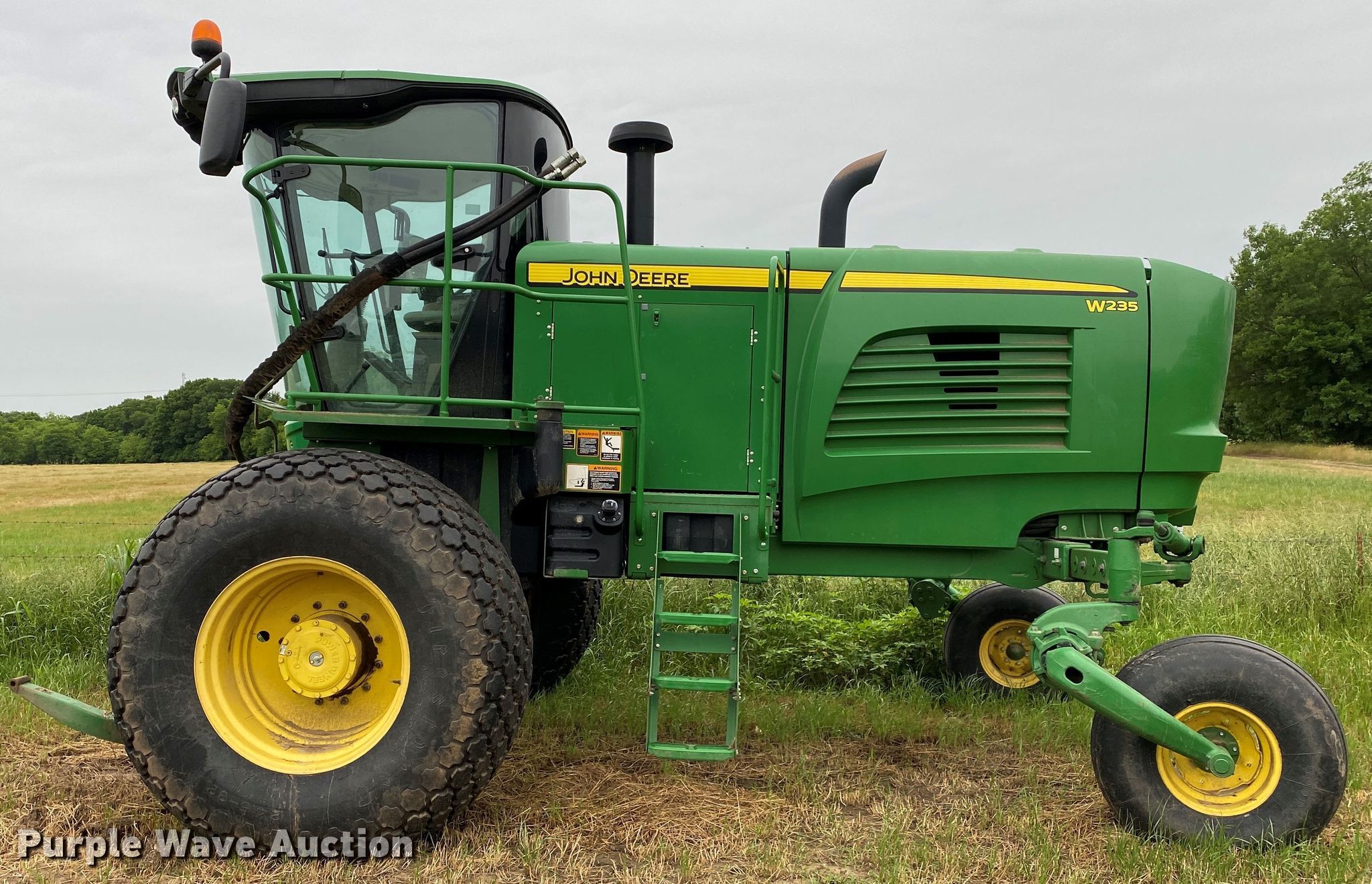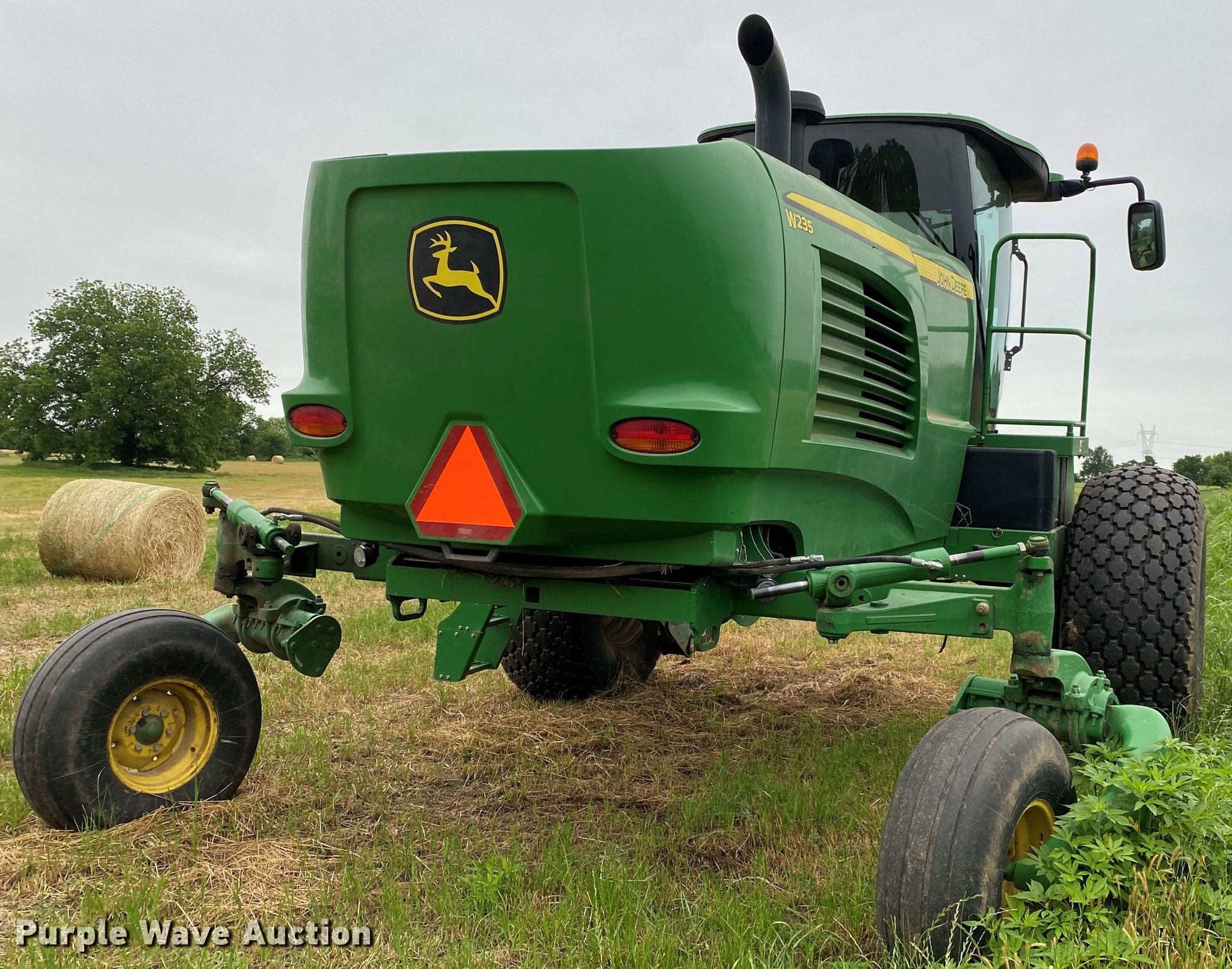 Purple Wave is selling a used Windrower Self Propelled in Oklahoma. This item is a 2014 John Deere W235 windrower with the following: Hours: Unknown, Serial: 1E0W235R8EE400032, Claim #: 2-804923