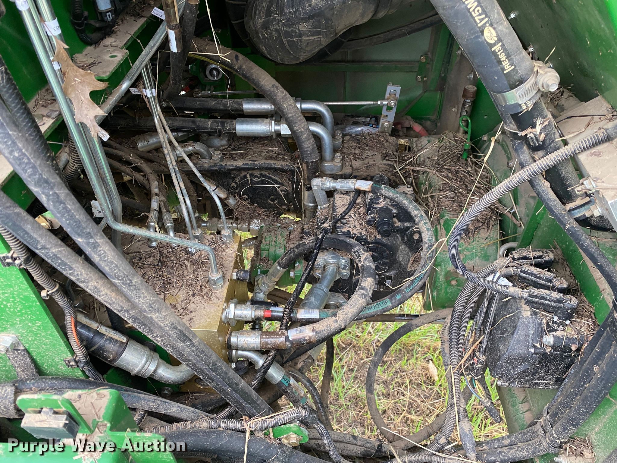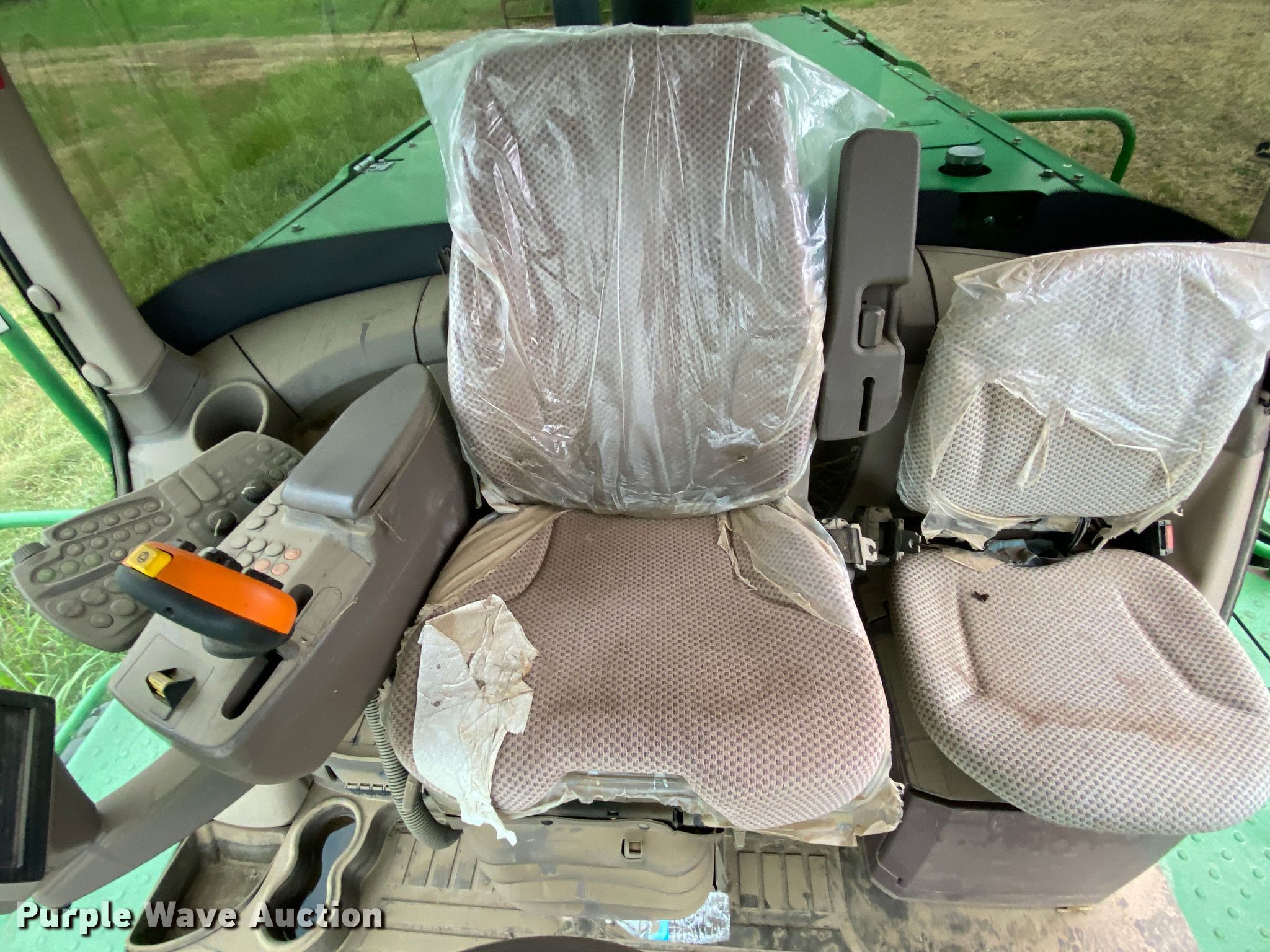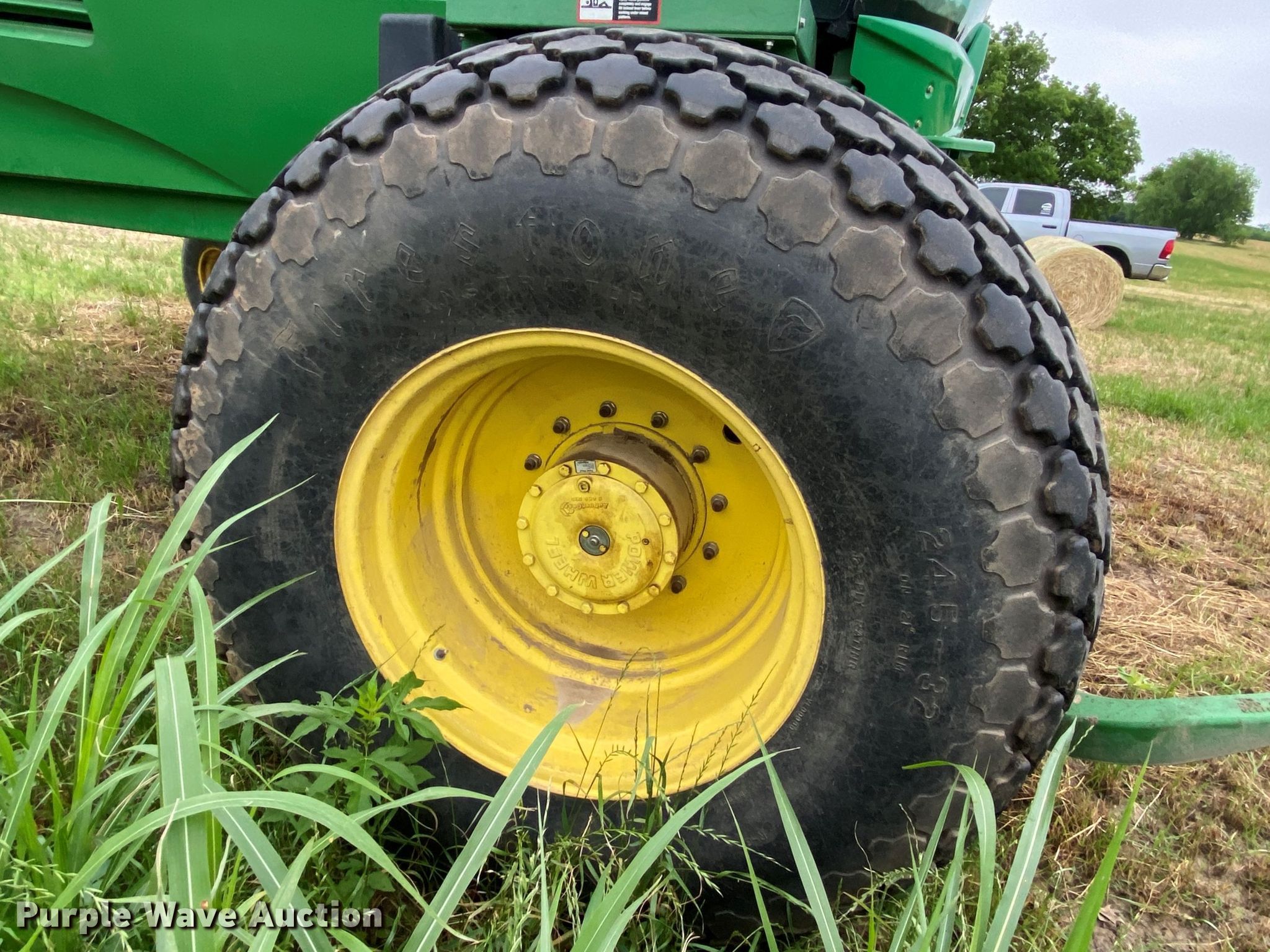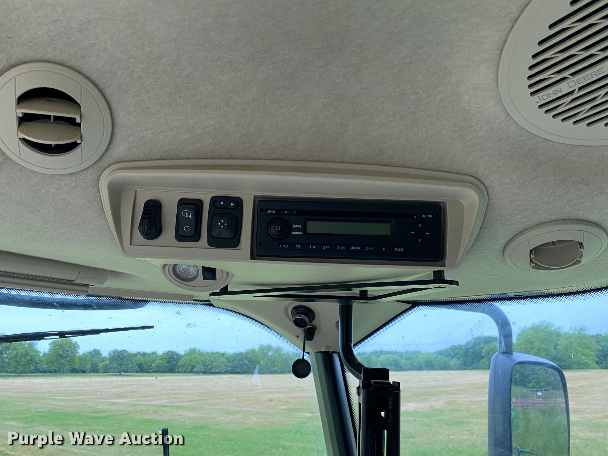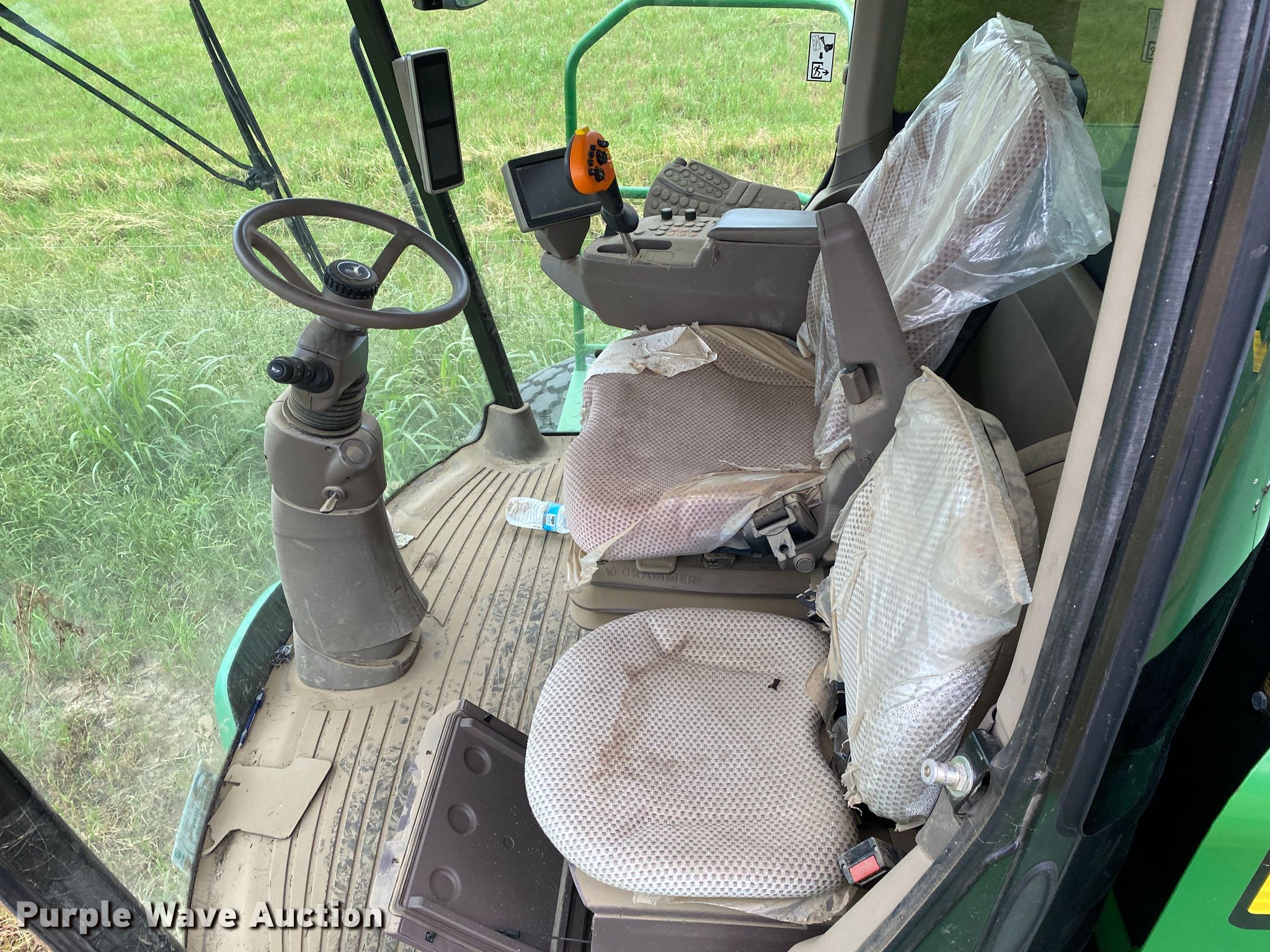 2014 John Deere W235 windrower. Hours: Unknown, Serial: 1E0W235R8EE400032, Claim #: 2-804923. Engine John Deere, Displacement: 6.7L, Cylinders: 6, Fuel type: Diesel. Transmission Hydrostatic. Operators station AC, Heat. Tires Front: 24.5-32, Rear: 14L-16.15L. Notes Flood damage, Unknown operating condition. Oklahoma Farm Bureau Insurance. Haskell, OK 74436