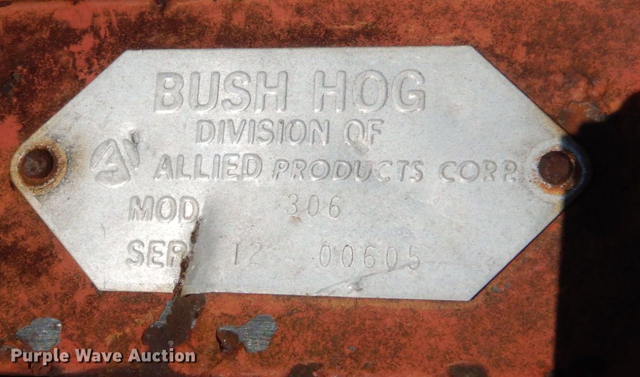 Purple Wave is selling a used Mower, Cutter, Shredder in Texas. This item is a Bush Hog 306 rotary mower with the following: Serial: 12 00605