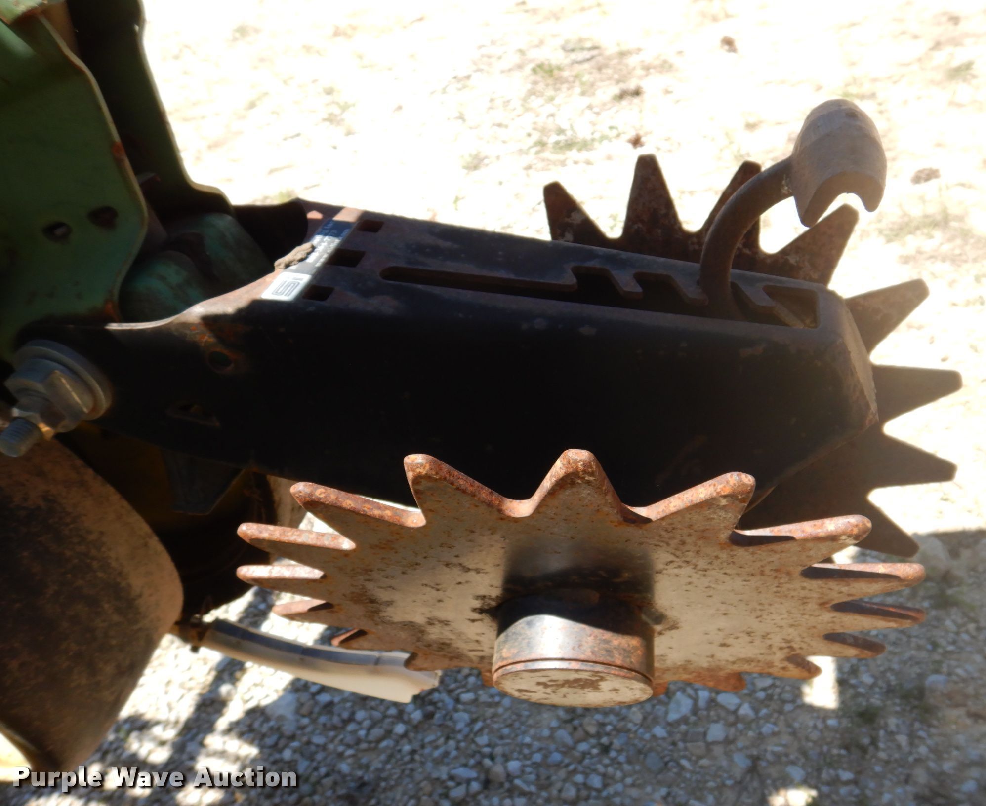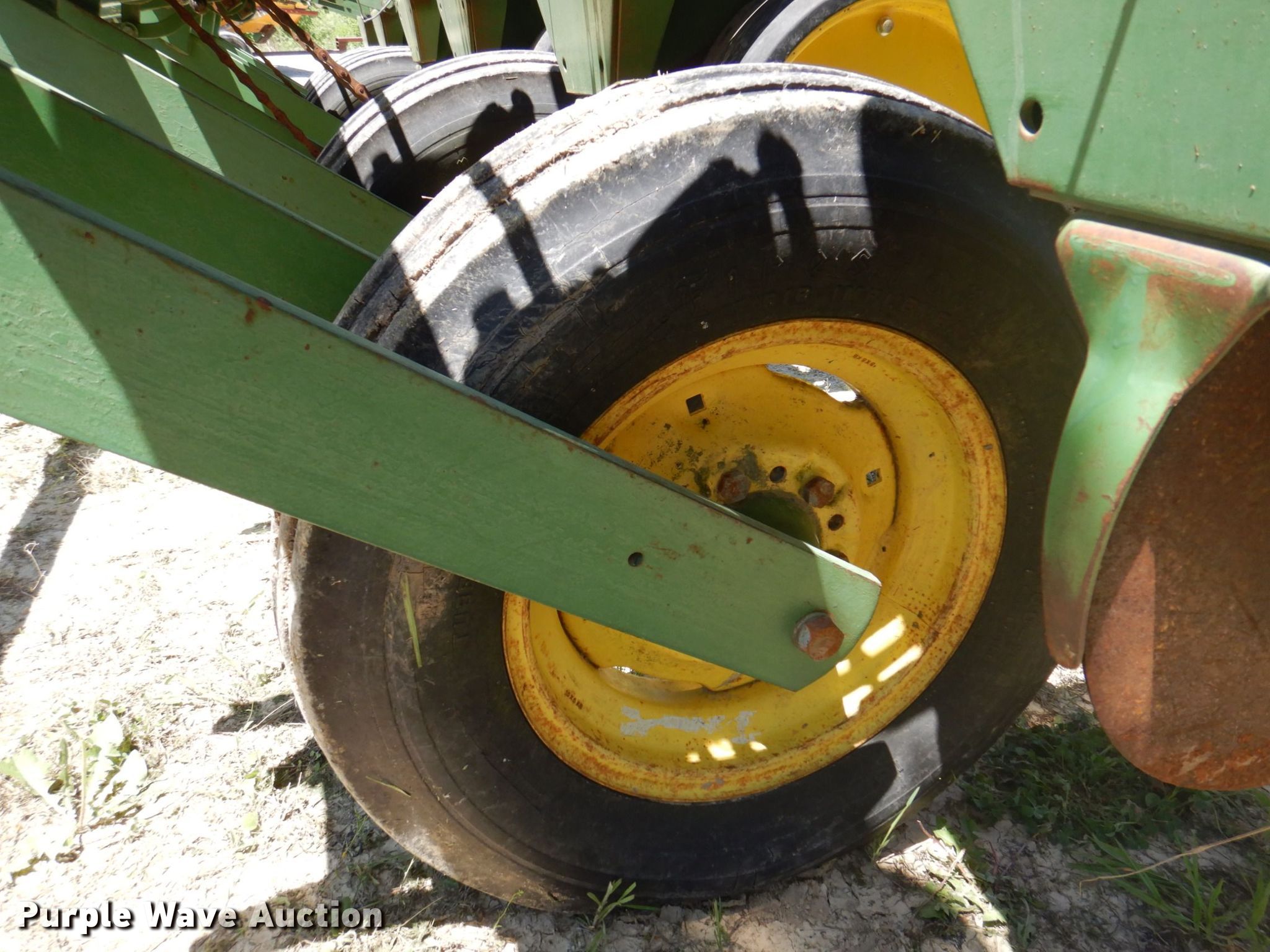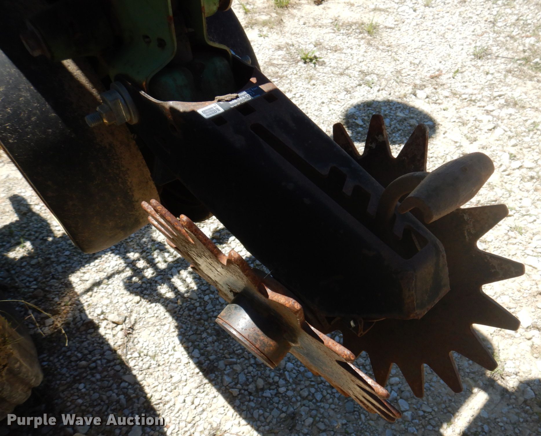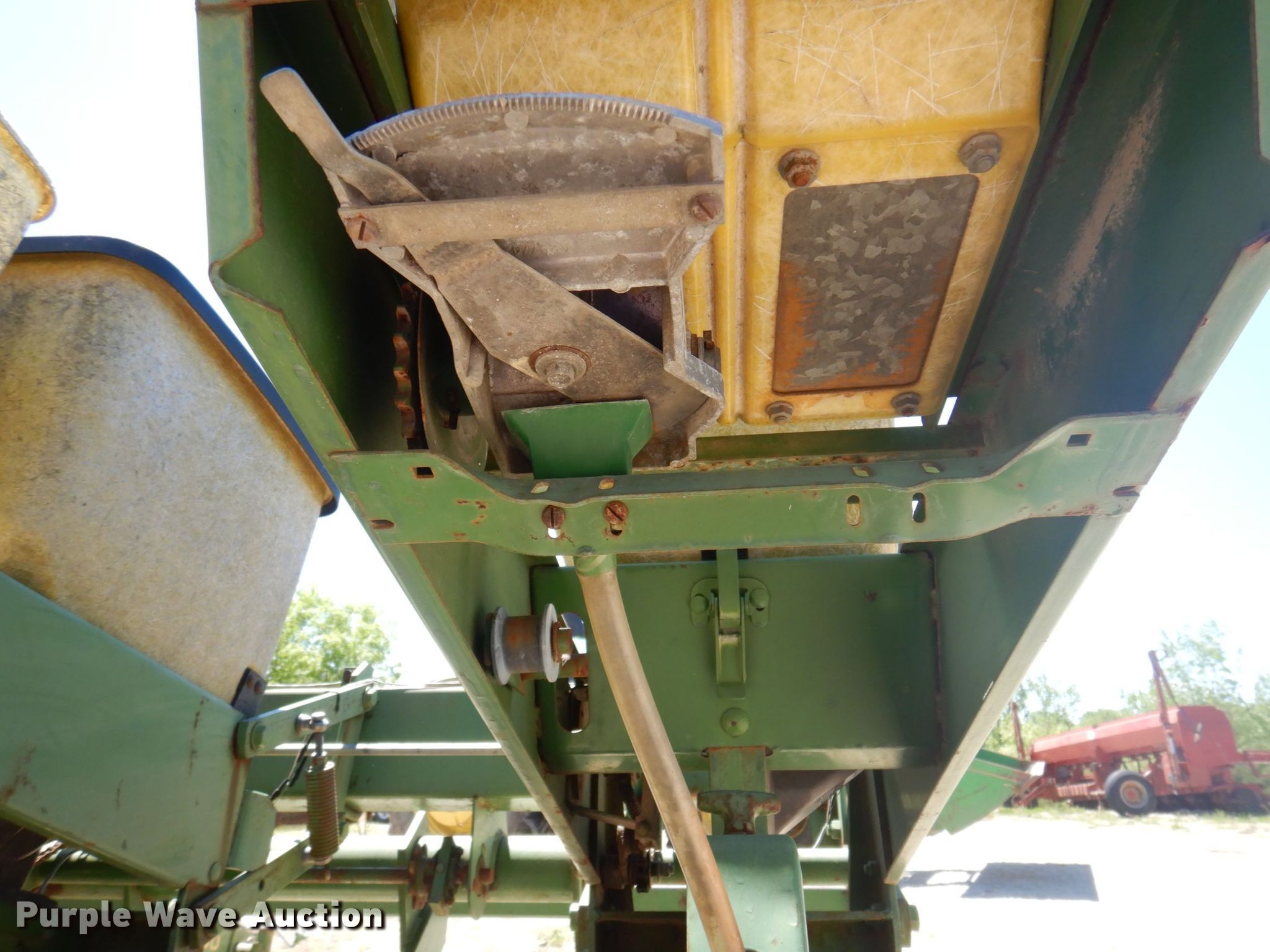 John Deere 7000 planter. Width: 14', Row units: 6, Row spacing: 30", Serial: 073607A. Features Frame Marker arm, Seed delivery Individual seed hoppers, Row units Meter drive: Ground, Down pressure: Spring, Seed firmers, Disk openers: Double, Gauge wheels: Double, Closing system: Double Type: Spiked.. Tires Transport tire size: 7.60-15 Quantity: 4. Notes Broken gauge wheel will be fixed prior to auction, Hopper lid missing. 27637 Inca Ave. Princeton, MO 64673
