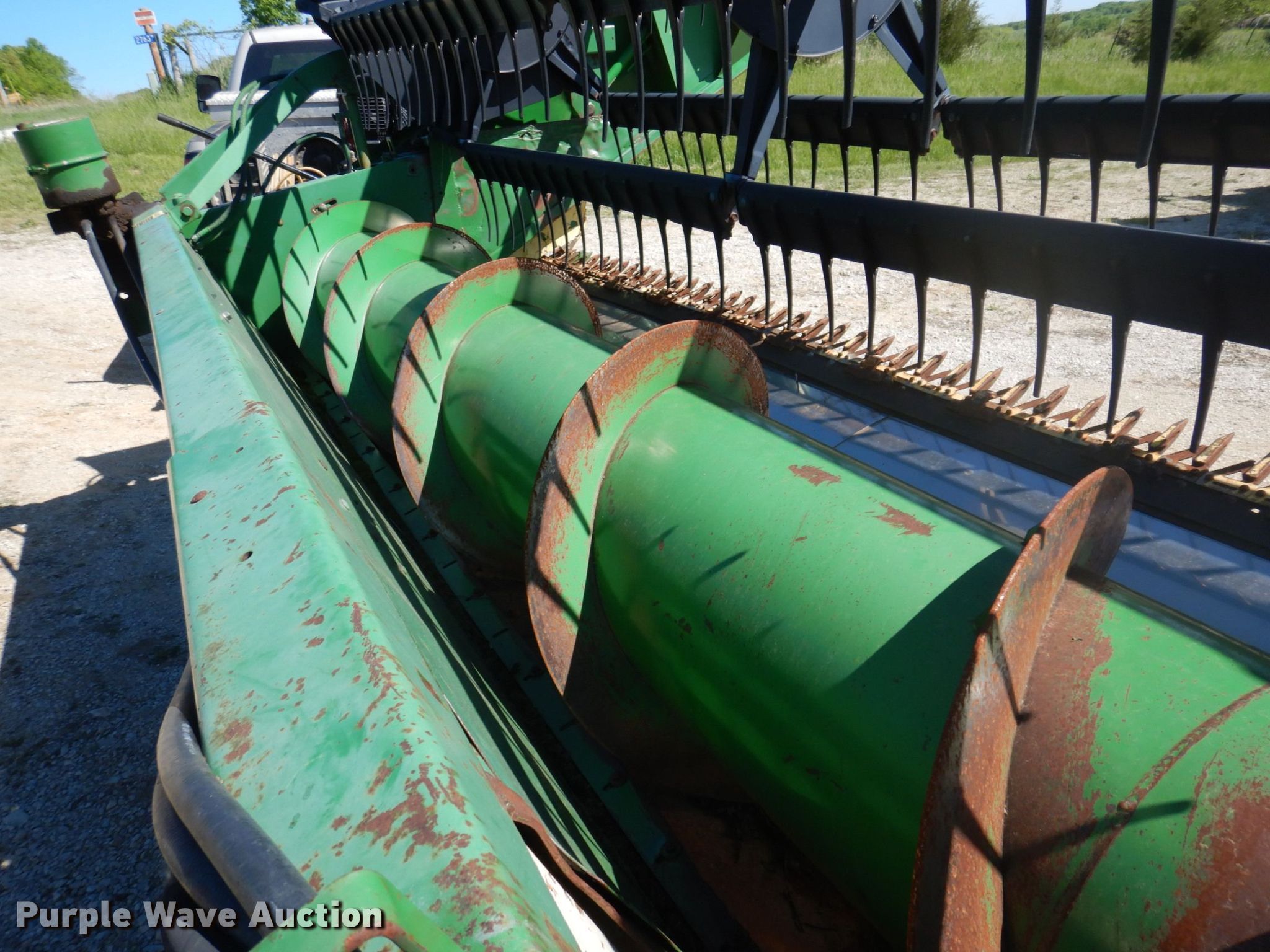Purple Wave is selling a used Platform or Stripper Head in Missouri. This item is a 1991 John Deere 925 flex head with the following: Serial: H00925F641486
