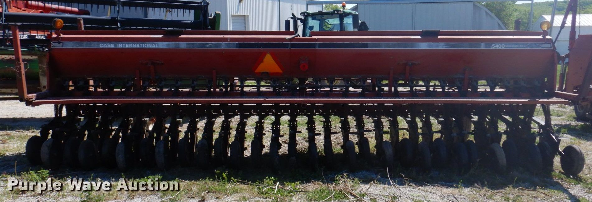 Purple Wave is selling a used Grain Drill or Seeder in Missouri. This item is a Case IH 5400MTDR grain drill with the following: Width: 20', Row units: 30, Row spacing: 7.5", Serial: JAG0440173