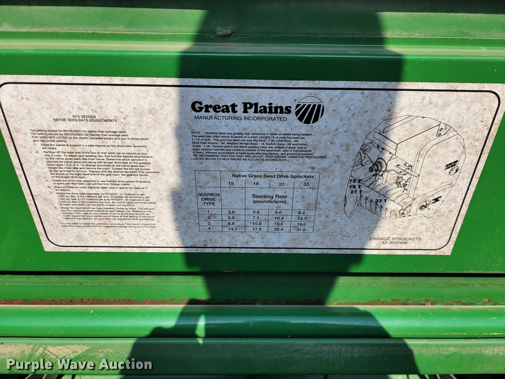 Great Plains BTS2509 no-till seeder. Width: 9', Serial: GRD1065L. Features Frame Hitch: Three point, Seed delivery Bulk fill system, Row units Meter drive: Electric, Down pressure: Hydraulic. Cavender Auto Sales & Leasing. 10800 AR-170. Prairie Grove, AR 72753