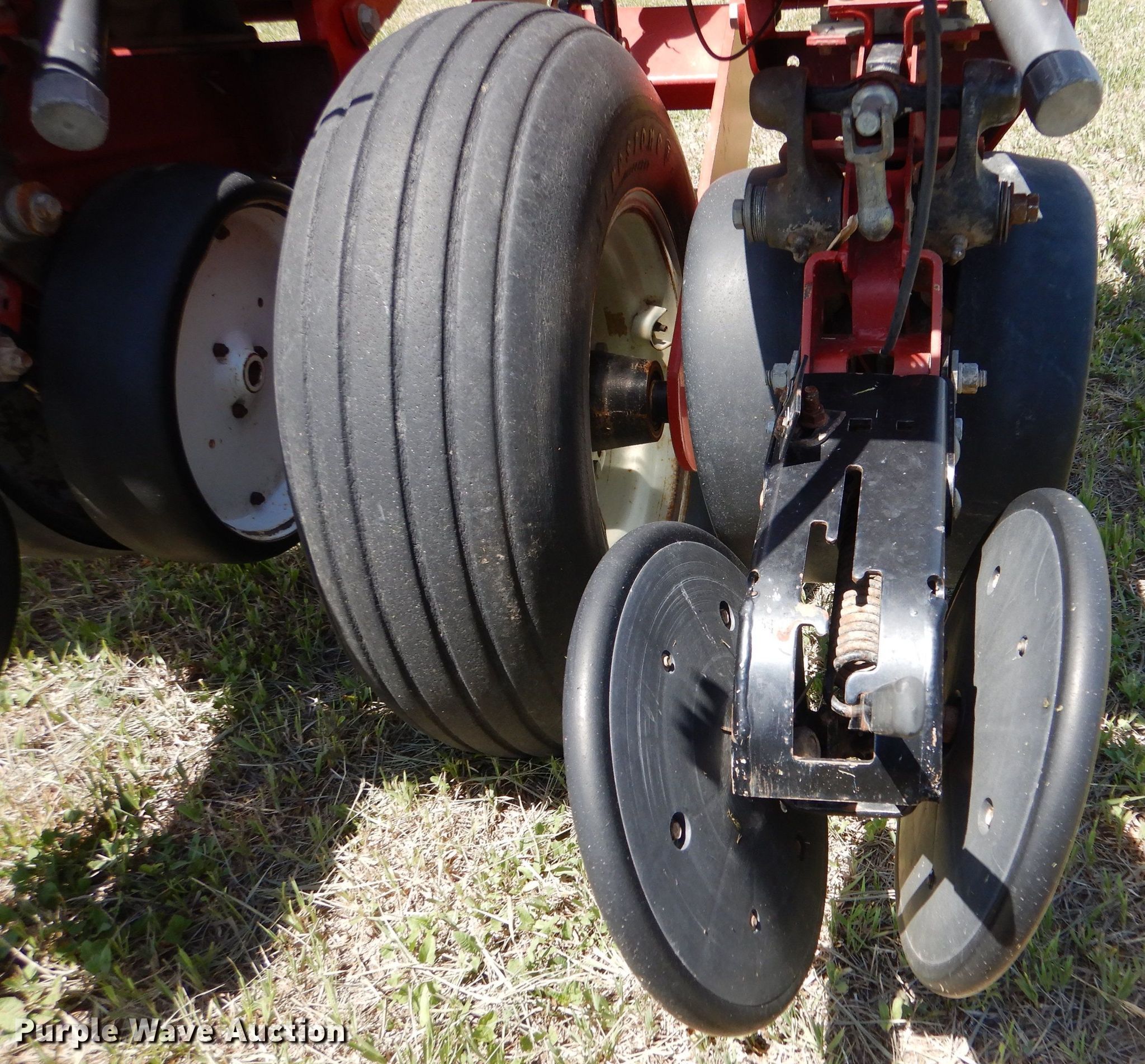 White 6108 planter. Row units: 8, Row spacing: 30", Serial: HK108104. Features Frame Marker arm, Seed delivery Individual seed hoppers, Row units Vacuum metering, Meter drive: Ground, Down pressure: Spring, Disk openers: Double, Gauge wheels: Double, Closing system: Double Type: Rubber, Fertilizer/ insecticide Fertilizer Liquid capacity: 360 gallons, Application method: Seed firmer, Pump Shurflo, Electronics Monitor AGCO SM4000.. Tires Transport tire size: 9.5L-15 Quantity: 4. Showalter and Sons. Alexander, KS 67513