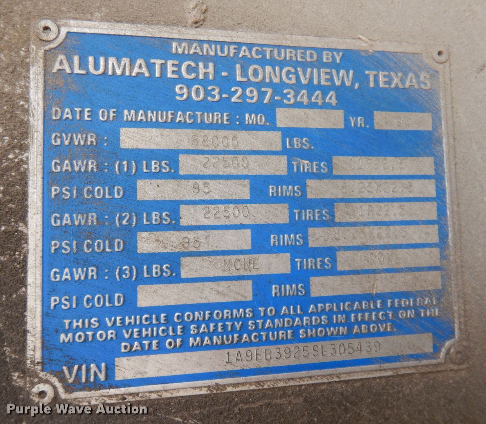 Purple Wave is selling a used End Dump Rock Trailer in Illinois. This item is a 1995 Alumatech end dump trailer with the following: VIN: 1A9EB3925SL305439, Unit #: T20