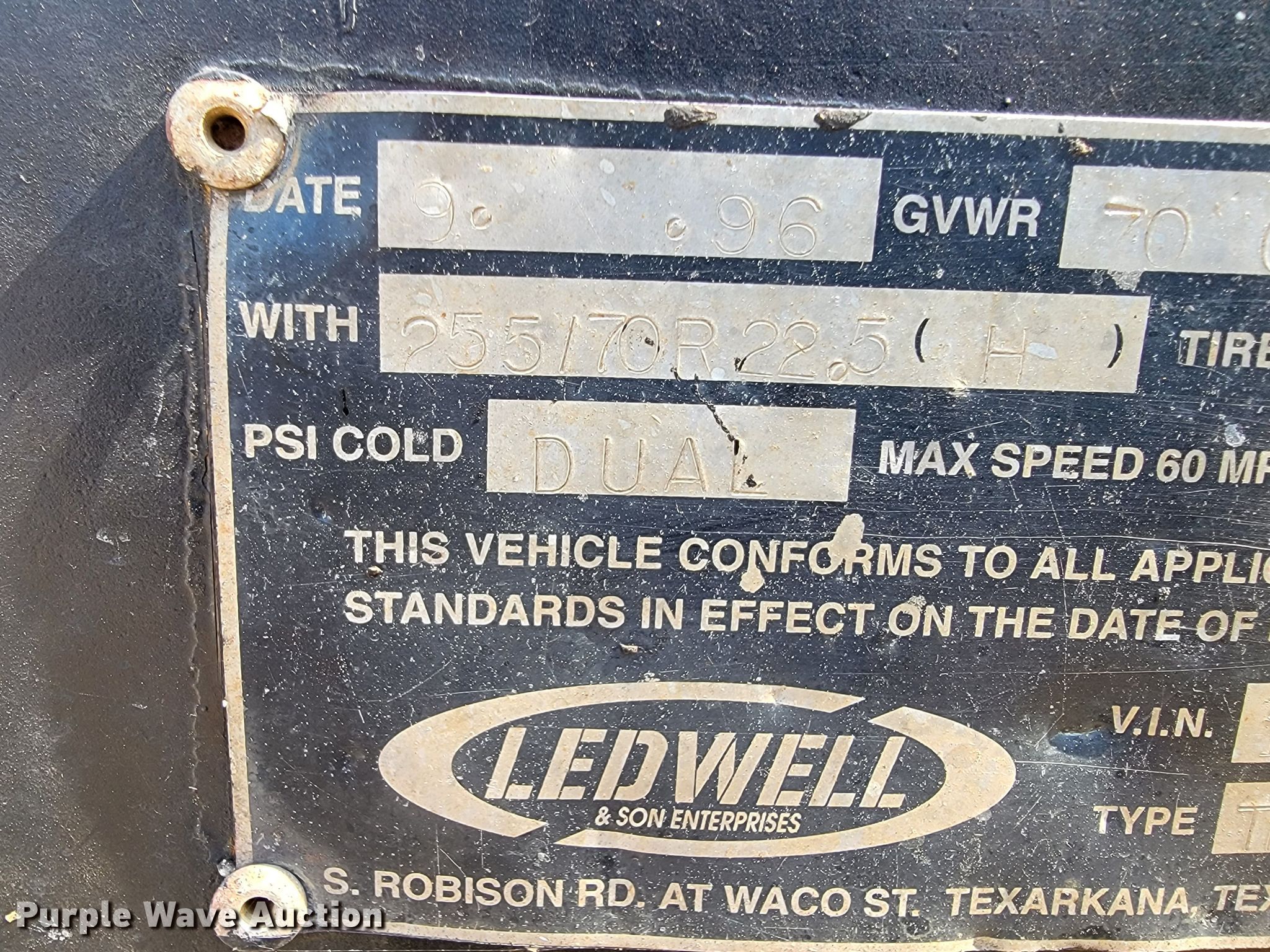Purple Wave is selling a used Equip. Trailer in Arkansas. This item is a 1997 Ledwell HT48X102 drop deck equipment trailer with the following: VIN: 1L9GA72AXVL033372