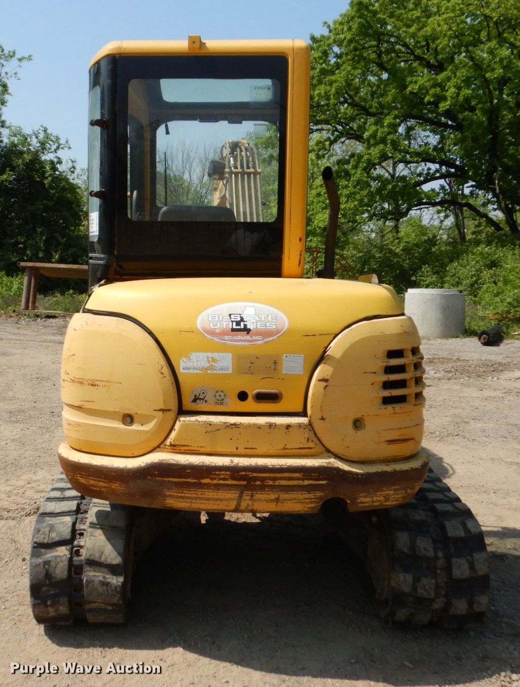 2000 Komatsu PC45R-8 mini excavator. Hours: 4,713 on meter, Miles or hours may vary, unit still in use, Serial: F20667. Engine Yanmar 4D84E-3FAE, Serial: YYDXL2.00E4N, Displacement: 1.995L, Cylinders: 4, Fuel type: Diesel, kW: 28.3. Transmission Hydrostatic. Operators station Enclosed cab, AC, Heat. Features Auxiliary hydraulics, Backfill blade Width: 75", Boom Swing, Stick Stick length: 4' 10", Bucket Width: 23", Teeth: 5. Tracks Width: 15", Rubber. Bi-State Utilities Co - Open Inspection June 21 and 22. 12894 Pennridge Dr. Bridgeton, MO 63044