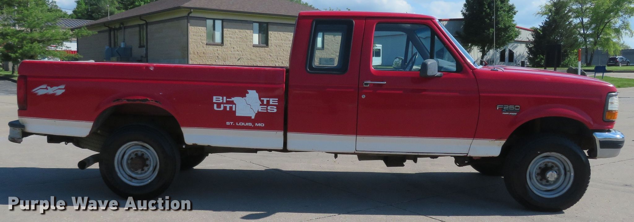 1996 Ford F250 SuperCab pickup truck. Miles: 344,066 on odometer, Miles or hours may vary, unit still in use, VIN: 1FTHX26F1TEA74007. Engine Displacement: 7.3L V8 OHV, Cylinders: 8, Fuel type: Diesel. Transmission Automatic, Four wheel drive. Interior AC, Heat. Tires Size: LT245/75R16. Notes Decals will be removed prior to auction, Fuel tank leaks, Possible AC issues, Driver side interior door handle broken. Missouri title. Bi-State Utilities Co - Open Inspection June 21 and 22. 12894 Pennridge Dr. Bridgeton, MO 63044
