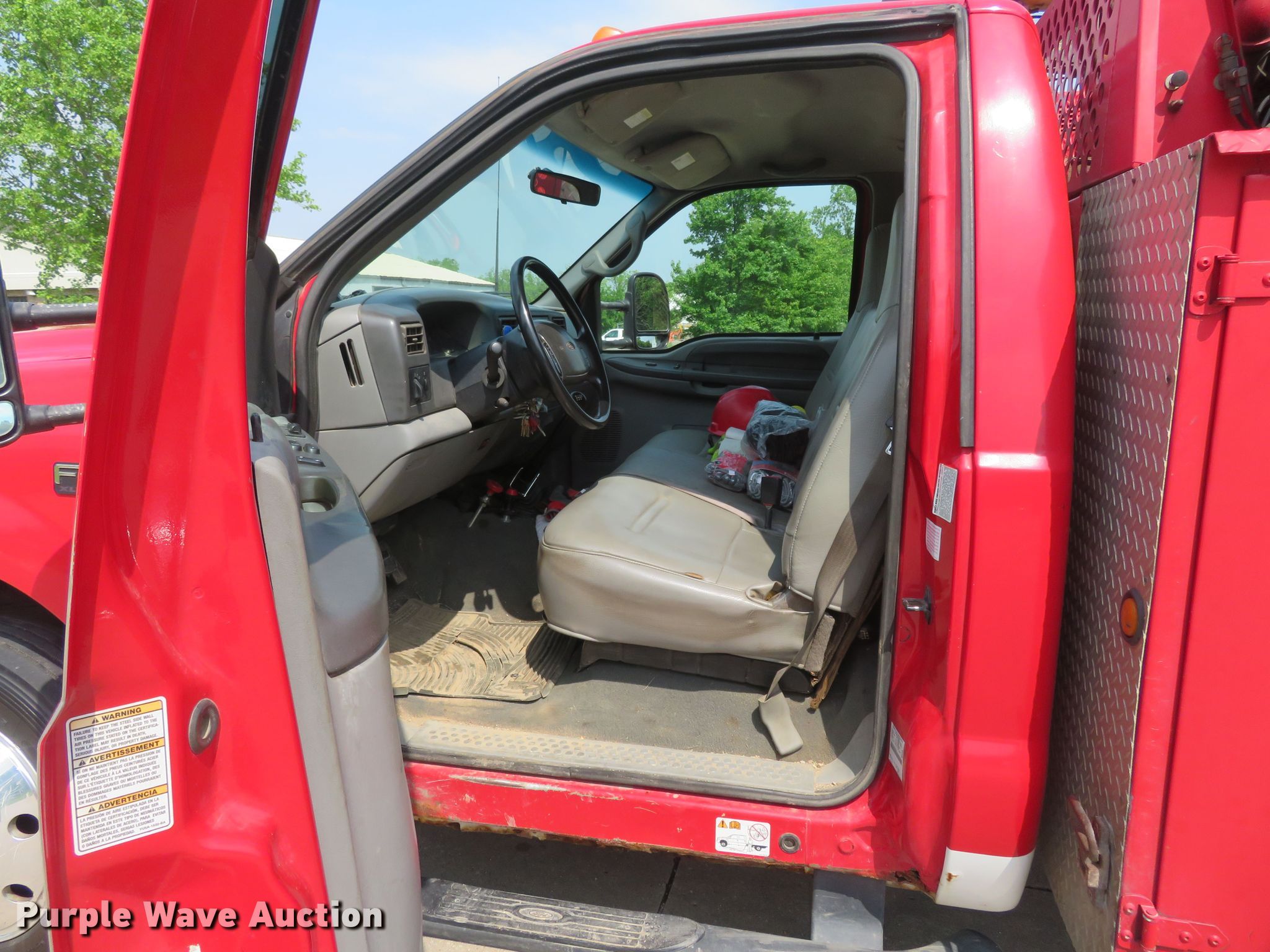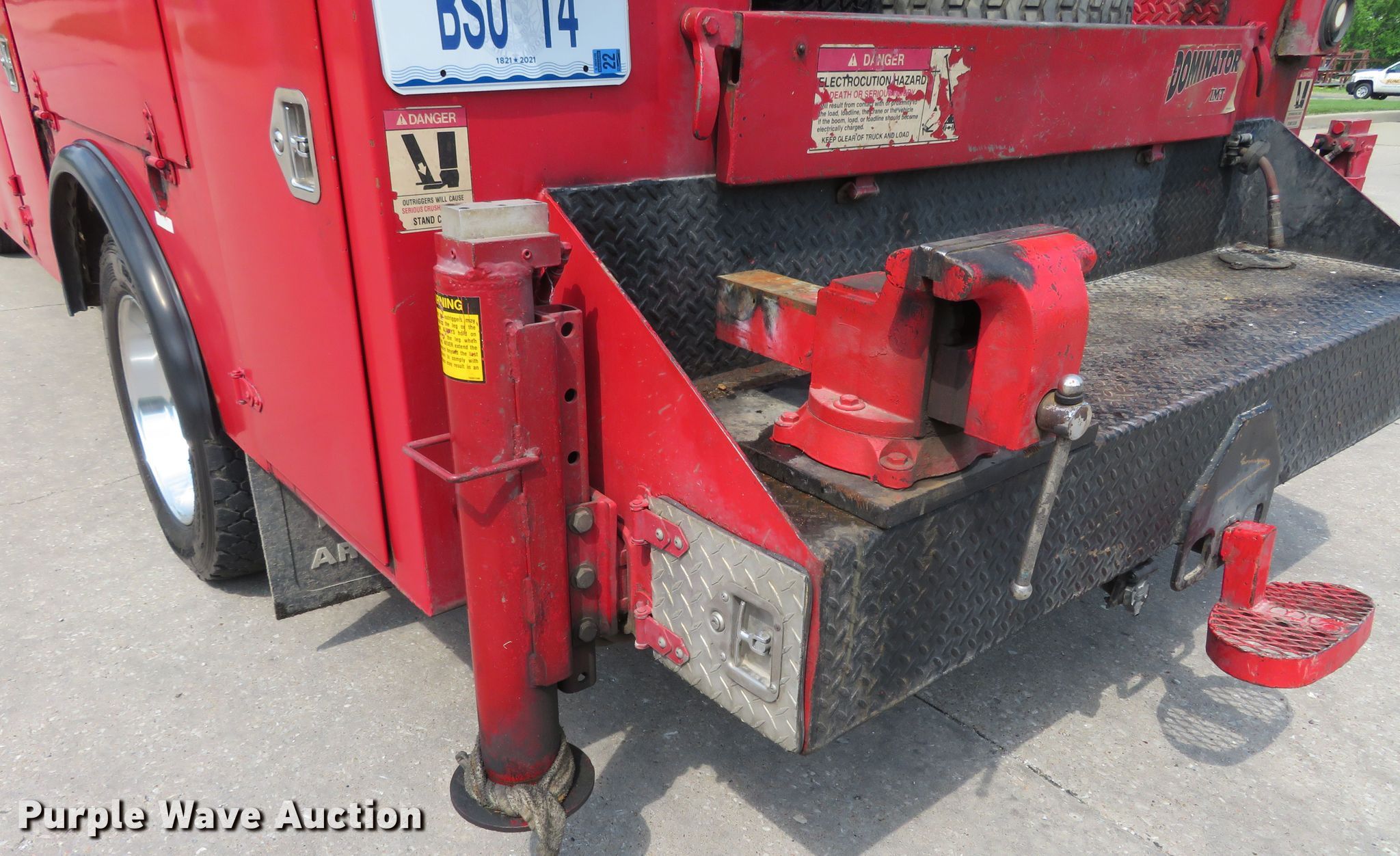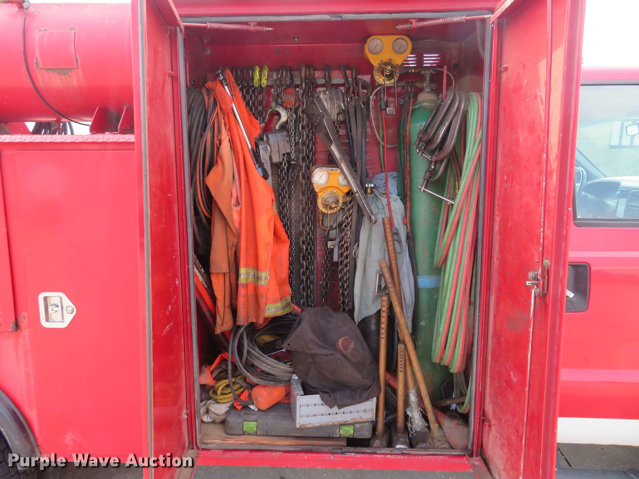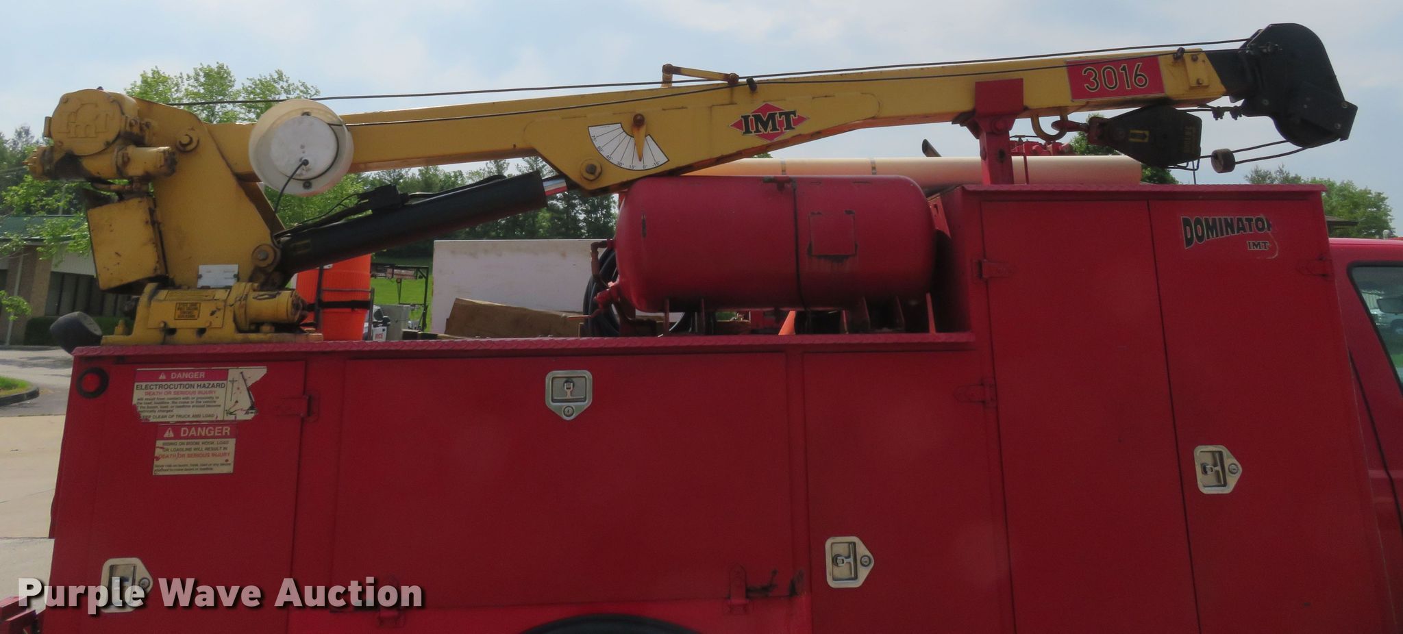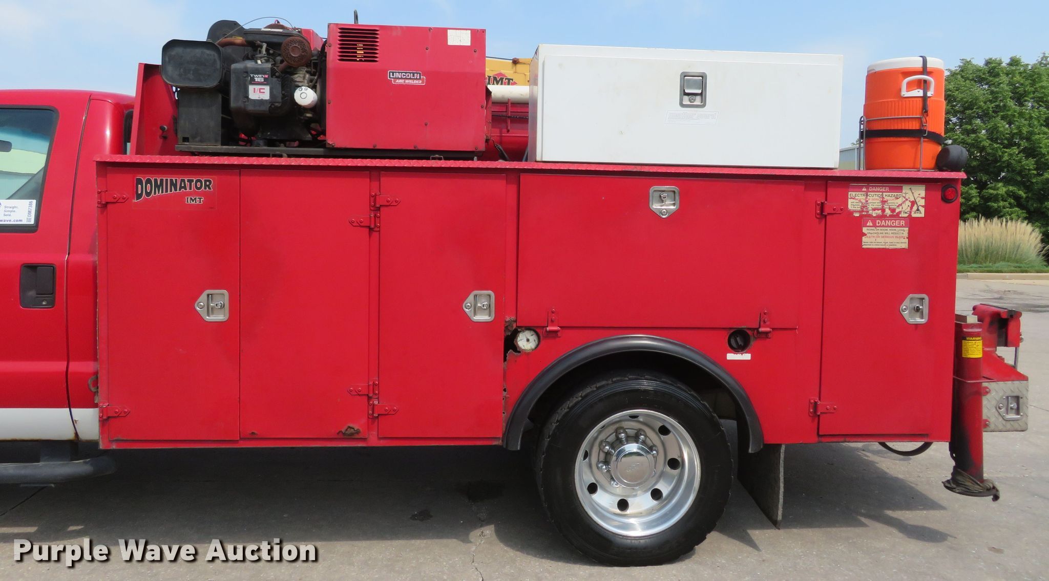 2002 Ford F550 Super Duty utility / service truck. Miles: 183,198 on odometer, Miles or hours may vary, unit still in use, VIN: 1FDAF56F62EC08767. Engine Displacement: 7.3L, Cylinders: 8, Fuel type: Diesel. Transmission Manual, Speed: 6. Chassis Axles: Single, Suspension: Spring, Brakes: Hydraulic, PTO, GVWR: 17,500 lbs, Wheelbase: 165". Interior AC, Heat, Power windows, Power locks, Cruise control. Features Bed IMT Dominator, 11' x 93" W, Torch bottle rack Tanks not included, Welder/generator, Lincoln Weldanpower 225 G7, Fuel type: Gas, Welder type: Leads, Air compressor Kohler M12S, Oil/lube system Reservoirs, Fuel tank Nozzles, Pump, Crane IMT 3016, Boom length: 21', Maximum lift capacity: 6,000 lbs. Tires Size: 225/70R19.5. Notes Decals will be removed prior to auction, Contents not included, Gas shut off valve leaks on air compressor , Anti two block issues. Missouri title. Bi-State Utilities Co - Open Inspection June 21 and 22. 12894 Pennridge Dr. Bridgeton, MO 63044