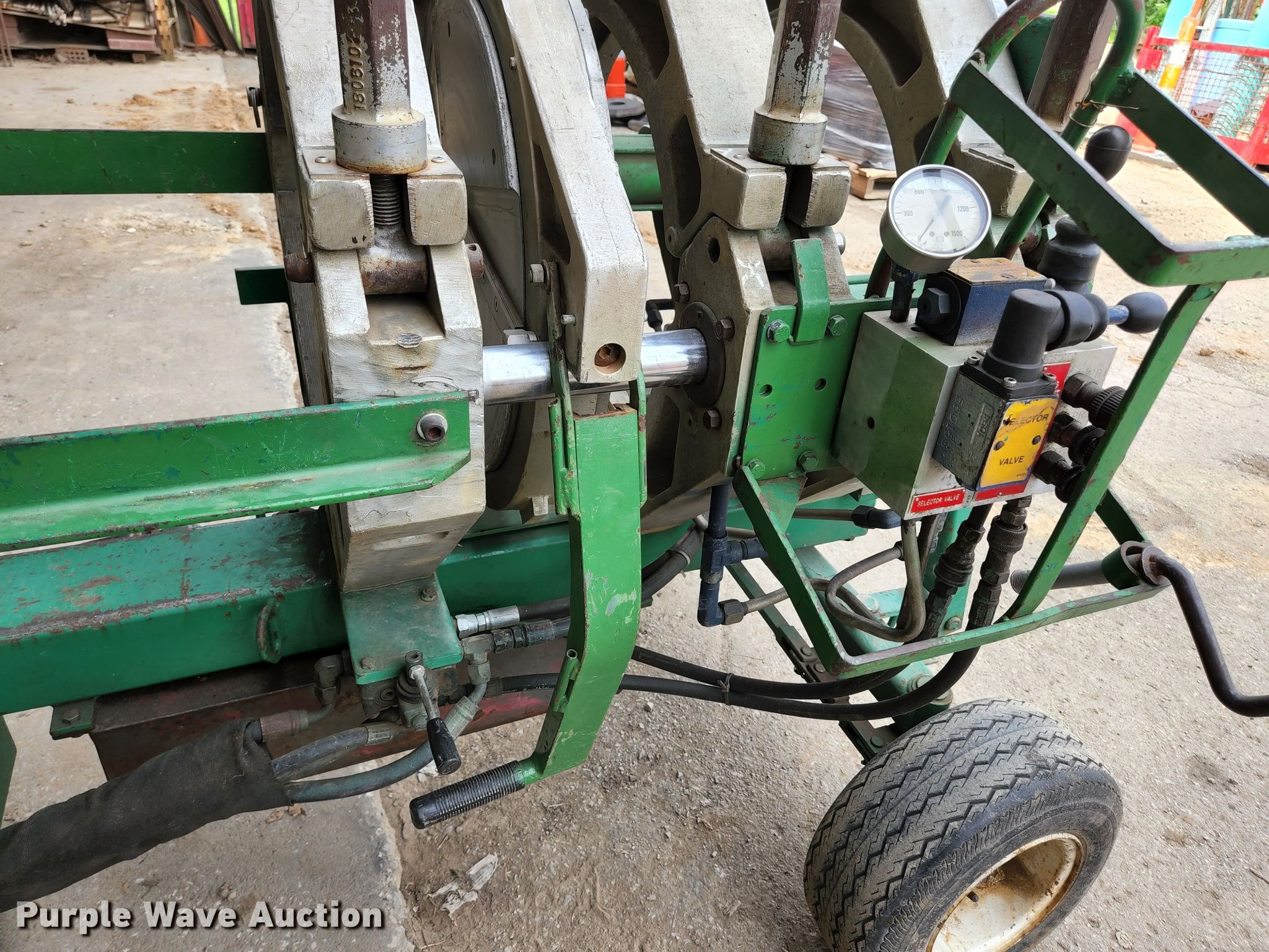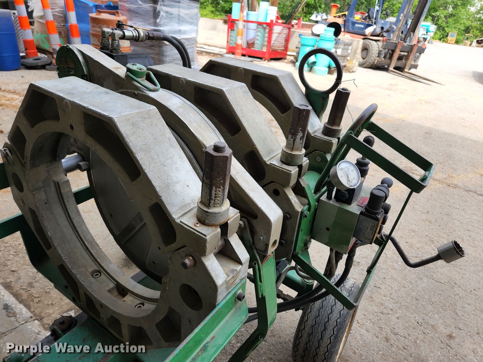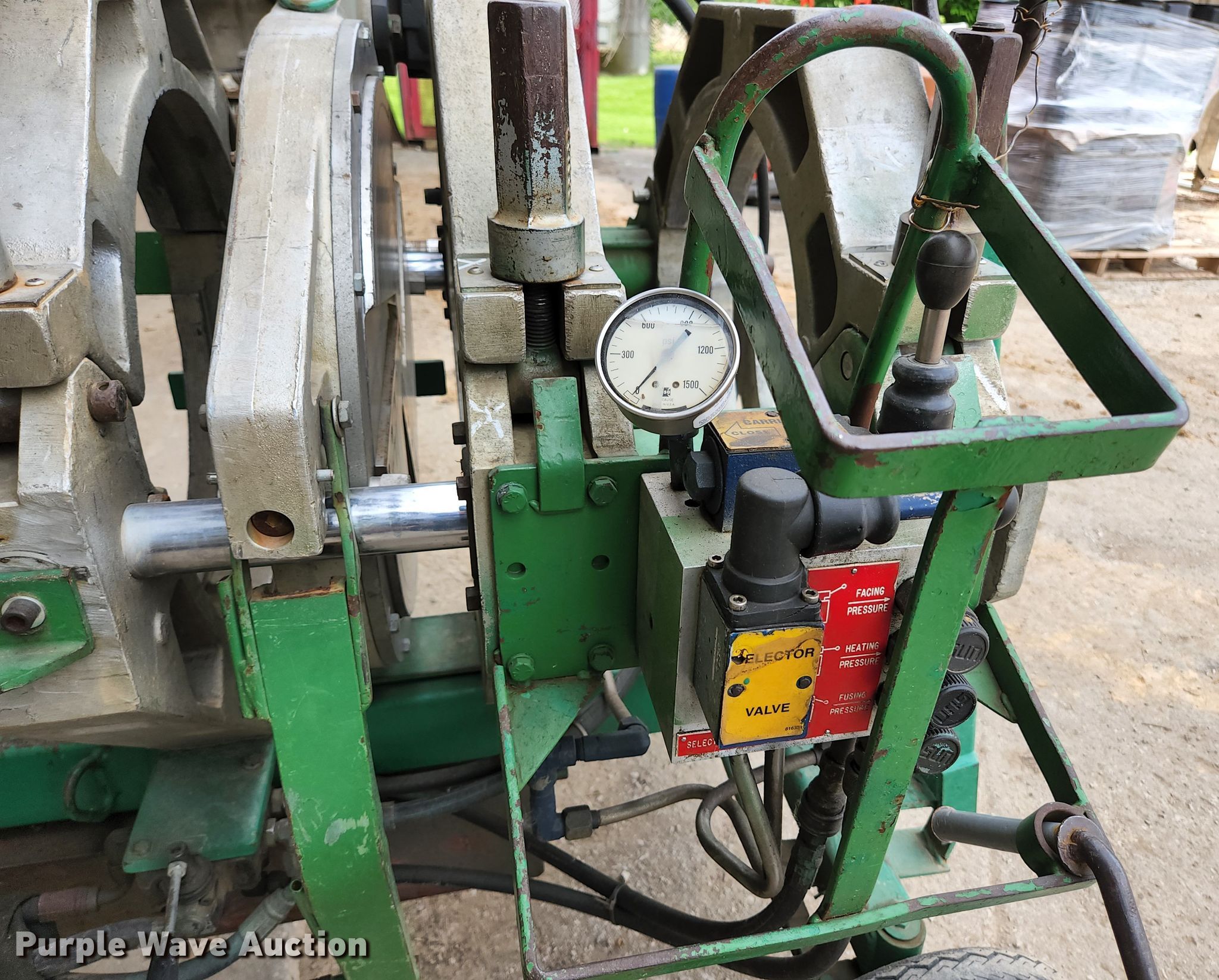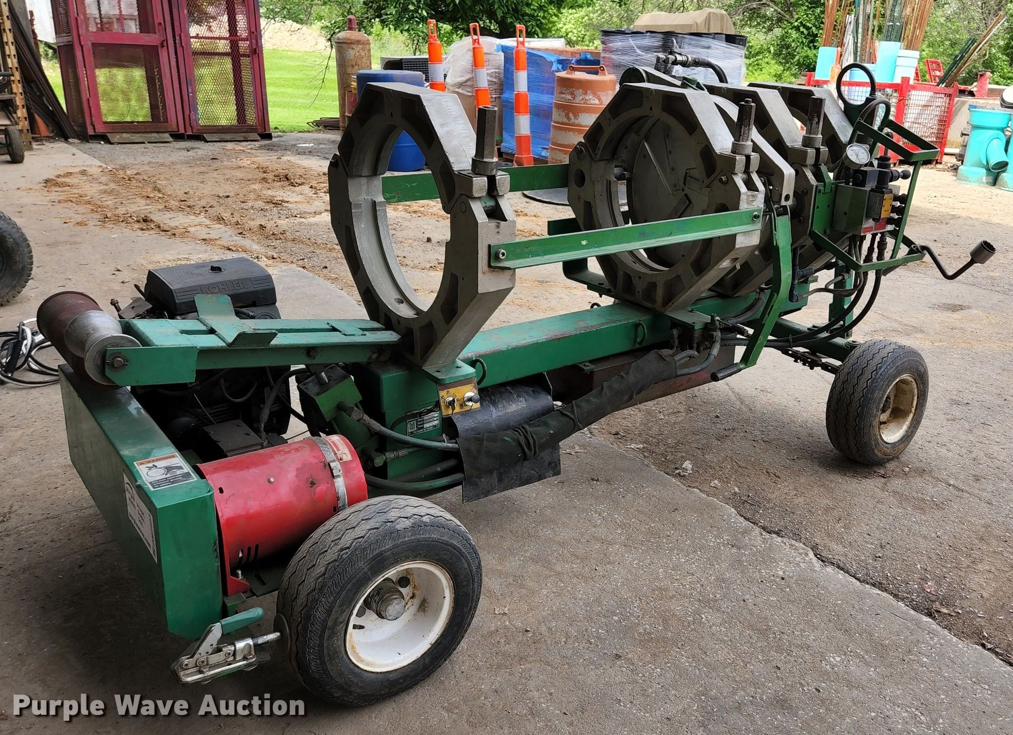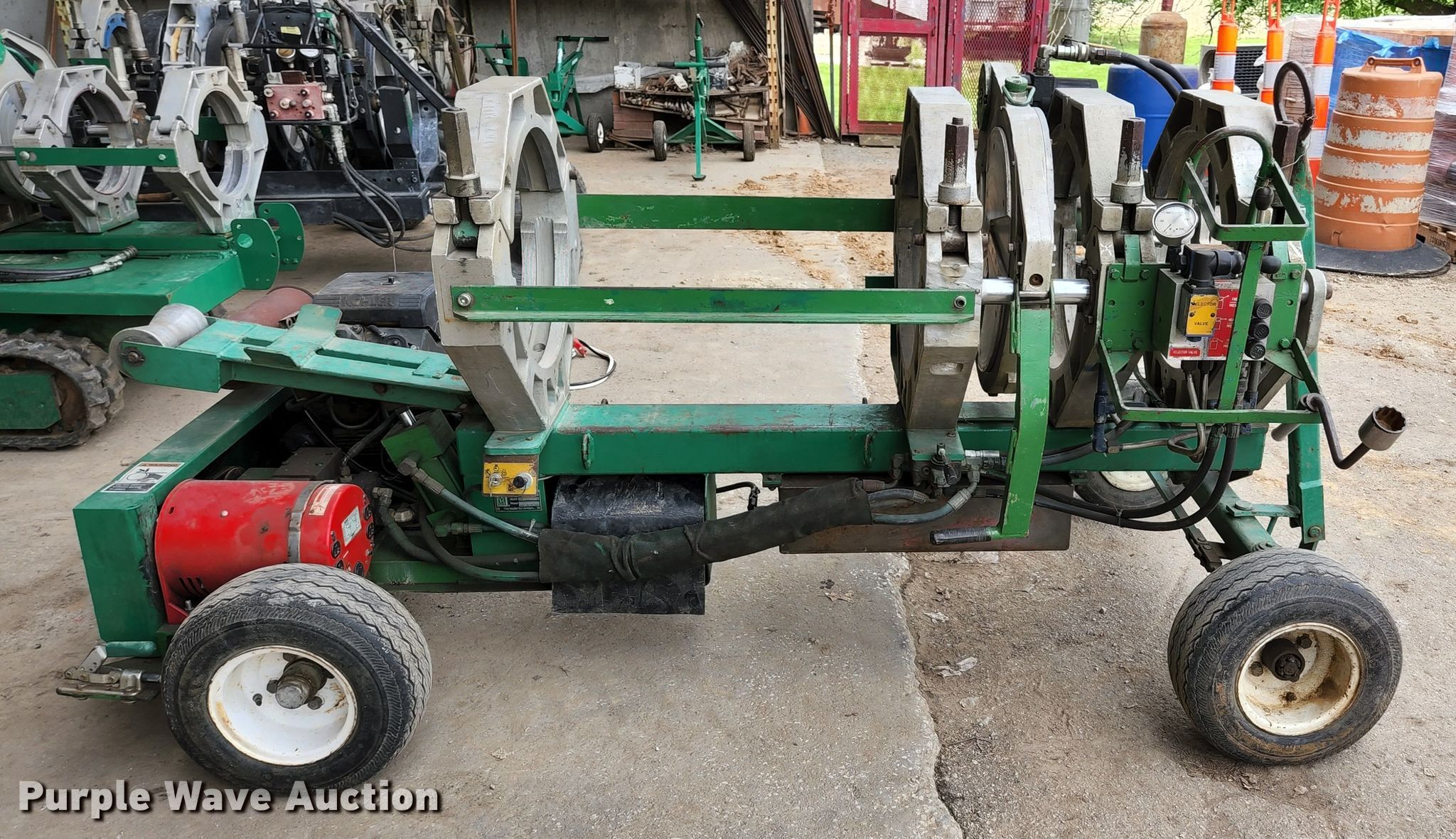 Purple Wave is selling a used Tools in Missouri. This item is a McElroy 1855601 pipe fusion machine with the following: Serial: 97P18702, Kohler two cylinder gas engine, 6" IPS to 18" OD, Four jaw carriage, Winco generator, Phase: Single, 16.7 watts, Tires: 16.5x6.5-8, Heating plats not included